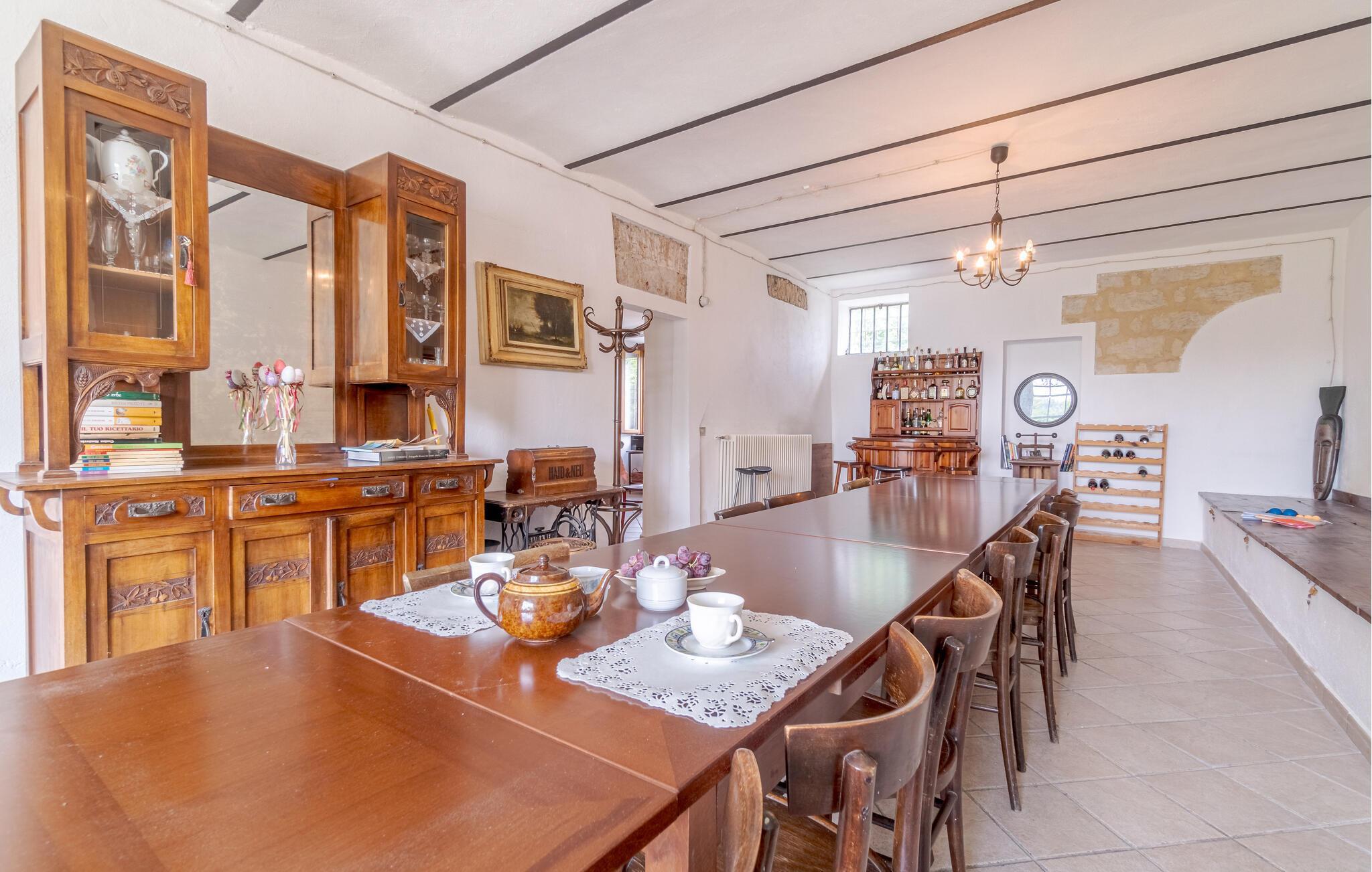 Här kan du känna historiens vingslag. Tänk dig ett 1700-talshus med charm, autenticitet, utsirade tak, antika möbler, en bar, en dominerande vit färg och en utomhusbadtunna. Här möts två tidsepoker, men husets gamla själ är charmigt bevarad rent visuellt. Allt detta skapar en underbar semesterkänsla, och redan när du kliver över tröskeln vet du att du kommer att finna lugn och avkoppling. Det långa matbordet erbjuder mer än tillräckligt med plats för familjen och är den perfekta platsen för mysiga familjemåltider och samtal om dagens många upplevelser och intryck. Invändigt präglas huset inte av någon större lyx, men utanför finns en vacker, barnvänlig trädgård att leka i och sist men inte minst badtunnan där du kan slappna av i musklerna efter en händelserik dag.
