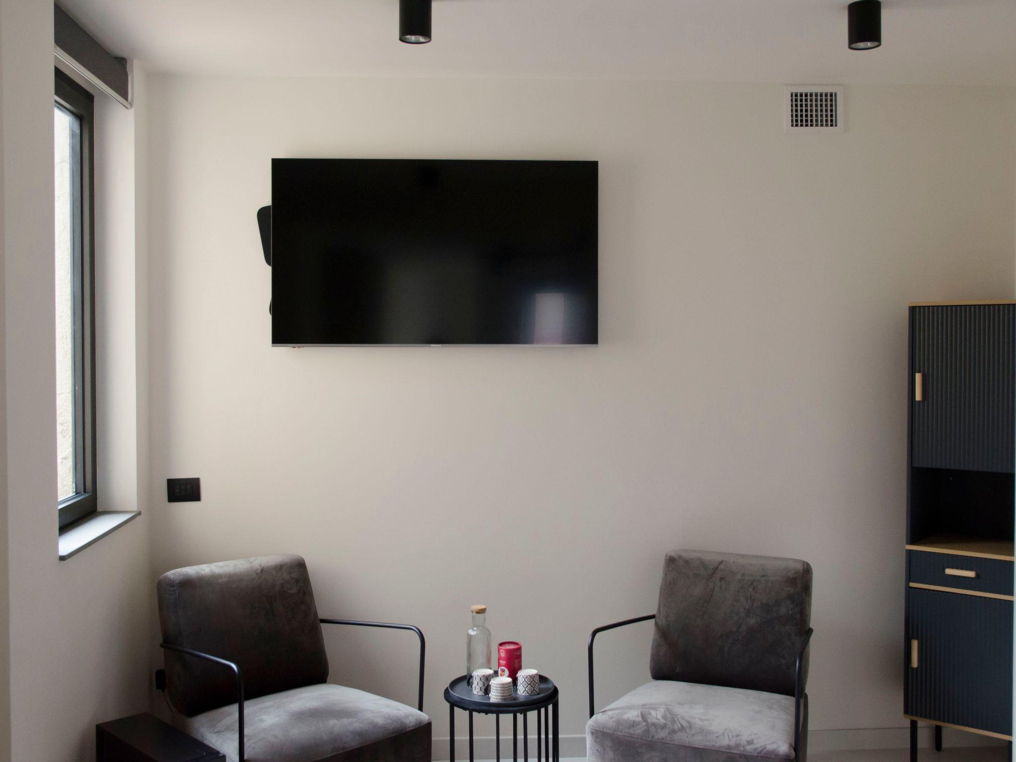 Outside, the flat boasts both a terrace and a balcony, enhanced by an extraordinary roof terrace that invites guests to relax outdoors, enjoying the local climate. For those who like to explore the region by bicycle, the flat offers a covered, lockable car park, specifically designed to safely store bicycles.