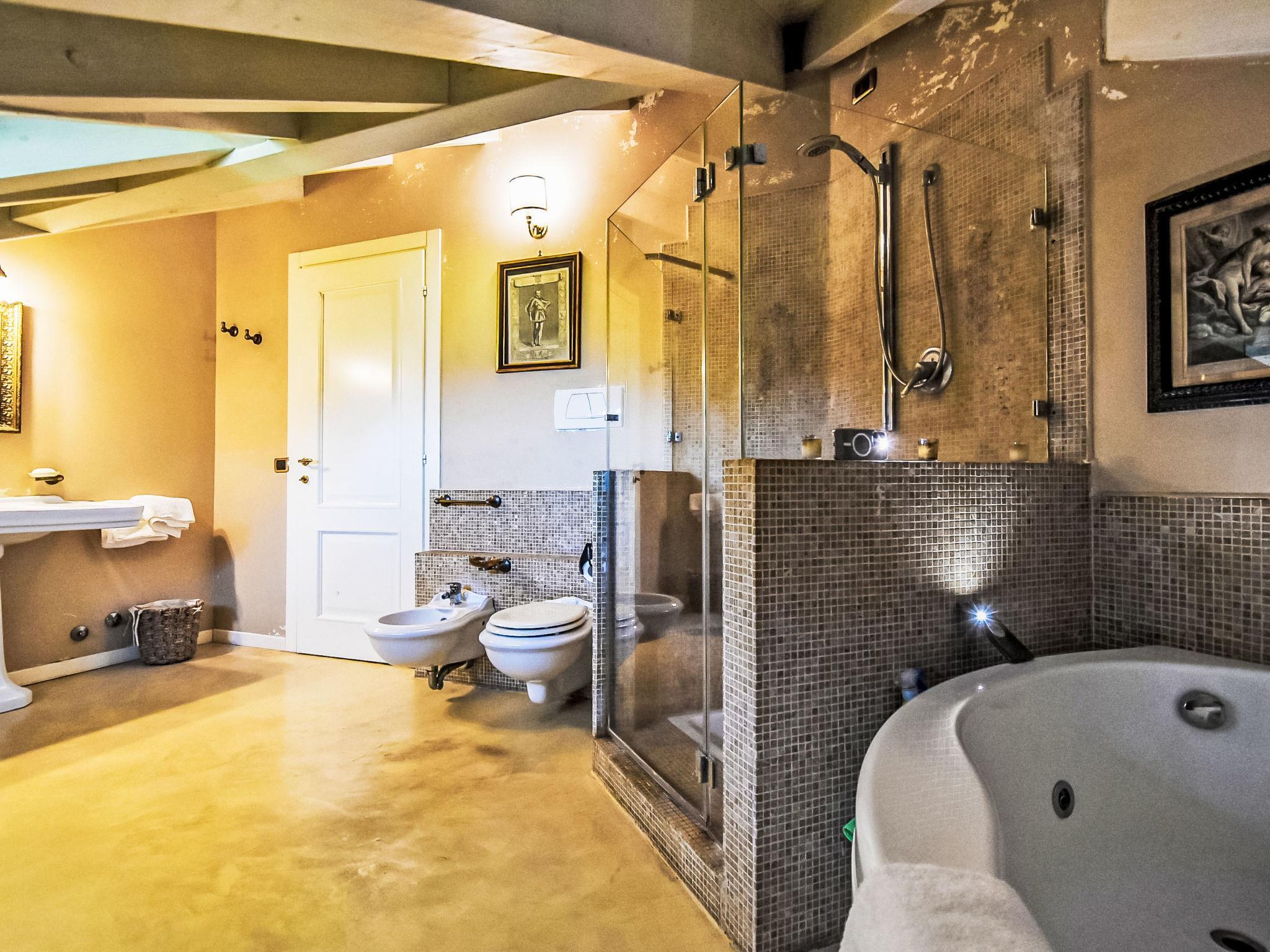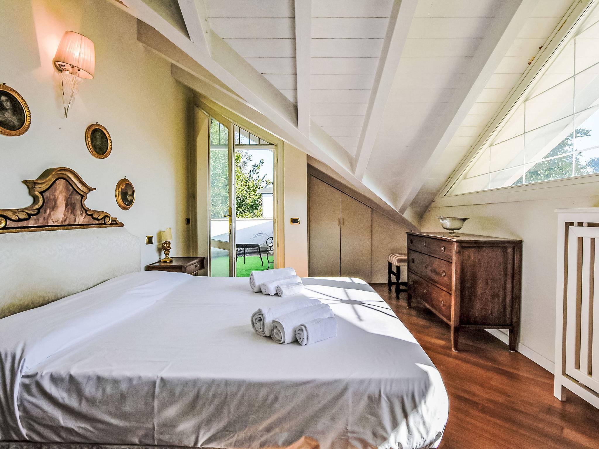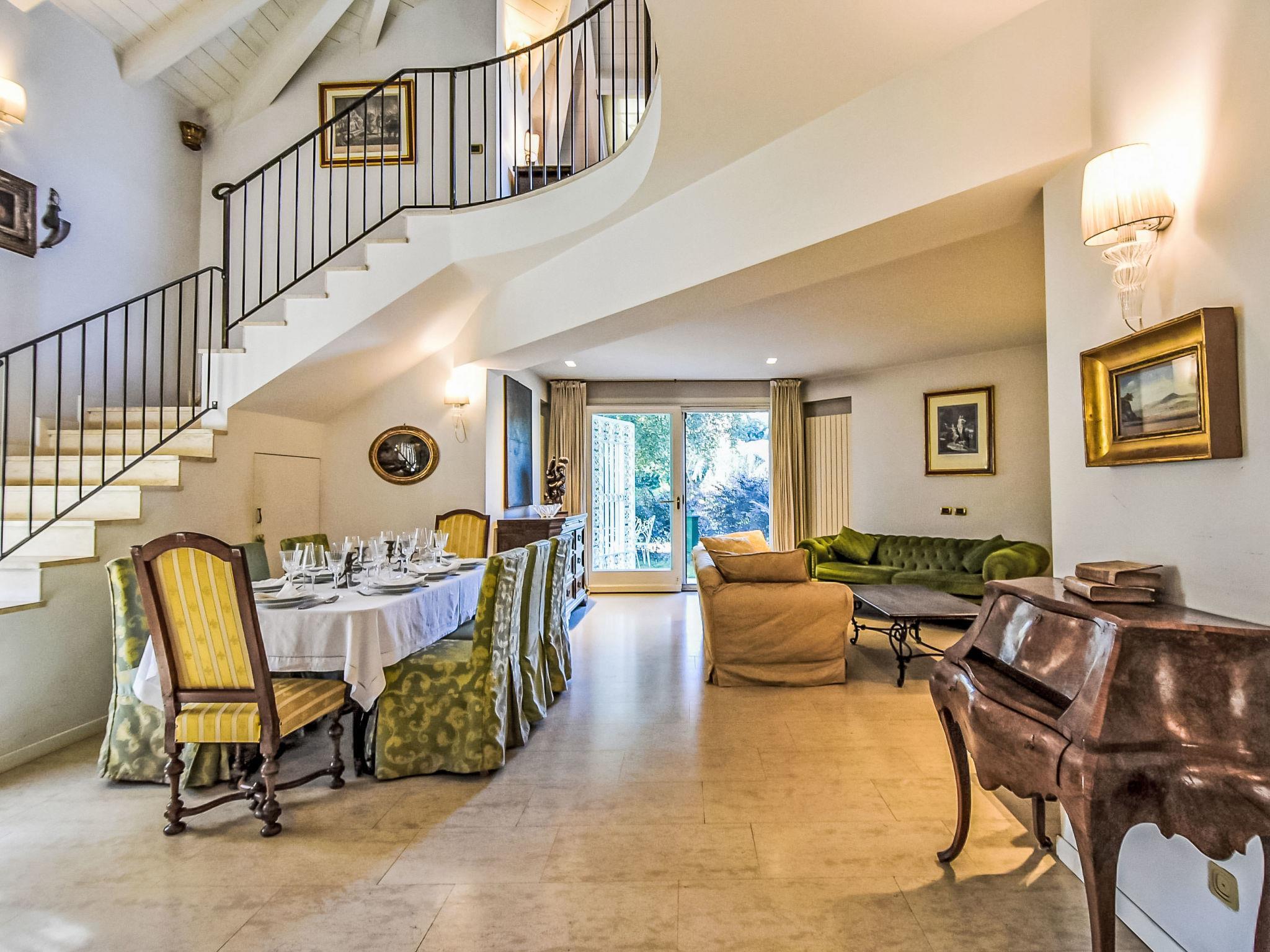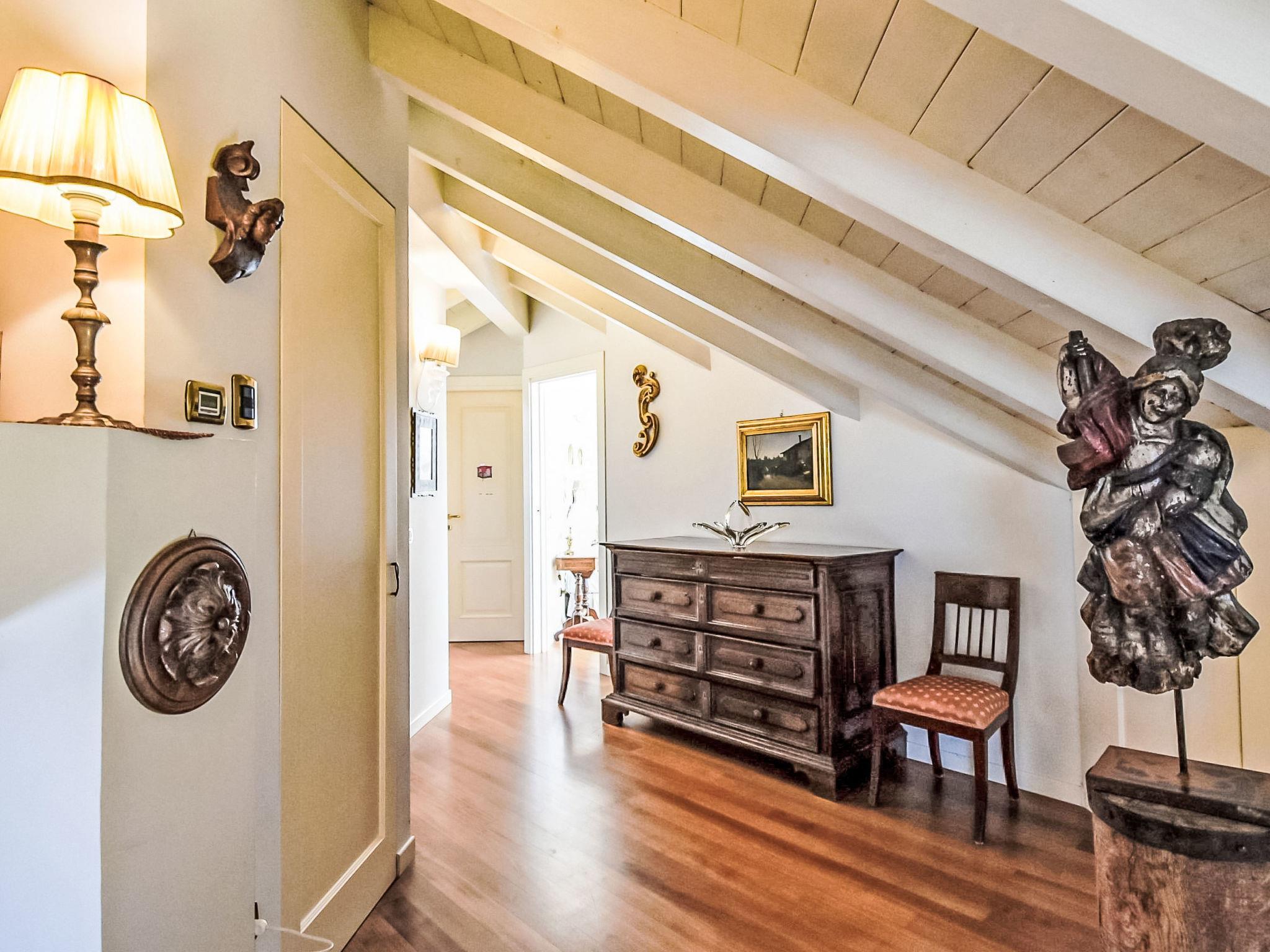 6-room villa 300 m2 on 2 levels. Bright, partly with sloping ceilings, comfortable and stylish furnishings: large living/dining room with sliding door, panoramic window with open-hearth fireplace (only for decoration), dining table and TV. Exit to the garden, to the swimming pool. 1 room with 2 beds and TV. 1 double bedroom with TV. Large kitchen (oven, dishwasher, 5 gas rings, toaster, kettle, microwave, electric coffee machine, Capsules for coffee machine (Nespresso) free) with dining table. Shower/bidet/WC. Upper floor: open large gallery with rooflight with 1 double sofabed and laptop. 1 double bedroom with sloping ceilings with panoramic window with TV. Exit to the terrace. 1 double bedroom with sloping ceilings with TV. 2 showers/bidet/WC, hydro massage bath. Heating, air-conditioning. Parquet floors, natural stone floors. Deck chairs, sitting area. View of the garden. Facilities: washing machine, iron, children's high chair, baby cot, hair dryer. Internet (WiFi, free). Please note: non-smoking house. Maximum 2 pets/ dogs allowed. IT017166C2YWLY4VIK
