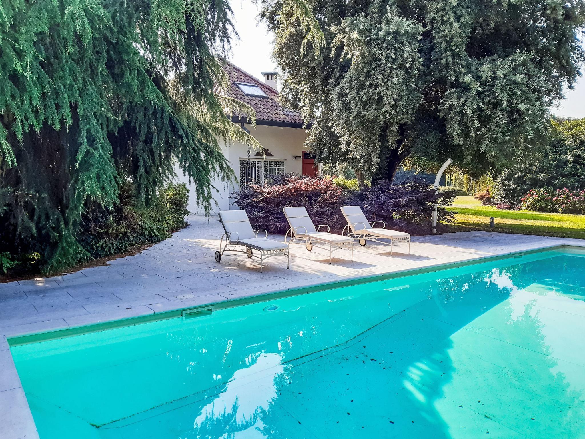 Franciacorta: Beautiful, comfortable villa "San Giorgio", detached, renovated in 2015, surrounded by trees and meadows. In the hamlet Sant' Anna 2.5 km from the centre of Rovato, 17 km from the centre of Iseo, in a sunny position, 17 km from the lake, in the countryside, south facing position. Private: park 16'000 m2 (fenced), large, well-kept garden with flowers and trees, lawn for sunbathing, pond, swimming pool with privacy (12 x 6 m, depth 60 - 180 cm, seasonal availability: 01.Apr. - 31.Oct.). Shower/WC in the pool area, pool house with fridge, garden furniture, barbecue, pool maintenance by the owner/gardener. In the house: storage room for bicycles, central heating system. Roofed, parking at the house. Grocery 2 km, supermarket 2 km, restaurant 2 km, bar 600 m, café 2 km, bus stop 400 m, railway station "Rovato" 2.8 km, thermal baths "Boario Terme" 55 km. Golf course (18 hole) 12 km. Nearby attractions: Porsche Experience Center Franciacorta 3.3 km, Brescia 21 km, Bergamo 39 km, Milano 75 km, Verona 85 km. Well-known lakes can easily be reached: Lago di Iseo 17 km, Lago di Garda 47 km, Lago di Como 75 km. Hiking paths: Riserva Naturale Torbiere del Sebino 15 km. Please note: car recommended. Residence with electric gates. Motorway close by 2 km from the property. Please note: the owner organizes wine tastings at the villa (extra, on request).