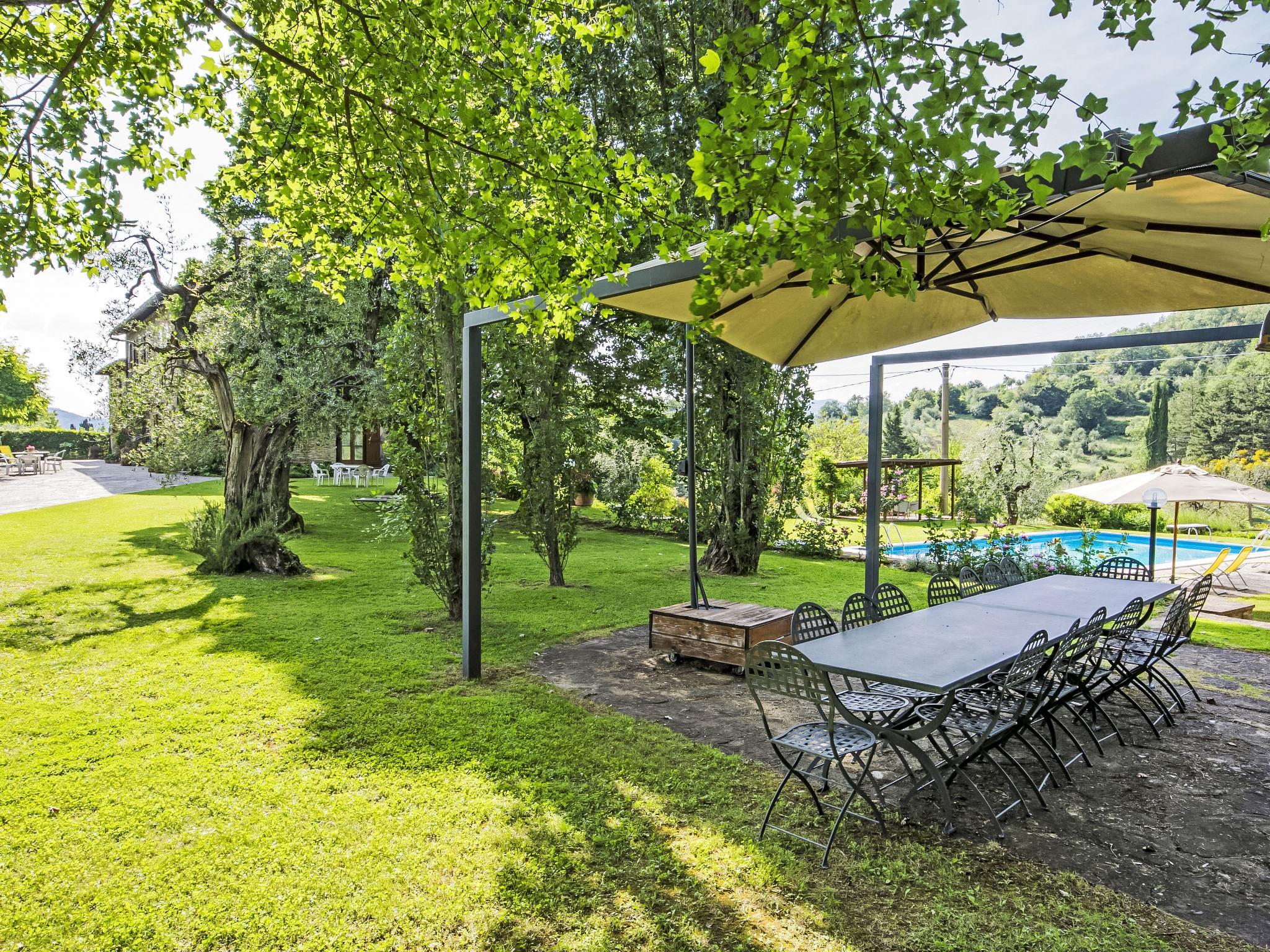Poggio a Vico 3 km from Rufina: Stone property, consisting of five apartments three of which are available to owners and two used for touristic rental. Country house 350 m a.s.l., renovated, surrounded by trees and meadows. 2 apartments in the property. 3 km from the centre of Rufina, 28 km from the centre of Firenze, in a sunny position on top of a hill, 39 km from the lake, in the countryside. For shared use: park 3 ha, garden 1 ha (fenced), swimming pool (6 x 12 m, depth 100 - 200 cm, seasonal availability: 03.May. - 20.Sep.). Terrace, garden furniture, barbecue (swing). In the complex: WiFi (all included), heating to be paid on the spot, heating available only from 01.Nov. - 07.Apr.. Motor access to the house (1 km via unmade road). Parking at the house. Shop 3 km, grocery 3 km, restaurant 3 km, bus stop 1.5 km, railway station "Rufina" 3 km, bathing lake "Lago di Bilancino" 39 km. Golf course (18 hole) 25 km, tennis 3 km, riding stable 15 km. Nearby attractions: Vicchio 18 km, Fiesole 25 km, Impruneta 36 km, San Casciano in Val di Pesa 40 km, Greve in Chianti 45 km. Please note: the owner lives on the same property.