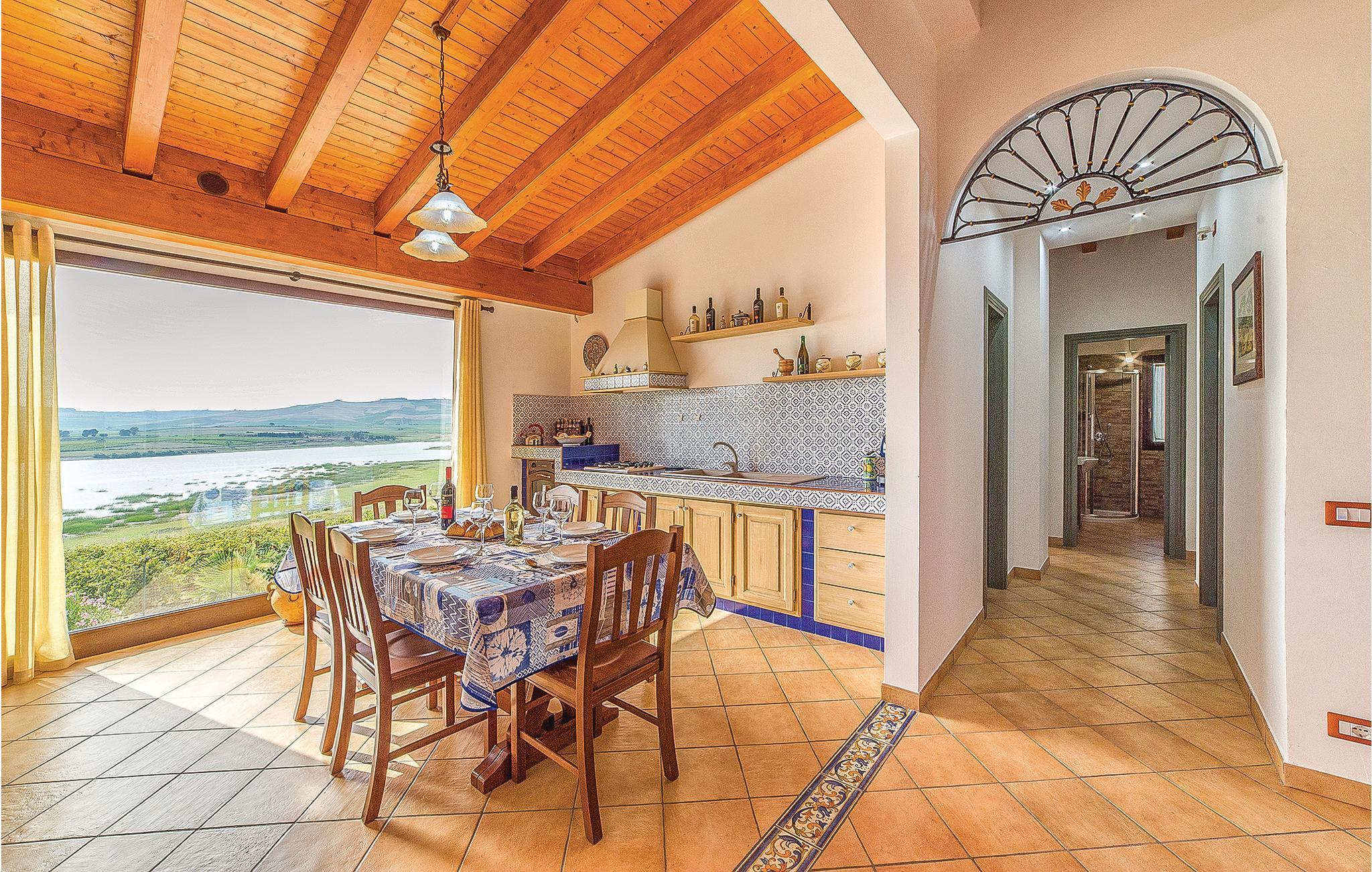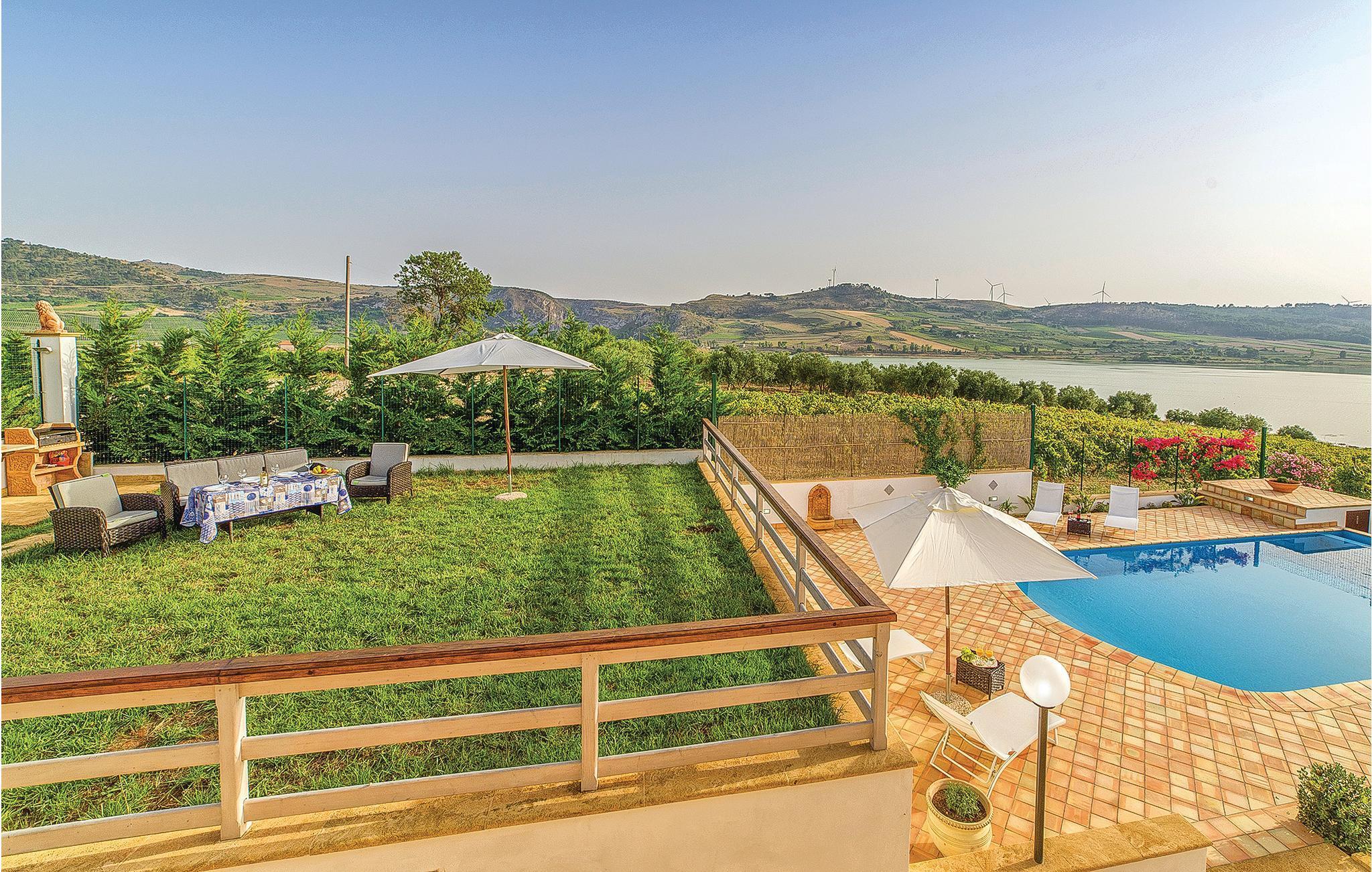 Charmigt semesterhus med egen pool, 3 km från Sambuca di Sicilia. Inte långt från stranden av Aranciosjön - en sann oas av lugn och ro, en naturlig ravin som skapats av Carboj-flodens erosionsverkan - erbjuder det en exceptionell utsikt över sjön från både poolen och de inre rummen. Här har du möjlighet att cykla längs sjöns strand för att upptäcka det omgivande landskapet och njuta av magnifika ljusshower vid solnedgången. Ungefär 3 km bort ligger Sambuca di Sicilia, en av Italiens vackraste byar; missa inte ett besök på det arkeologiska museet på Monte Adrone, bara några kilometer från byn. Vingårdarna i området erbjuder provningar av typiska produkter som olja, nybakat bröd och vin. Området är också idealiskt för sportfiske, med karp och havskatt, och fågelskådning. Stränderna i Menfi ligger 20 km bort och Trapanis flygplats 96 km bort.