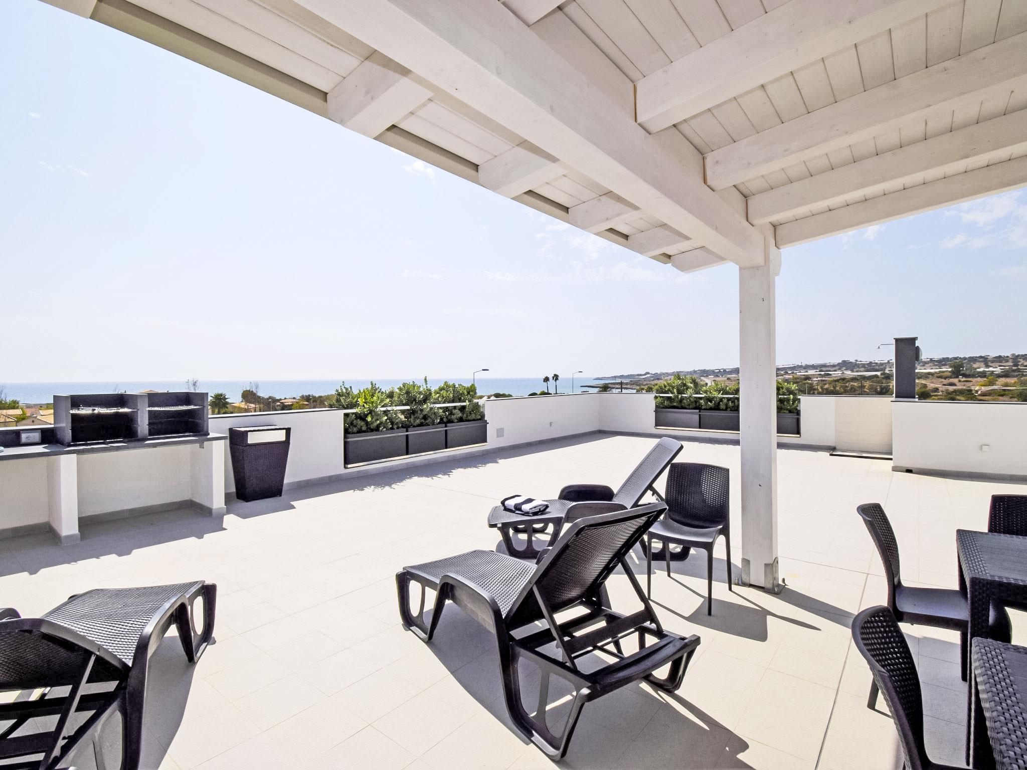 Modern apartment block, built in 2018. 8 apartments in the property. In the hamlet Sampieri 10 km from the centre of Scicli, in a sunny position, 200 m from the sea. For shared use: swimming pool (5 x 10 m, depth 140 cm, seasonal availability: 01.May. - 31.Oct.). Outdoor shower, terrace (60 m2), garden furniture, barbecue, pool maintenance by the owner/gardener. Heating available only from 01.Dec. - 31.Mar.. Parking on the premises. Supermarket 100 m, restaurant 300 m, bar 50 m, bus stop 10 km, sandy beach "Sampieri" 200 m. Nearby attractions: Ispica 23 km, Modica 25 km, Ragusa 40 km, Noto 40 km, Siracusa 75 km. Please note: car recommended, no lift. Main road 20 m from the property.