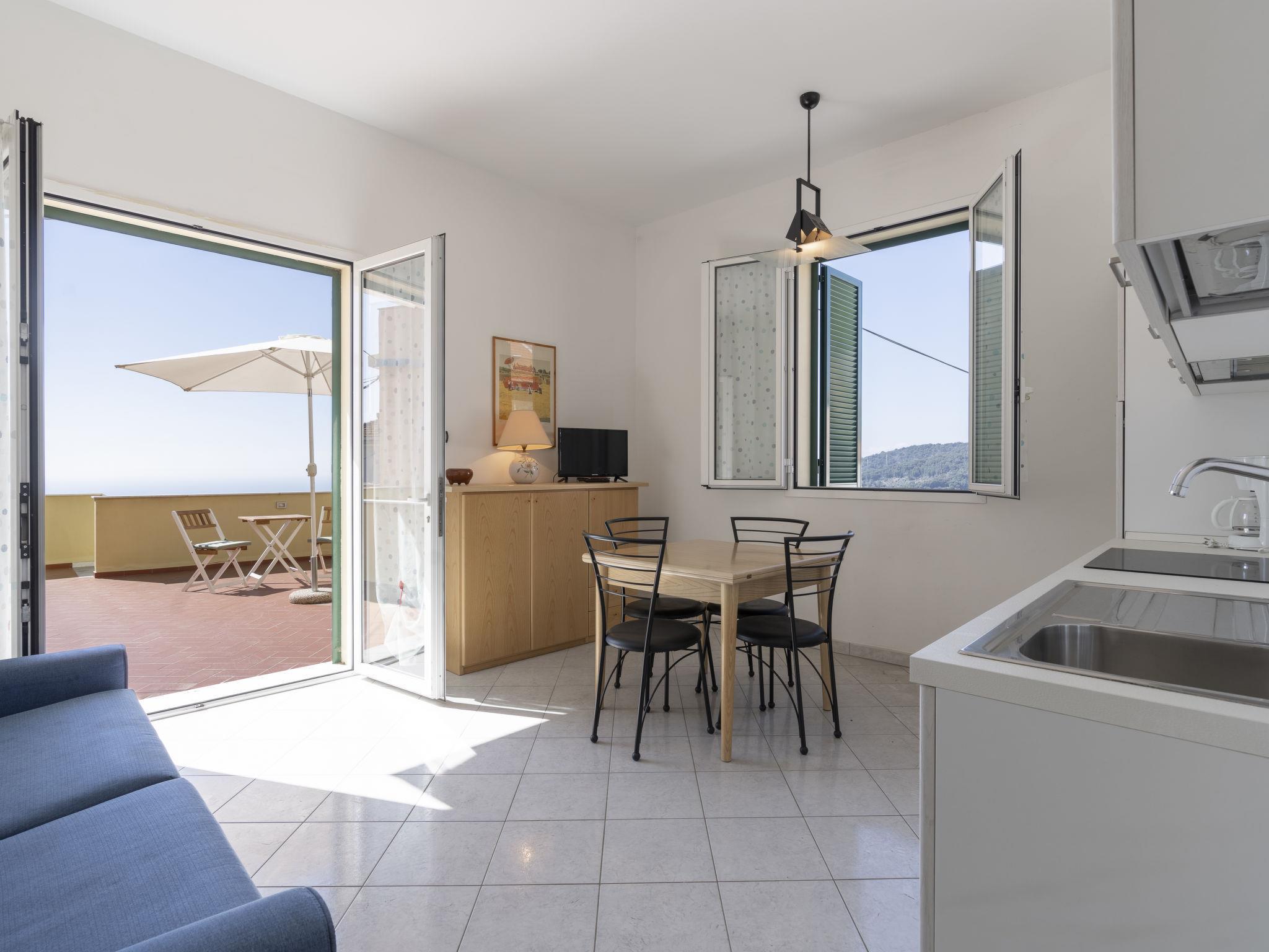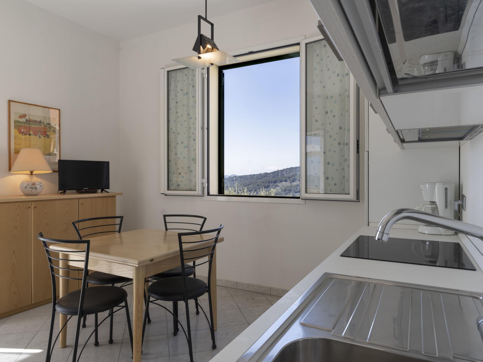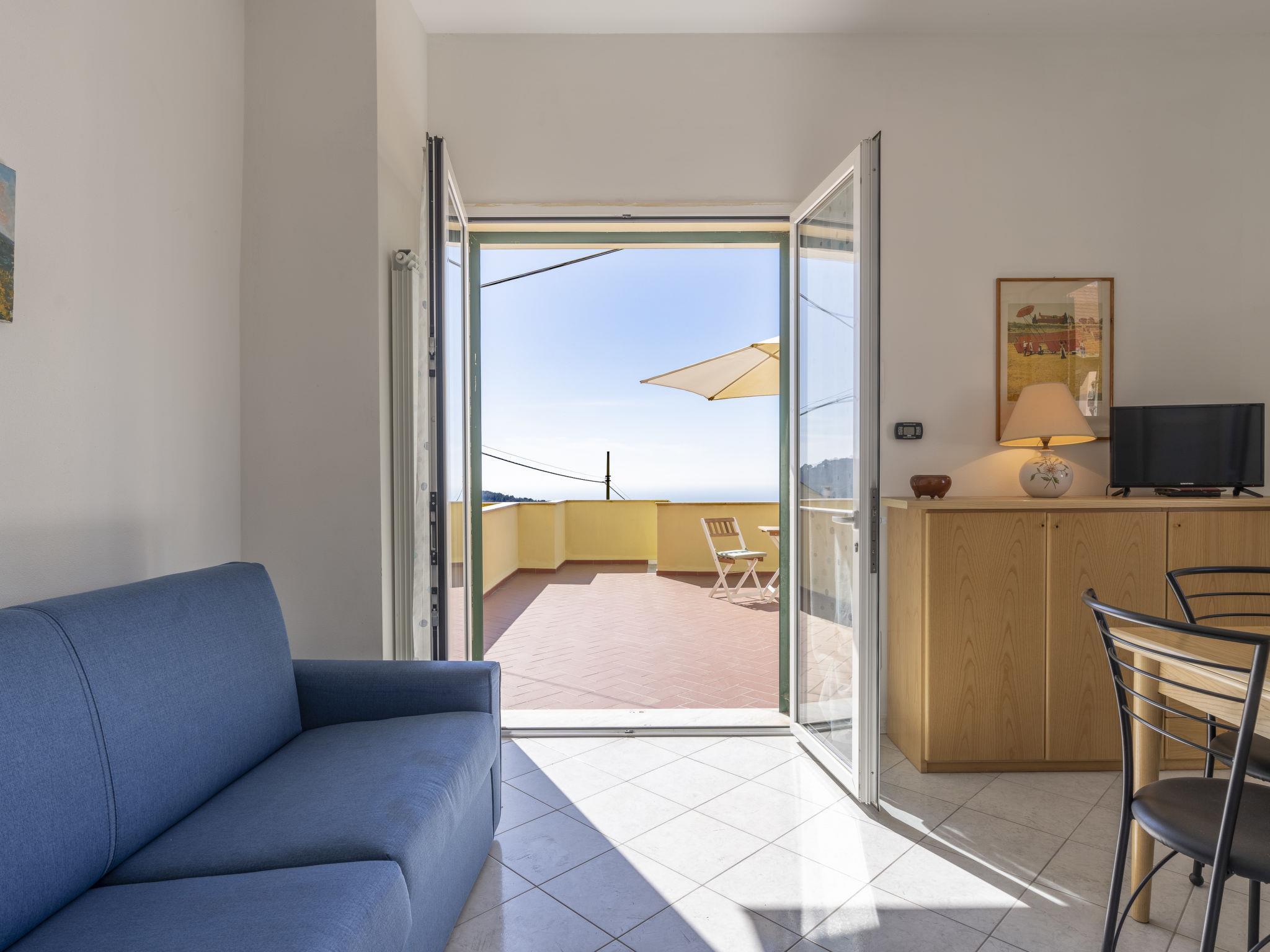 "Origano", 2-room apartment 70 m2 on 1st floor. Bright, practical and modern furnishings: 1 room with 1 french bed (160 cm). Kitchen-/living room (oven, dishwasher, 4 induction hot plates, freezer, electric coffee machine) with dining table, 1 double sofabed (140 cm). Exit to the terrace. Shower/WC. Gas heating. Heating available only from 15.10. to 30.04. Large terrace, south-west facing position. Terrace furniture, barbecue (portable), deck chairs. Very beautiful distant view of the sea and the countryside. Facilities: washing machine, children's high chair, baby cot for up to 2 year olds. Internet (WiFi, free). Parking (1 car). Maximum 1 pet/ dog allowed. IT008052C2JV5FWVLQ