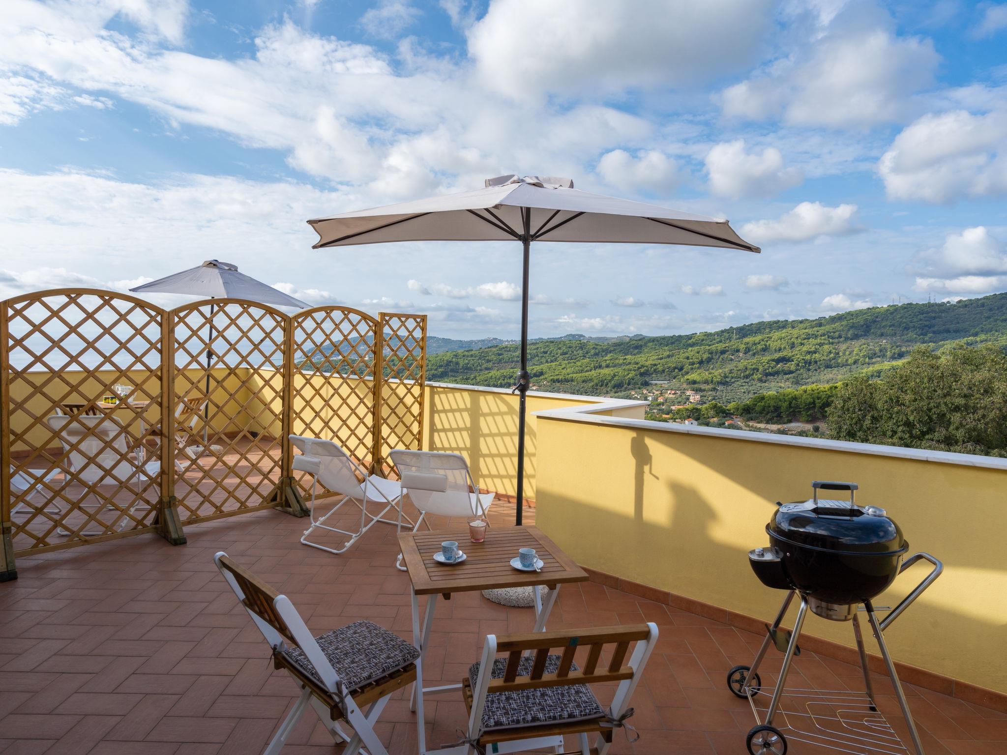 "Rosmarino", 1-room apartment 40 m2 on 2nd floor. Bright, practical and modern furnishings: living/sleeping room with 1 double sofabed (160 cm), TV. Open kitchen (oven, dishwasher, 4 induction hot plates, freezer, electric coffee machine) with dining table. Exit to the terrace. Shower/WC. Gas heating. Large terrace, south-west facing position. Terrace furniture, barbecue (portable), deck chairs. Very beautiful distant view of the sea and the countryside. Facilities: washing machine, children's high chair, baby cot. Internet (WiFi, free). Parking (1 car). Maximum 1 pet/ dog allowed. IT008052C2EKEAYHNK