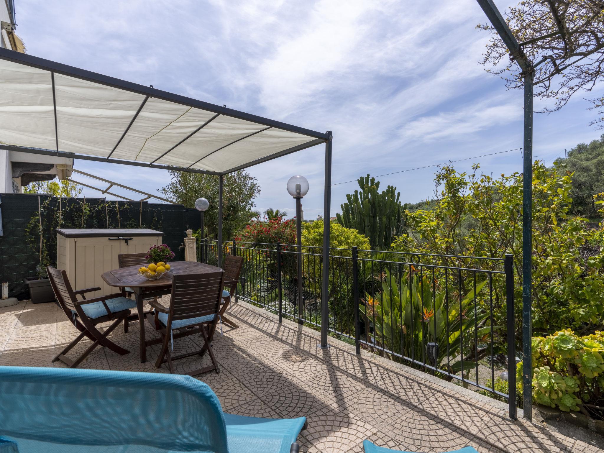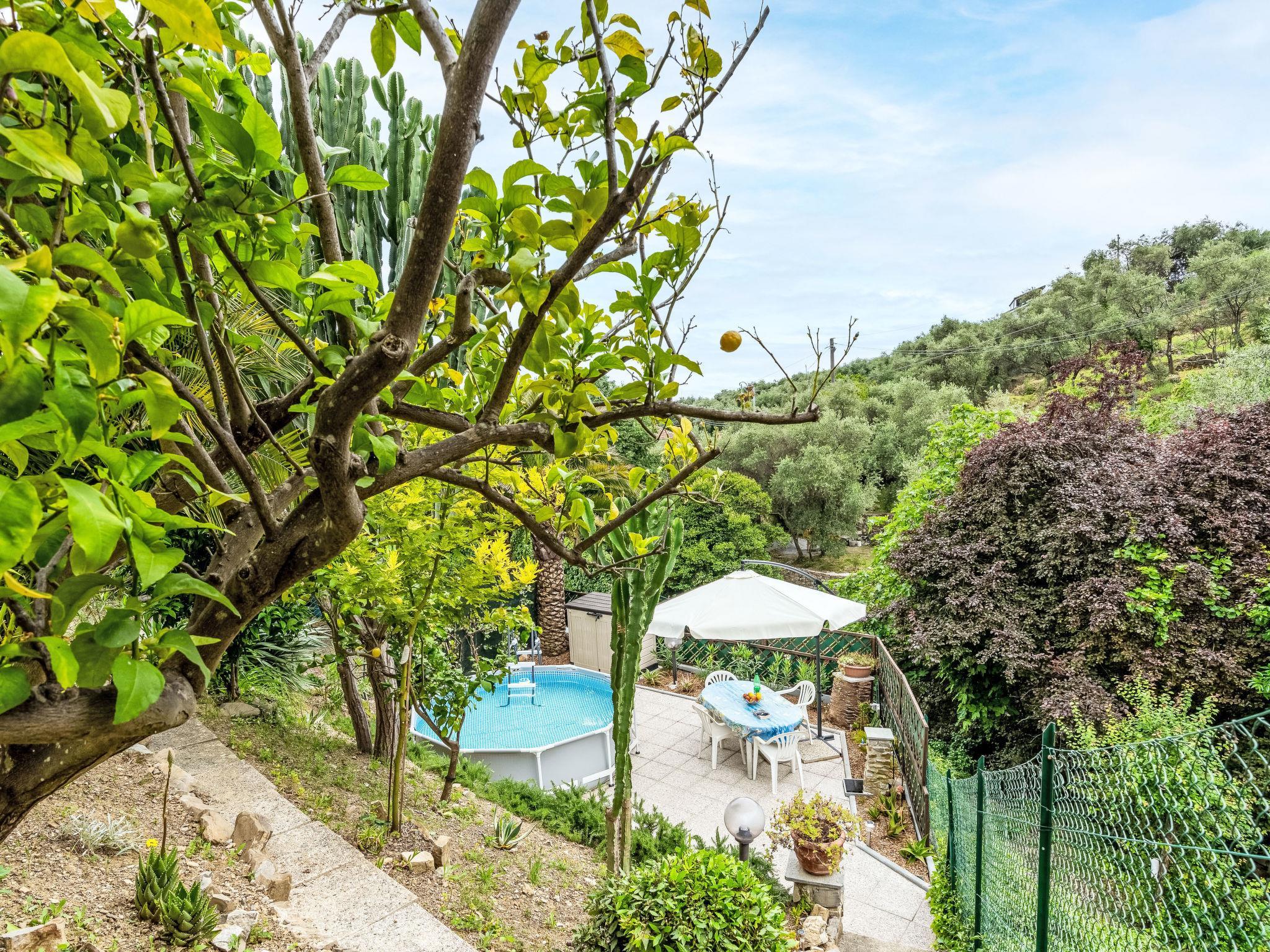 Comfortable residence. 500 m from the centre of San Bartolomeo al Mare, 2 km from the centre of Diano Marina, 2 km from the centre of Cervo, 1 km from the sea. For shared use: swimming pool (above ground) (3 x 4 m, depth 90 - 110 cm, seasonal availability: 01.Jun. and 30.Sep.) with internal staircase. Private: natural garden 300 m2 (fenced). Stepped path (10 steps) to the house. Public parking 50 m on the road. Shop 500 m, supermarket, restaurant 100 m, bar 450 m, bus stop 150 m, railway station "Diano San Pietro" 4 km, sandy beach 1 km. Please note: car recommended.