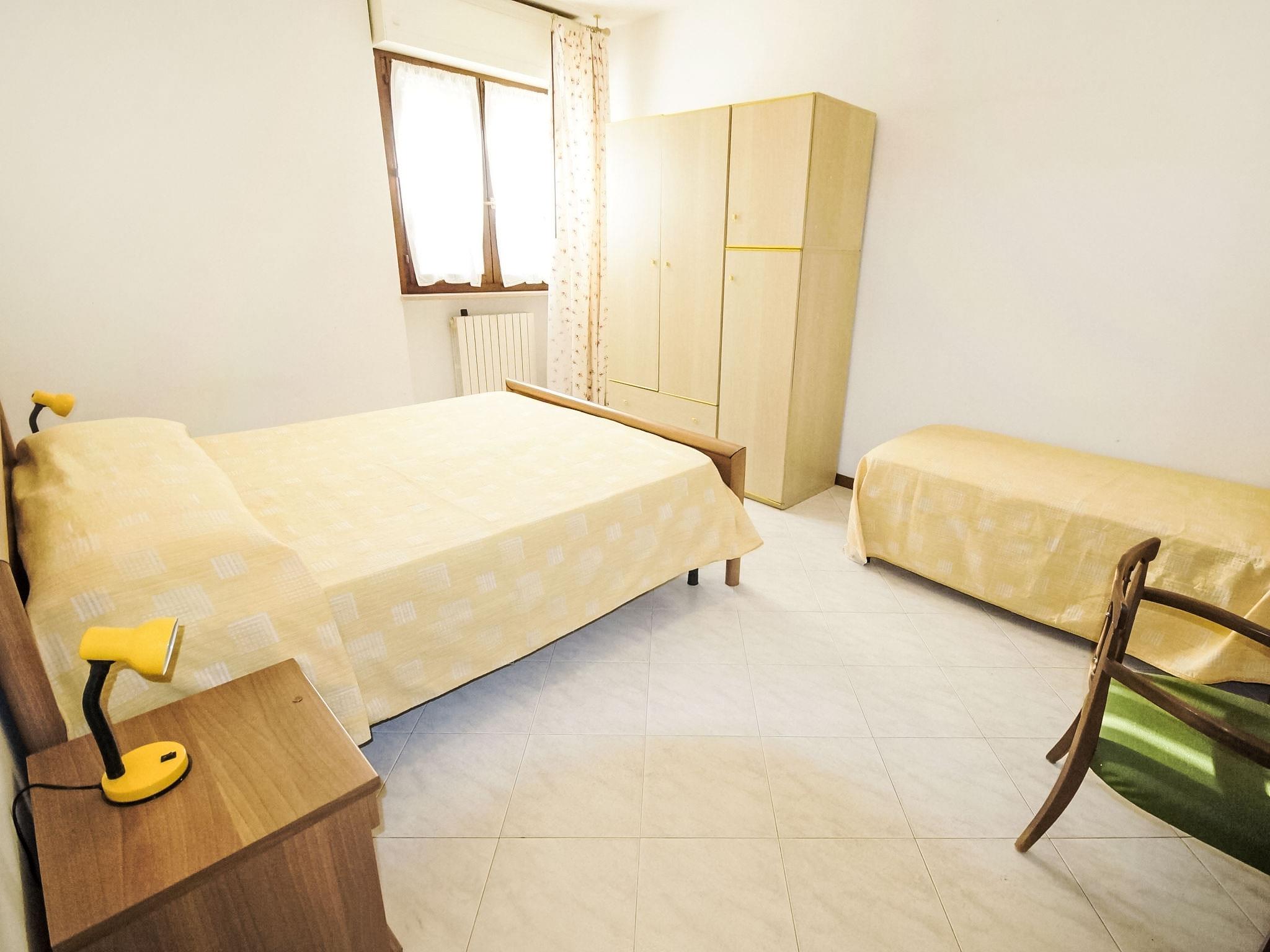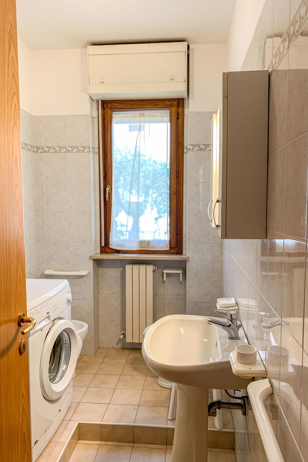 3-room apartment 55 m2, on the ground floor. Practical furnishings: living/dining room with 1 sofabed and TV. Exit to the garden. 1 room with 1 bed and 1 double bed. 1 room with 2 beds. Kitchenette (4 gas rings, microwave). Shower/bidet/WC. Heating, air-conditioning. Heating available only from 01.11. to 15.04. Small garden. Terrace furniture. Facilities: washing machine. Please note: 1 small pet/ dog allowed. Private entrance. IT044066C2XNO5KI2K