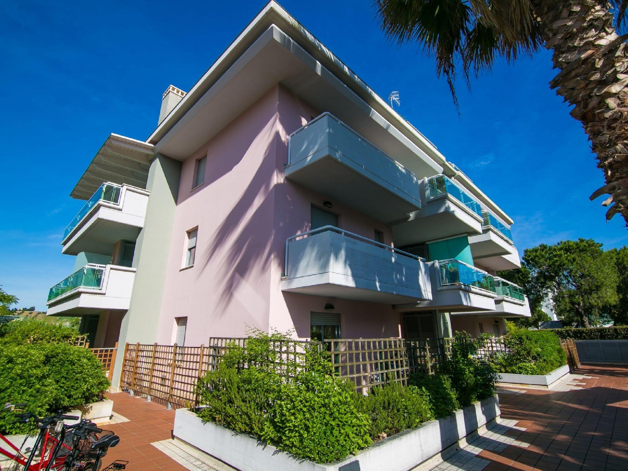 Apartment block "Mediterraneo", 3 storeys. 500 m from the centre of Porto d'Ascoli, 3 km from the centre of San Benedetto, in a sunny position, 100 m from the sea, 100 m from the beach. Motor access to the house. Parking (limited number of spaces, extra), public parking on the road. Grocery, restaurant, bar, bus stop 100 m, sandy beach. Cycle lane 100 m. Nearby attractions: Offida 25 km, Ascoli Piceno 30 km.