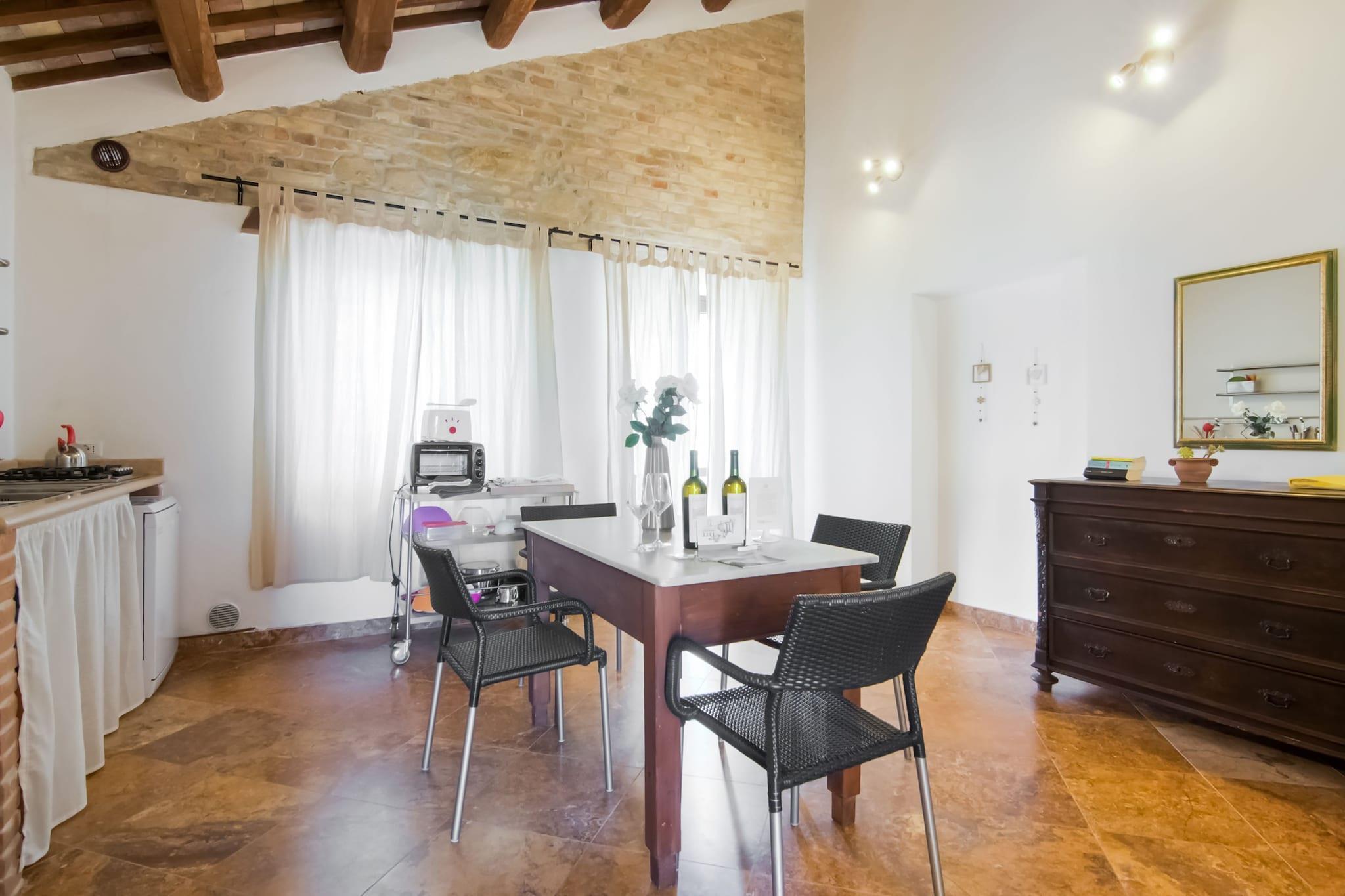 This apartment is in the property, named as Casali Costadoro to keep you comfortable. Great for a group of friends or family, the home features a bubble bath and a swimming pool for relaxation. We are situated in the heart of Italy, and a long drive shall take you to Assissi, a town of religious, mythical importance involving St. Francis of Assissi. Daily essentials are available at the supermarket, 2 km away. Enjoy the sandy beaches and sunny rays at the sea beach 15 km away, and Riviera delle Palme shall not fail to enrapture you, covered with 1000's of palm trees and a long coast for you to cycle along. Multiple food festivals in summer await you by the coast of Marche, it starts with GustoPolis in Gabicce Mare (PU), while in June the Brodetto week takes place in Porto Recanati. Admire the valley views from the terrace. Enjoy the barbecue in the well-furnished garden. The fireplace in the living room will keep you warm in chilly weather.
