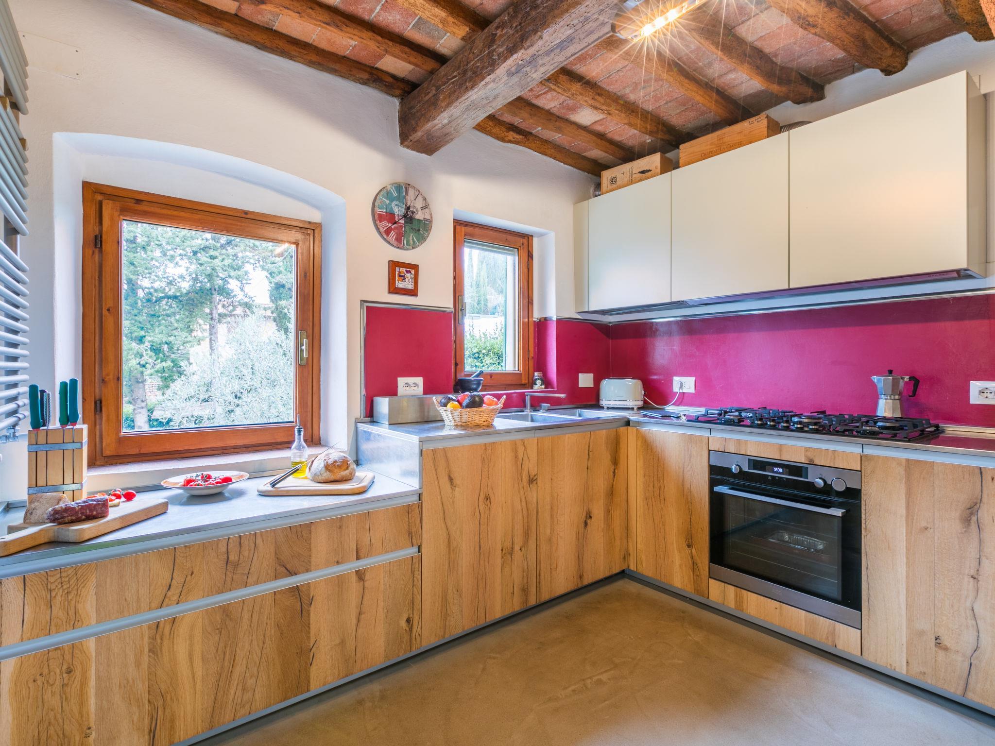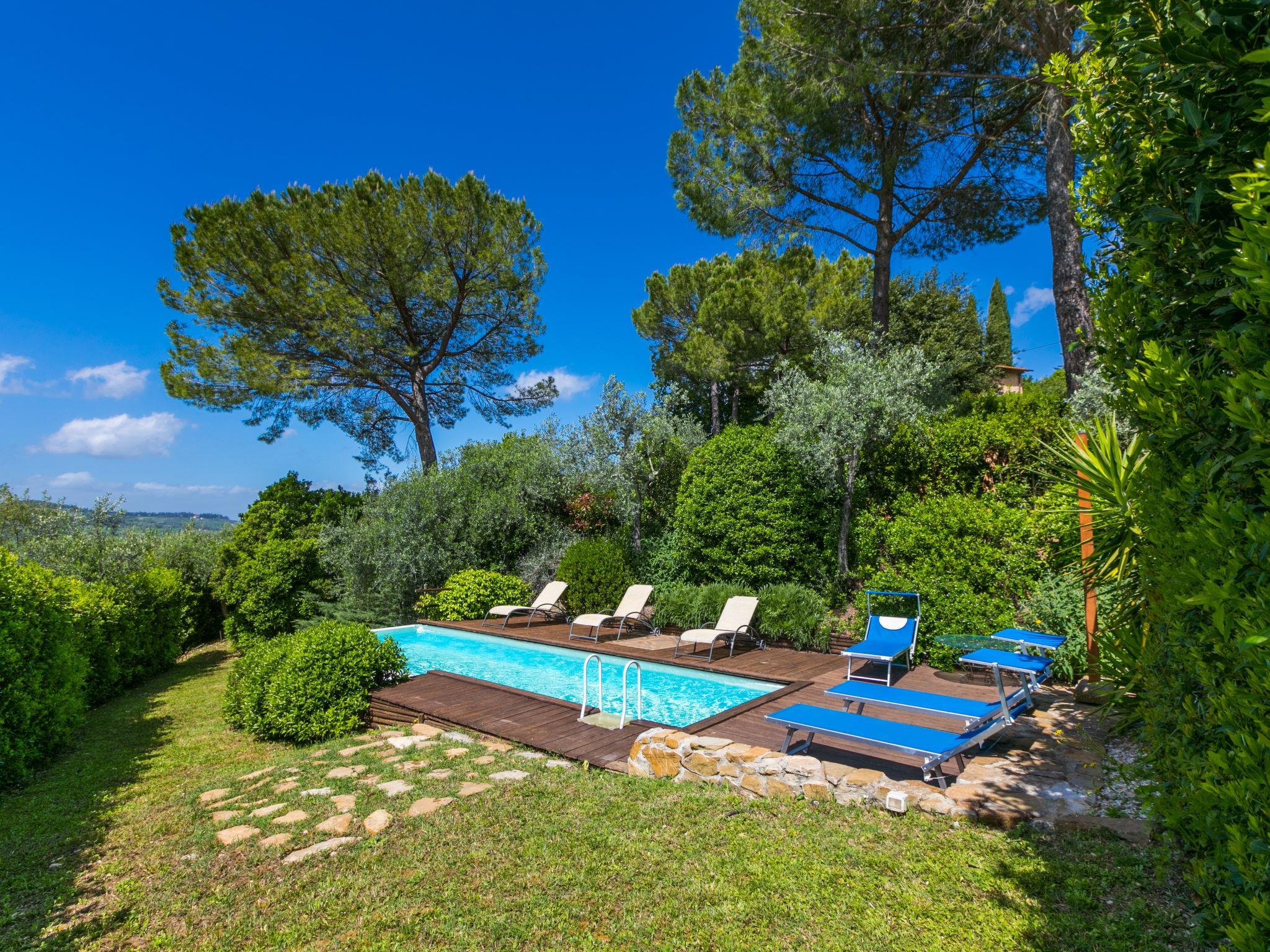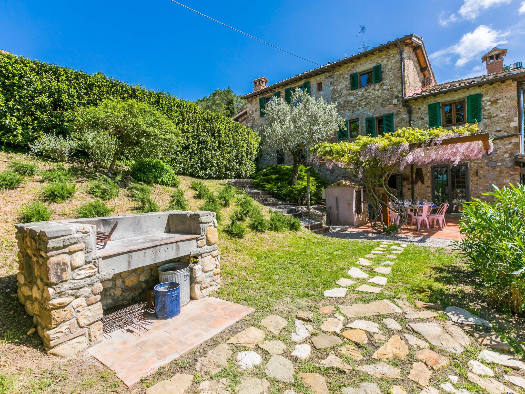 S.Casciano Val di Pesa: Large, cosy farmhouse "Sole", 3 storeys, renovated in 2019, surrounded by trees and vineyards. 2.5 km from the centre of San Scasciano, in a secluded, sunny position on a slope, 90 km from the sea, in the countryside. Private: property 600 m2 (fenced), terraced garden with wildlife garden and trees, swimming pool (above ground) (3 x 8 m, seasonal availability: 10.May. - 10.Oct.). Outdoor shower, terrace, garden furniture, barbecue, pool maintenance by the owner/gardener. In the house: washing machine. Linen change (suppl. charge extra). Towel change (suppl. charge extra). Cook on request (extra). Pre-arrival grocery service. 800 m long bumpy, narrow motor access to the house. Parking (for 4 cars) at the house on the premises. Shop 2 km, grocery 2 km, supermarket 2 km, restaurant 2 km, bakery 2 km, bicycle rental 2 km, bus stop "San Casciano" 2 km, railway station "Firenze Santa Maria Novella" 22 km, sandy beach 90 km, indoor swimming pool 4 km. Golf course (18 hole) 21 km, tennis 4 km, walking paths from the house 100 m. Nearby attractions: Firenze 22 km, San Gimignano 40 km, Siena 60 km, Pisa 74 km. Please note: car recommended. Baby equipment (included). Groups of teenagers on request only. Local sale of farm products.