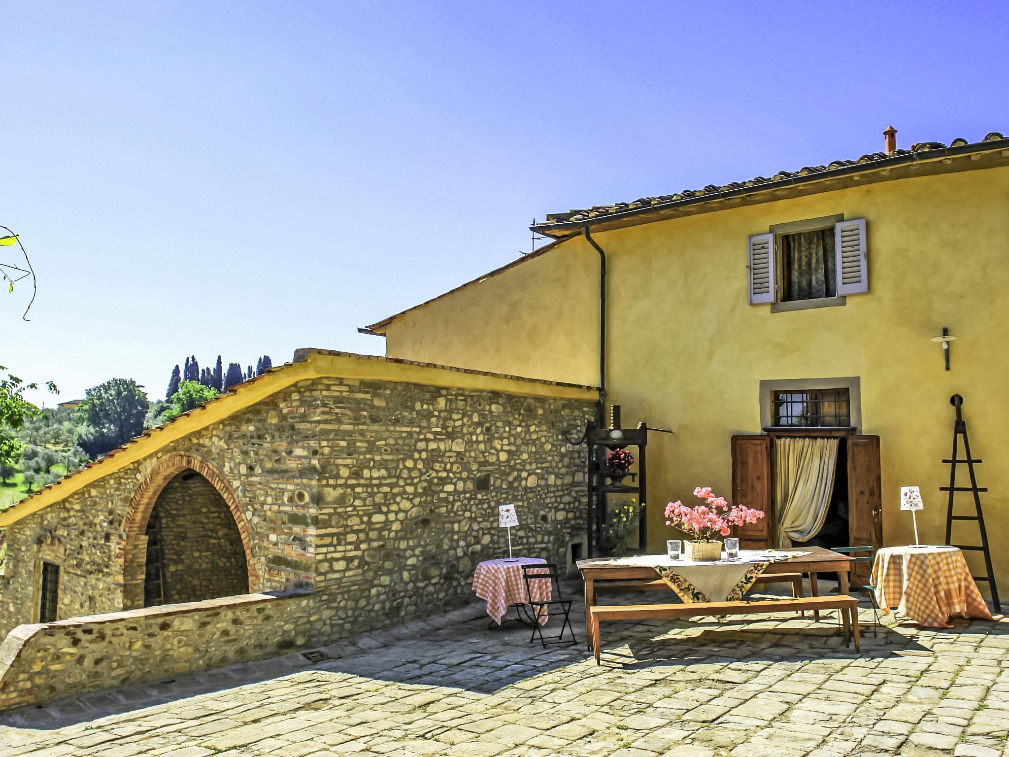 The villa belongs to an ancient farm, under the protection of the fine arts and there is a small chapel on the farm which is still active. Possibility of tasting Chianti Classico wine, vinsanto and oil. The pool has Roman steps. Historical country house "Casa delle Fiabe", 2 storeys, from the 17th century, renovated, surrounded by vineyards. 4 km from the centre of San Casciano, in the district Firenze, in a sunny, elevated position, excellent location: right in the centre but still quiet, in the countryside. For shared use: property 30 ha. Private: garden 2'000 m2 (not fenced) with lawn and flowers, swimming pool (70 m2, depth 140 cm, seasonal availability: 03.Apr. - 16.Oct.). Outdoor shower, terrace, garden furniture, barbecue. In the house: internet access, washing machine, heating to be paid on the spot (06.Nov. - 08.Apr.). Linen change (suppl. charge extra). Towel change (suppl. charge extra). Room cleaning (extra). Cook on request (extra). 1.3 km long motor access to the house. Parking at the house on the premises. Shop 4 km, supermarket 3 km, restaurant 3 km, bakery 4 km, bus stop 2.5 km. Golf course 25 km, tennis 5 km. Nearby attractions: Firenze 22 km, Siena 55 km.