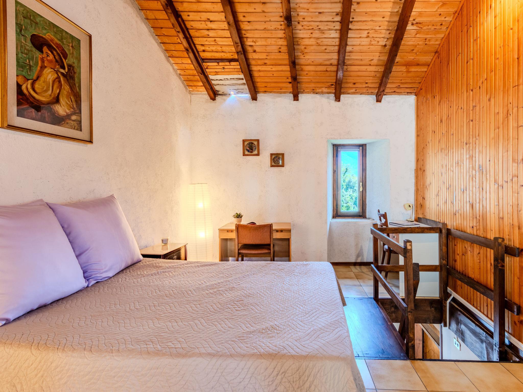 4-room house 80 m2 on 3 levels. Practical and rustic furnishings: open living/dining room with open-hearth fireplace and dining table. Exit to the garden, to the terrace. Kitchenette (oven, Gas stove, 4 gas rings, toaster, microwave, freezer). Upper floor: 1 double bedroom. Bath/bidet/WC. Air-conditioning, forced-air heating. Heating not available in all rooms. 2nd upper floor: (steep stair), 1 open double bedroom with air conditioning. Interconnecting room with 1 double bed. Natural stone floors. Large terrace, small garden. Terrace furniture, barbecue. Very beautiful view of the lake, the mountains and the resort. Facilities: washing machine. Internet (WiFi, free). Please note: non-smoking house, no parking. Maximum 1 pet/ dog allowed. IT013248C2RUTT4ITH