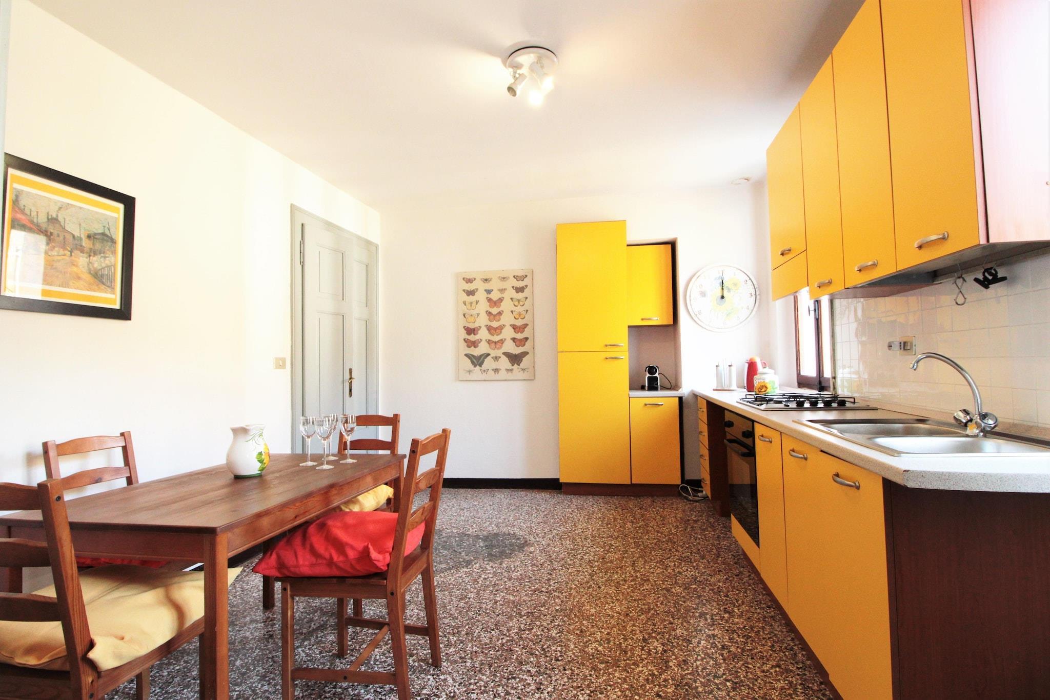 Bo i denna rymliga lägenhet på andra våningen i en praktfull villa från 1600-talet, en adlig sommarresidens, belägen på en kulle på 380 meters höjd, med en fantastisk utsikt över den amfiteaterliknande landskap med kullar och berg som kännetecknar Valbelluna och med Dolomiterna i bakgrunden. Villan är en del av en by som inkluderar en liten kyrka från 1400-talet. Huset är perfekt för en semester med familjen. På kvällen, när du kommer tillbaka från en dag med sport eller efter en utflykt, kan du koppla av i den lugna, inhägnade trädgården eller ta ett dopp i poolen (som delas med de andra gästerna). Härifrån kan du ge dig ut på en dagstur på Alte Vie 1 och 2 i Dolomiterna eller på ett nätverk av 200 km CAI-leder. Eller så kan du åka på utflykter med cykel eller mountainbike. På sommaren kan du segla, vindsurfa och kitesurfa vid sjön Santa Croce eller sola vid de närmaste sjöarna Corlo eller Mis. Eller flyga med paraglider från berget Avena. Vi ligger nära de mest kända venetianska konststäderna: Venedig, Treviso, Vicenza, Padua och en rad fantastiska medeltida byar.