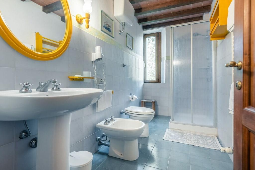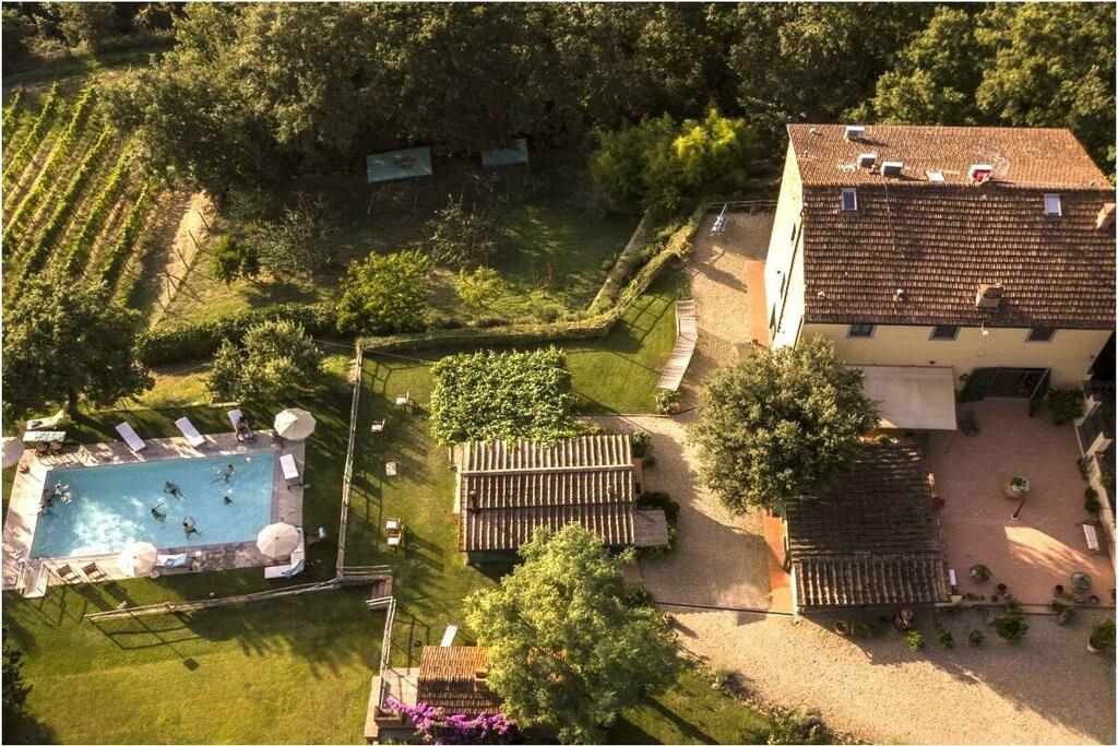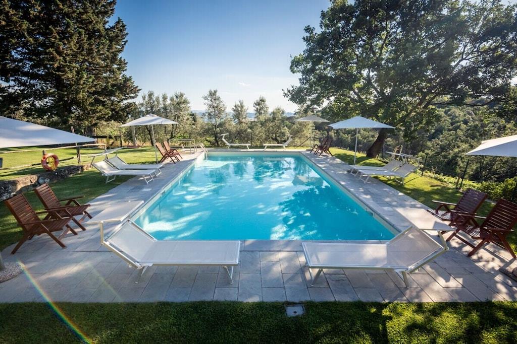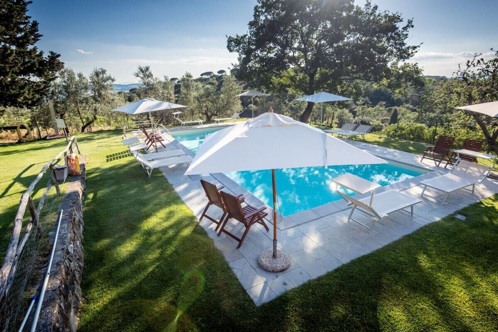 På våning 1: (ardags- och matrum(, Öppet kök, TV, matbord, Braskamin, vattenkokare, brödrost, kaffebryggare, ugn, grill, kylskåp, frys, luftkonditionering, myggskärmar), sovrum(, , , dubbelsäng, myggskärmar), badrum(, WC, dusch, handfat, bidé, tvättmaskin, hårfön)) Vindsvåning: (sovrum(, , , , enkelsäng, enkelsäng, luftkonditionering, myggskärmar)) , Tillgång till Internet, Första hjälpen, tvättmaskin, värme, trädgård(, Grillplats, Strand, Gräsmatta, trädgårdsmöbler, solstole, swimmingpool), parkering, cyklar tillgängliga, strykbräda, strykjärn, torkskåp