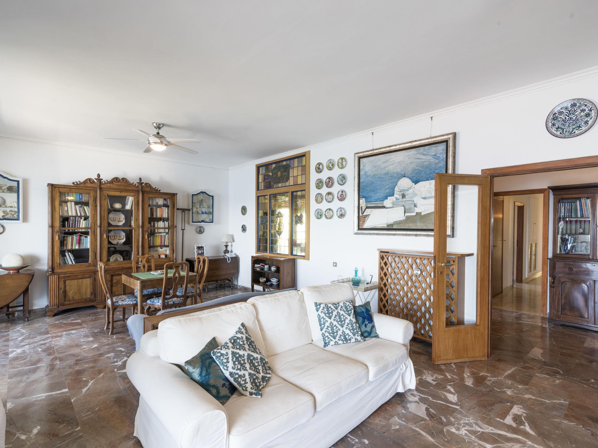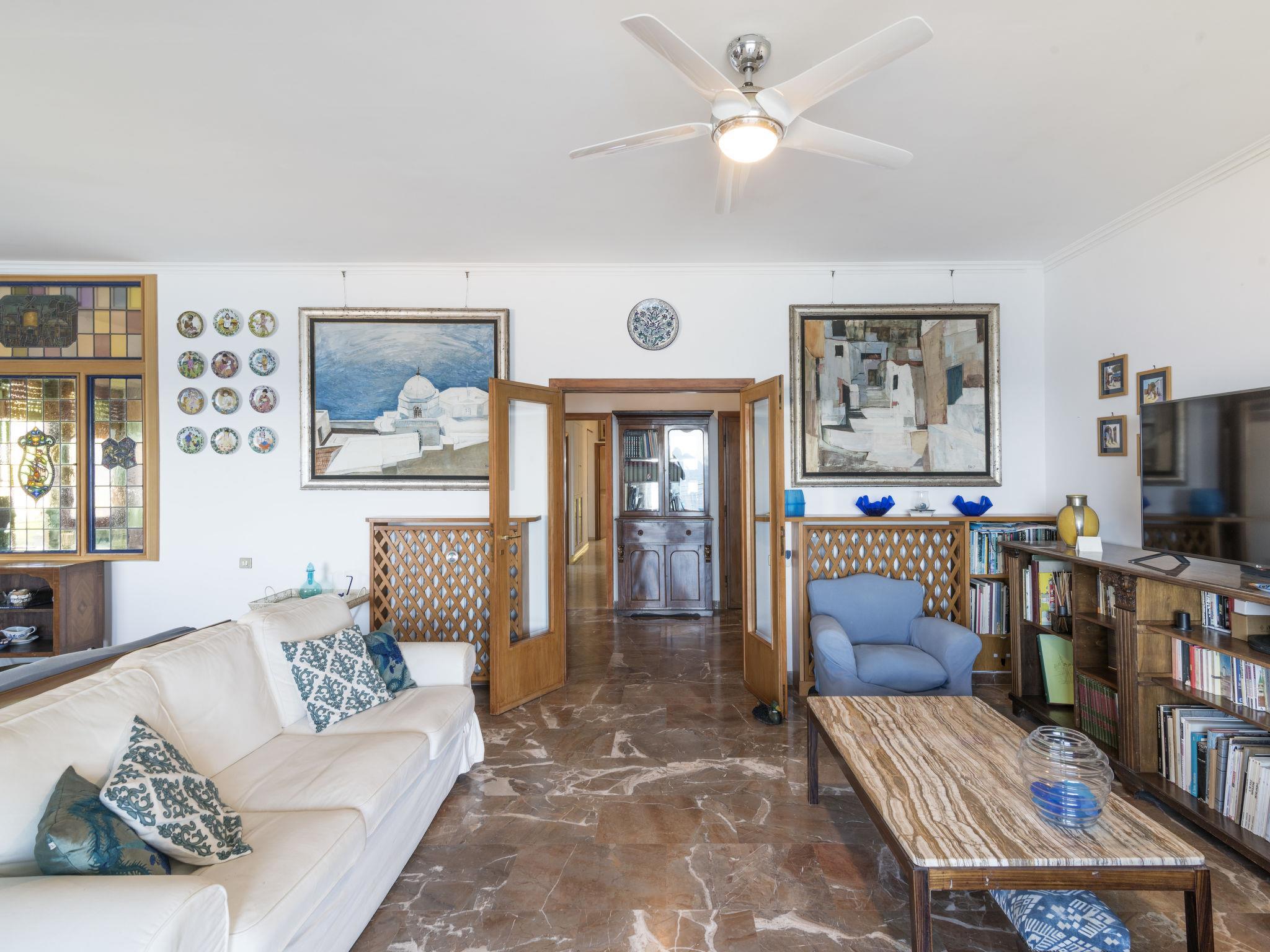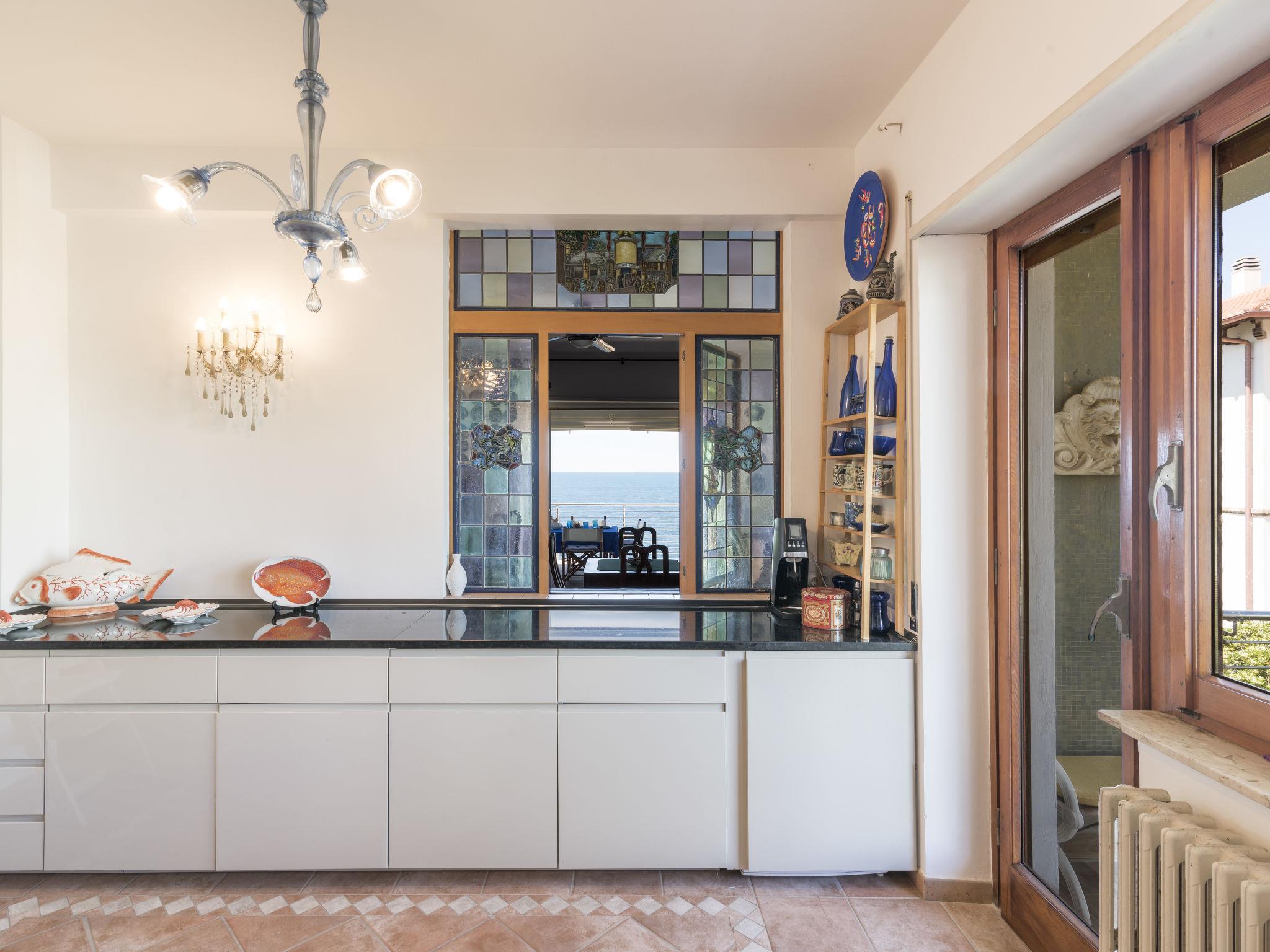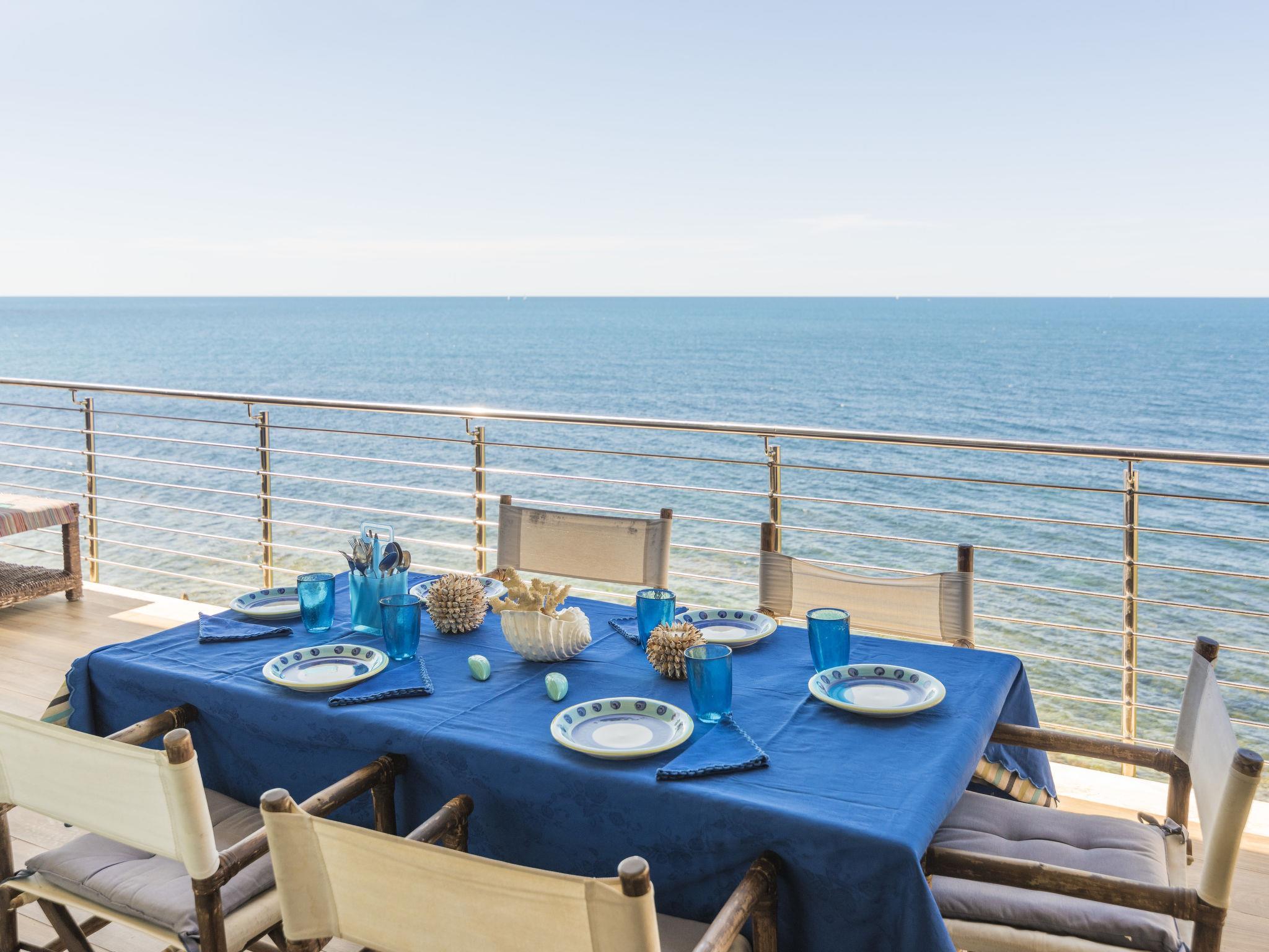 "The Waves", 4-room apartment 164 m2 on 2nd floor. Very beautiful furnishings: living/dining room with 1 double sofabed and satellite TV. Exit to the terrace. 2 double bedrooms. Exit to the balcony. 1 room with 2 beds and 1 pull-out bed. Kitchen-/living room (dishwasher, 4 gas rings, toaster, kettle, electric coffee machine). Exit to the balcony. 2 showers/bidet/WC. Heating. Terrace partly roofed. Terrace furniture. Marvellous view of the sea. Facilities: washing machine, children's high chair, hair dryer. Internet (WiFi). Please note: suitable for families. Maximum 1 pet/ dog allowed. No lift. IT058032C2QHRT8DPQ