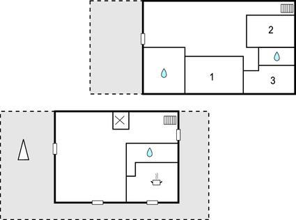 Badrum (nr. 1) - WC: Varmt och kallt vatten. Dusch