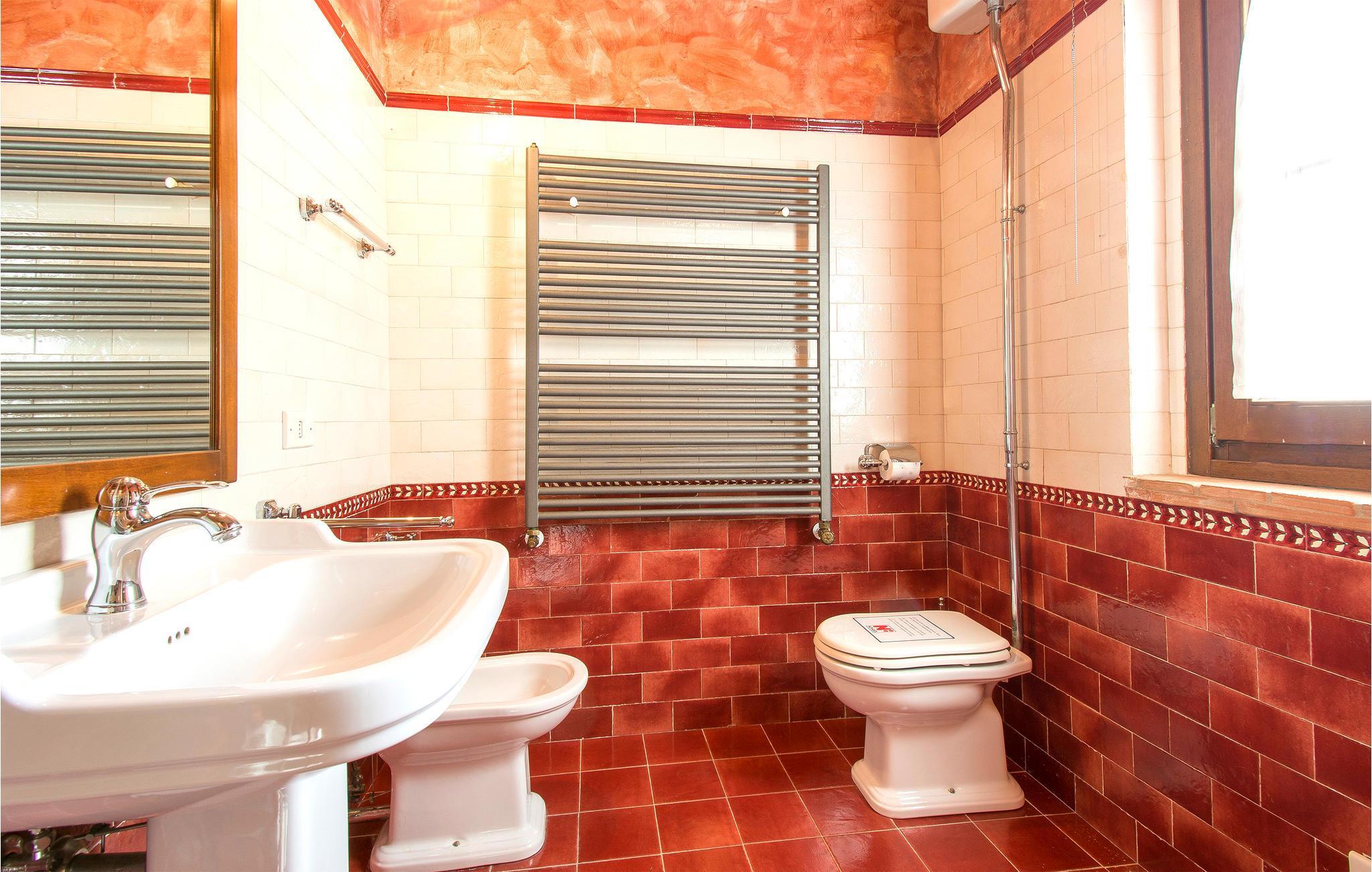 Stort semesterhus med privat pool, 9 km från Montecatini Terme, perfekt för din familjesemester! Njut av din vackra semester i ett lanthus i typisk toskansk stil med stor omgivande mark i kullarna mellan Montecatini Terme och Pistoia, omgiven av vacker natur. Fastigheten med gräsmatta och trädgård är utrustad med bordtennis, rutschkana och gunga, grill, lusthus, bord och stolar för middagar utomhus; vacker och upplyst bönformad pool utrustad med dusch, solstolar, solstolar och parasoller; Tillfartsvägen är delvis (ca 200 m) oasfalterad. Bottenvåning: vardagsrum med satellit-TV och badrum med dusch och direkt tillgång till trädgården; 2 badrum WC; vardagsrum med TV och öppen spis, med direkt utgång till trädgården; kök med direkt utgång till trädgården; med oberoende tillgång från utsidan ett dubbelrum med badrum med dusch. Första våningen: 4 dubbelrum (ett med extrasäng), alla med badrum med dusch. Ytterligare 4 dubbelrum, vart och ett med badrum med dusch, har tillgång från utsidan. På bottenvåningen förblir ett rum och källaren stängda. Några avstånd: 10 km från Pistoia, 37 km från Lucca, 42 km från Florens, 53 km från Pisa, 60 km från Viareggio och Versilias stränder. 3 km livsmedelsbutiker och restaurang, 4,5 km stormarknad och affärer av alla slag, 8 km ridhus, 9 km kurorter, golfbana och tennis.