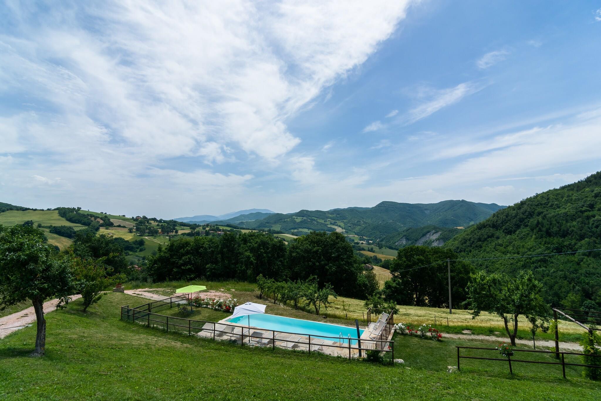 Njut av en fridfull oas i denna charmiga toskanska bondgård, belägen på den natursköna landsbygden i Sestino. Perfekt för familjer eller små grupper, hemmet är bekvämt värd för 5 gäster med 2 mysiga sovrum. Boendet ligger bland böljande kullar och har en gemensam pool och en välskött trädgård med utemöbler, perfekt för avkoppling under den toskanska solen. Inuti erbjuder bondgården rustik komfort med en varm öppen spis i vardagsrummet och matsalen, vilket ger en hemtrevlig touch till dina kvällar. Det fullt utrustade köket och grillen låter dig utforska lokala smaker i din egen takt. Med gott om parkeringsplatser och husdjursvänliga bekvämligheter, blandar denna tillflyktsort landsbygdens charm med praktisk bekvämlighet. Mercatello sul Metauros centrum ligger bara 4,5 km bort och erbjuder restauranger, stormarknader och lokala butiker att utforska. För strandälskare ligger Adriatiska havet bara 60 km bort. Regionen är rik på natur och historia och inbjuder dig att upptäcka det autentiska Toscana. Närmaste flygplats ligger 90 km bort, vilket gör det till ett tillgängligt tillflyktsort för din nästa semester.