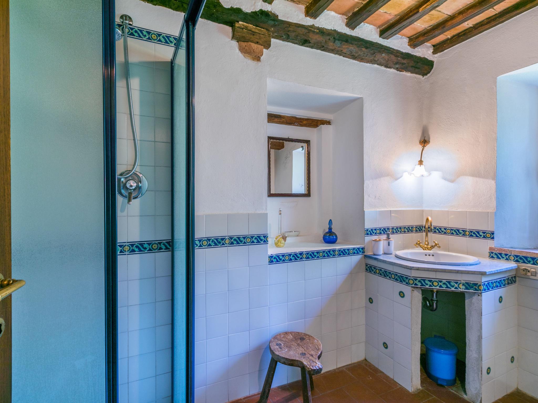 "Casino di Lecceto", 6-room house 250 m2 on 3 levels. Spacious, rustic and antique furnishings: large living/dining room with open-hearth fireplace, dining table and TV. Exit to the garden, to the terrace. Large kitchen (oven, dishwasher, 4 gas rings, toaster, kettle, freezer, electric coffee machine) with dining table. Exit to the loggia. Shower/bidet/WC. Upper floor: living/dining room with open-hearth fireplace and dining table. Exit to the loggia. 1 room with 2 beds. 2 double bedrooms. Bath/bidet/WC, shower/bidet/WC. 2nd upper floor: 1 room with 2 beds. Gas heating (extra). Natural stone floors. Small terrace roofed, patio. Terrace furniture, barbecue, deck chairs, covered balcony, box-room. Facilities: washing machine, children's high chair, baby cot for up to 2 year olds, hair dryer. Internet (WiFi, free). Parking at the house. Please note: non-smokers only. The pool mentioned in the description is for private use. IT052032C2CUAQHV2V