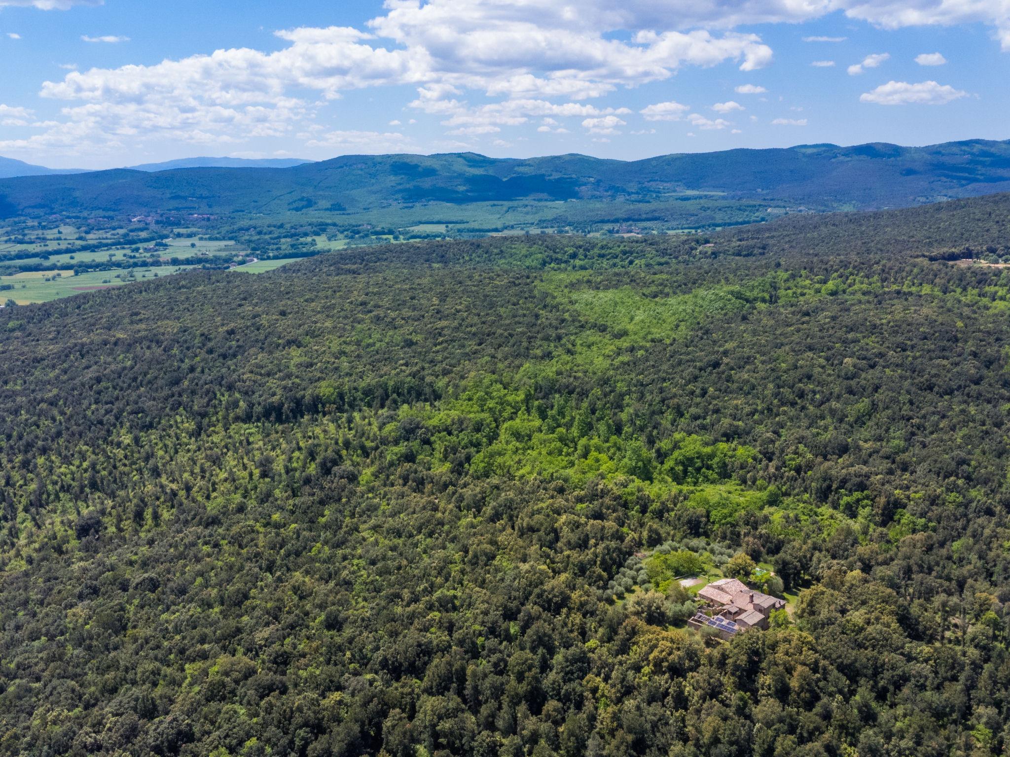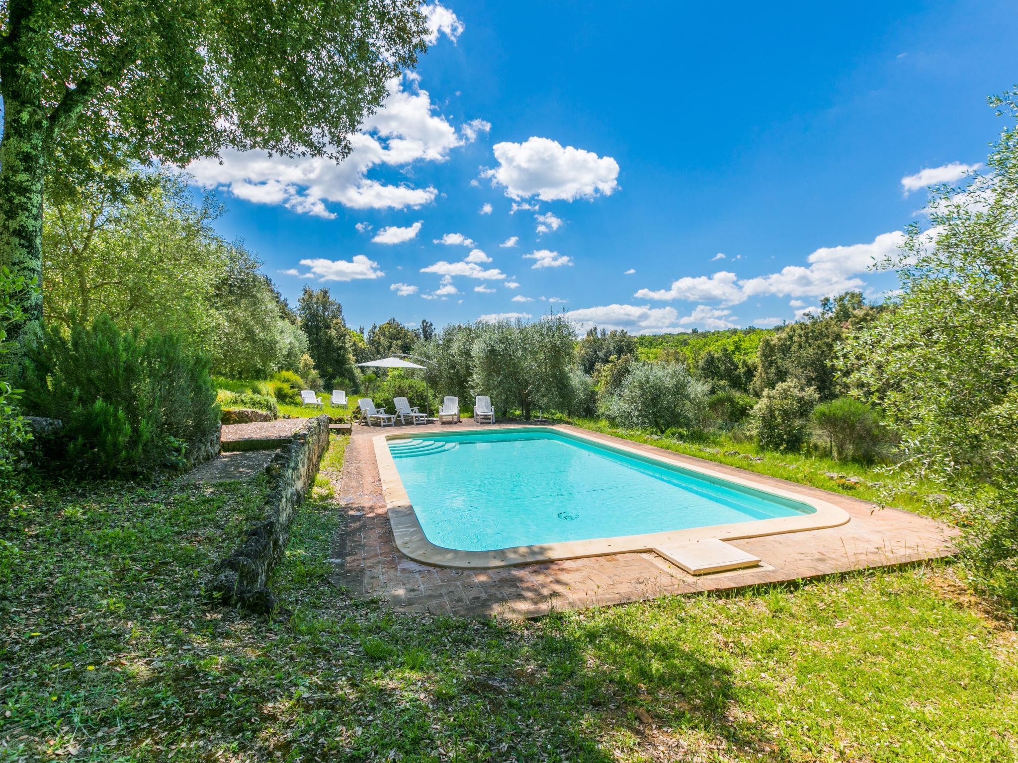 Large, rustic cottage "Casino di Lecceto", 400 m a.s.l., 3 storeys, detached, surrounded by trees. 8 km from the centre of Siena, 80 km from the centre of Florenz, 50 km from the centre of San Gimignano, in a secluded position on top of a hill, 100 m from the edge of the forest, 80 km from the sea, in the countryside, in the woods. Private: natural state property 2 ha (fenced), garden with wildlife garden and trees, natural garden, meadow, courtyard, swimming pool (10 x 5 m, seasonal availability: 24.Apr. - 04.Oct.). Terrace, garden furniture, barbecue, pool maintenance by the owner/gardener. 400 m long very bumpy motor access to the house (via unmade road). 4x4 car recommended in winter. Parking at the house on the premises. Grocery 1 km, supermarket 5 km, restaurant 2 km, bus stop 2 km, railway station "Siena" 8 km, sandy beach "Follonica" 80 km, thermal baths "Rapolano Terme" 37 km. Golf course (18 hole) 16 km, walking paths from the house 1 km. Nearby attractions: former hermitage, frescoes 15th century 1 km, Monteriggioni 14 km, San Galgano 28 km, Volterra 50 km. Please note: baby equipment (included). Groups of teenagers on request only. Part of the house is closed and unoccupied. The tap water has no drinking water quality.