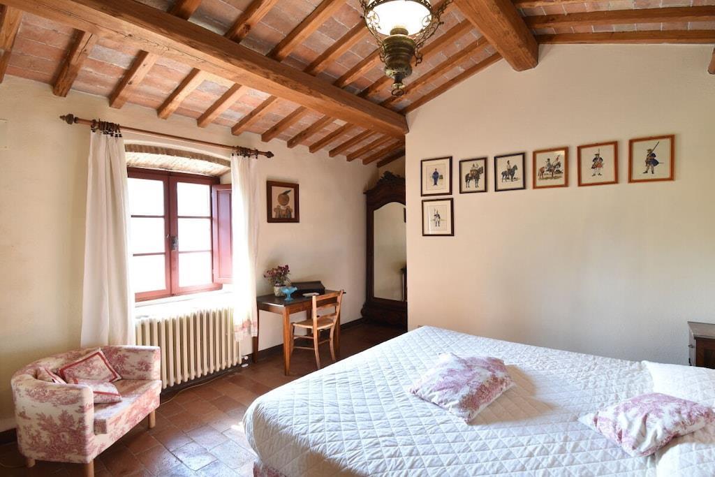 Lägenheten ligger i ett vackert lantställe från 1700-talet med typisk sienesisk arkitektur. Härifrån kan du nå Chianti-regionen och staden Siena, som ståtar med en mängd kulturella sevärdheter, på bara några minuter (6 km). Närmaste by ligger 3 km bort och har en bar, restaurang och stormarknad. Lägenhet (upp till 7 personer, 140 m²): Från den privata innergården kommer du in i entrén med stora fönster på bottenvåningen, genom vilka du kommer in i lägenheten. Det stora vardagsrummet, med sina typiska träbjälkar i taket, är uppdelat i ett vardagsrum och kök. Vardagsrummet är möblerat med soffor och fåtöljer. Köket är välutrustat och har ett matbord för åtta personer. På första våningen finns ett sovrum med dubbelsäng och eget badrum och dusch. Ytterligare ett sovrum med två enkelsängar och ett separat badrum finns på samma våning. På andra våningen finns en stor vindsvåning med tre enkelsängar. Sovrummen erbjuder en vacker utsikt över gårdens trädgård. Innergården har en härlig sittgrupp med parasoll och grill. Privat parkering finns tillgänglig.