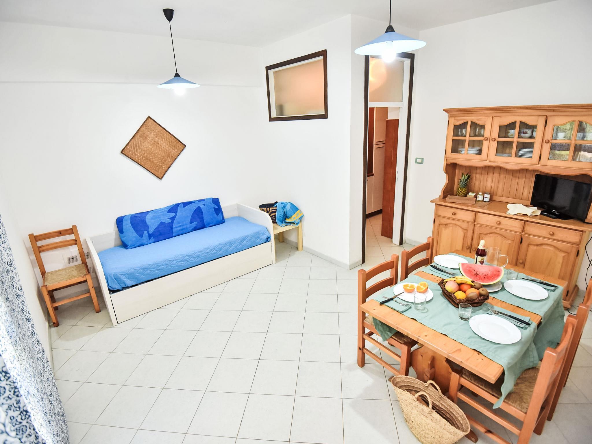 2-room apartment 45 m2, on the ground floor. Simple and practical furnishings: living/sleeping room with 1 sofabed, 1 pull-out bed and TV. 1 double bedroom. Small kitchen (4 hot plates, oven, freezer). Shower/bidet/WC. Garden. Terrace furniture. Facilities: washing machine. Internet (WiFi, free). Maximum 1 pet/ dog allowed. IT067040B4QJRTH8OS