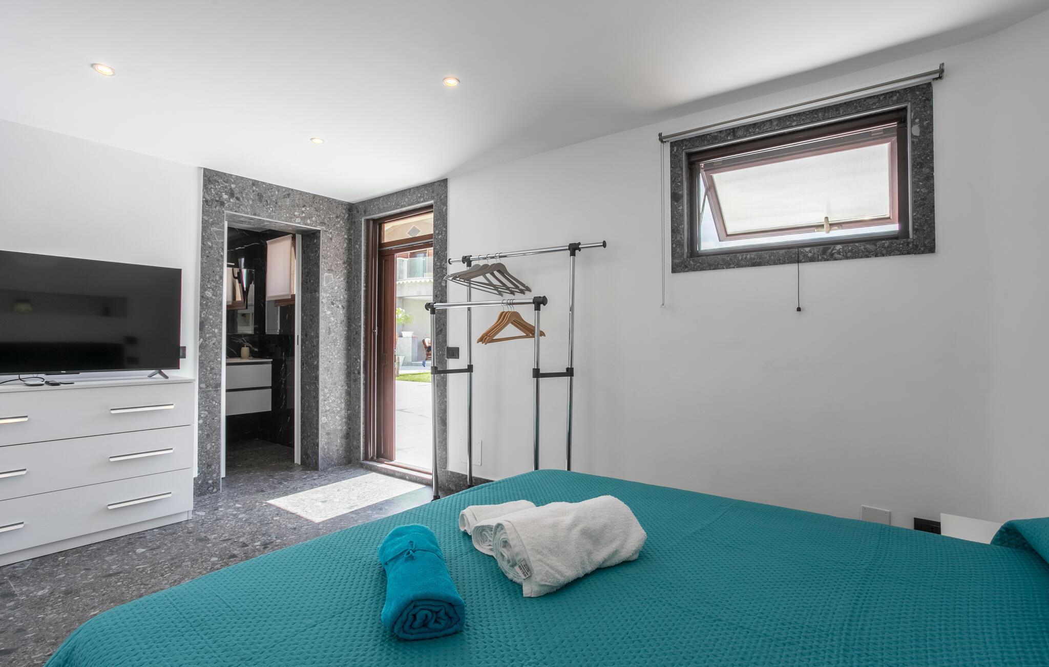 Välkommen till detta bekväma hus med ett stort utomhusområde. Det luftiga, ljusa huset erbjuder en trevlig atmosfär för avkoppling samt utrymme och avskildhet och är perfekt för familjer eller par. Ni kan koppla av på de vackra terrasserna, njuta av en mysig måltid och göra upp planer för den kommande dagen. På solstolarna kan ni koppla av helt och hoppa i den stora poolen när ni känner för det. I utomhusköket kan ni laga middag tillsammans.