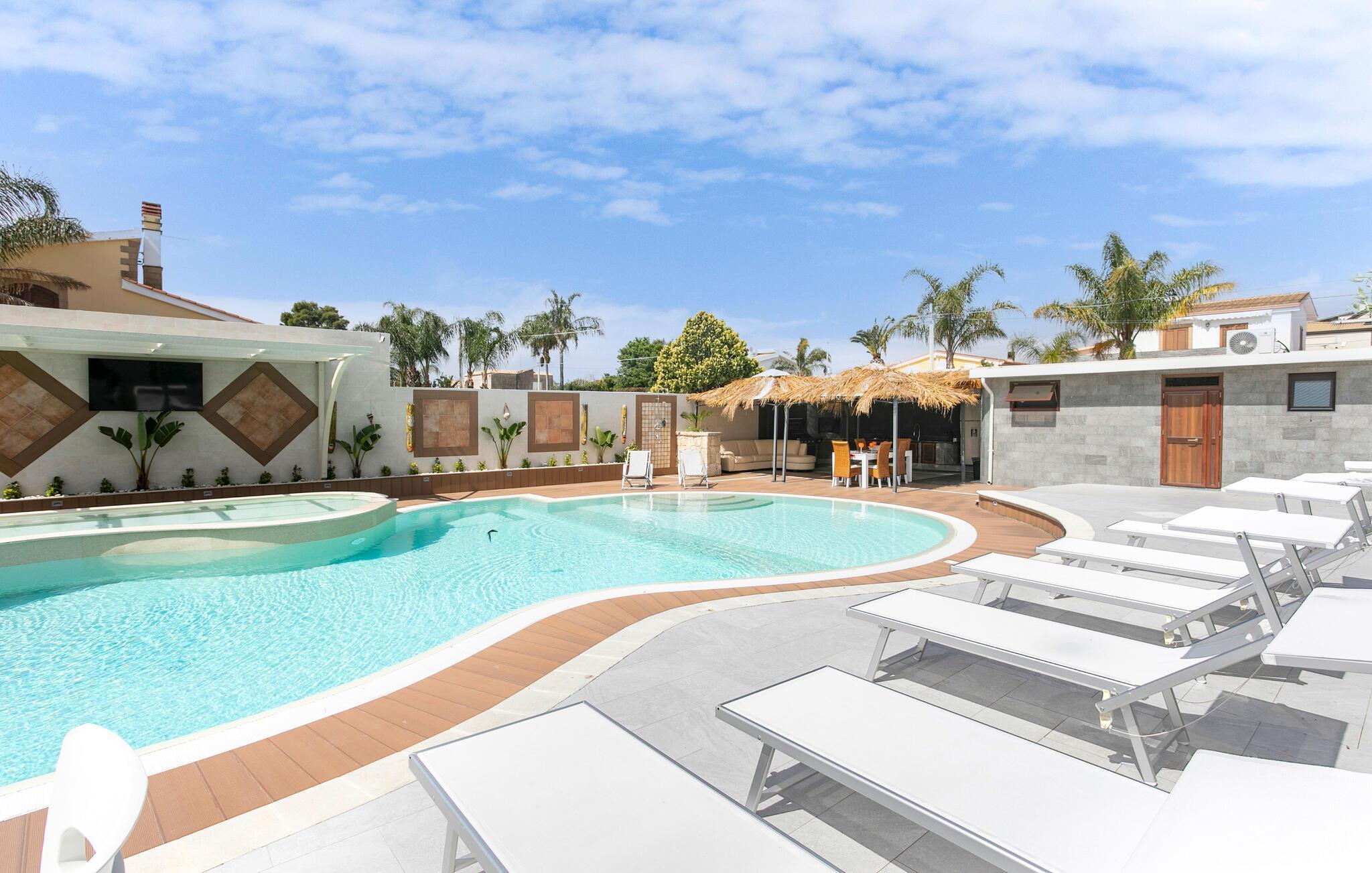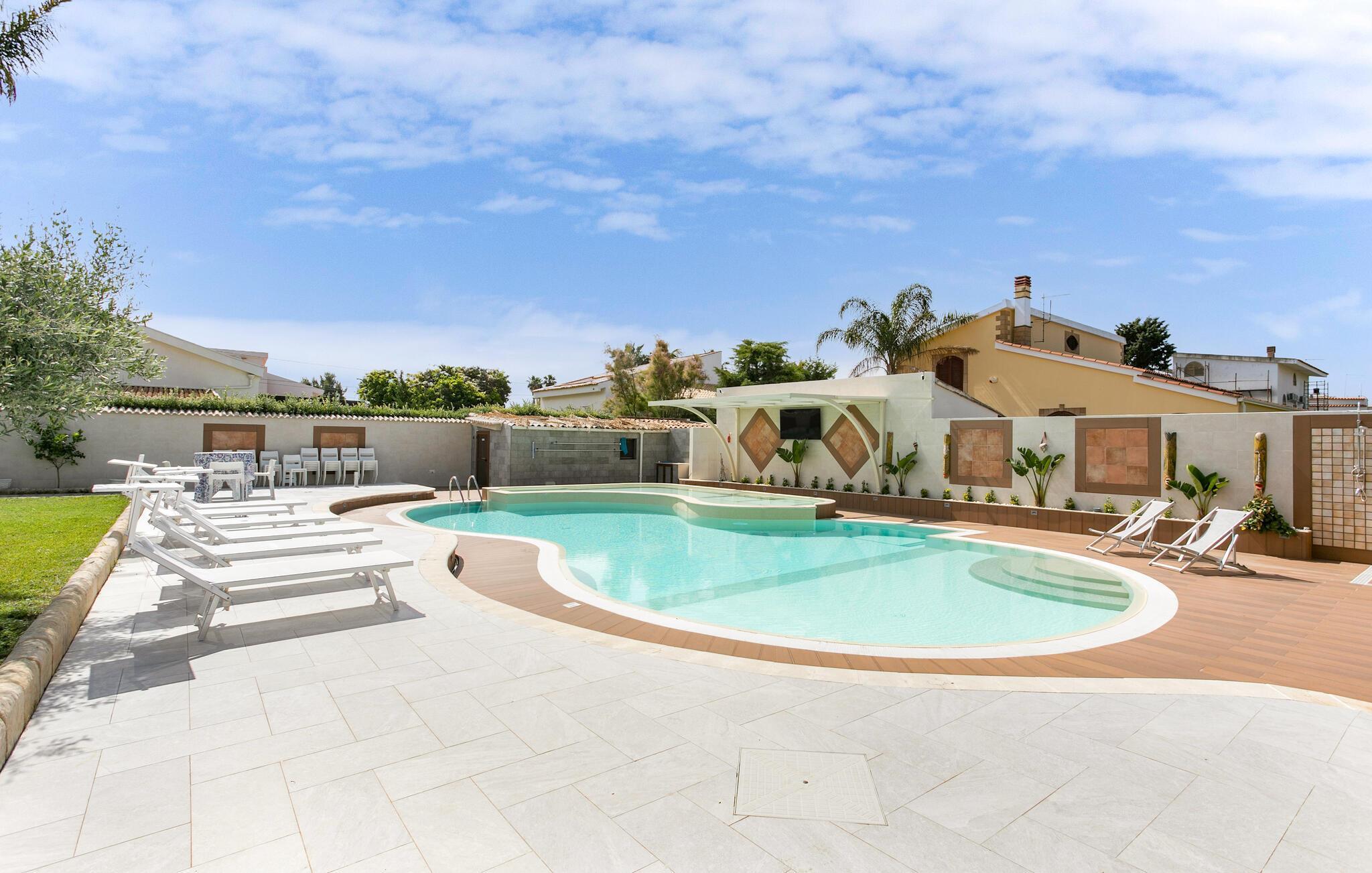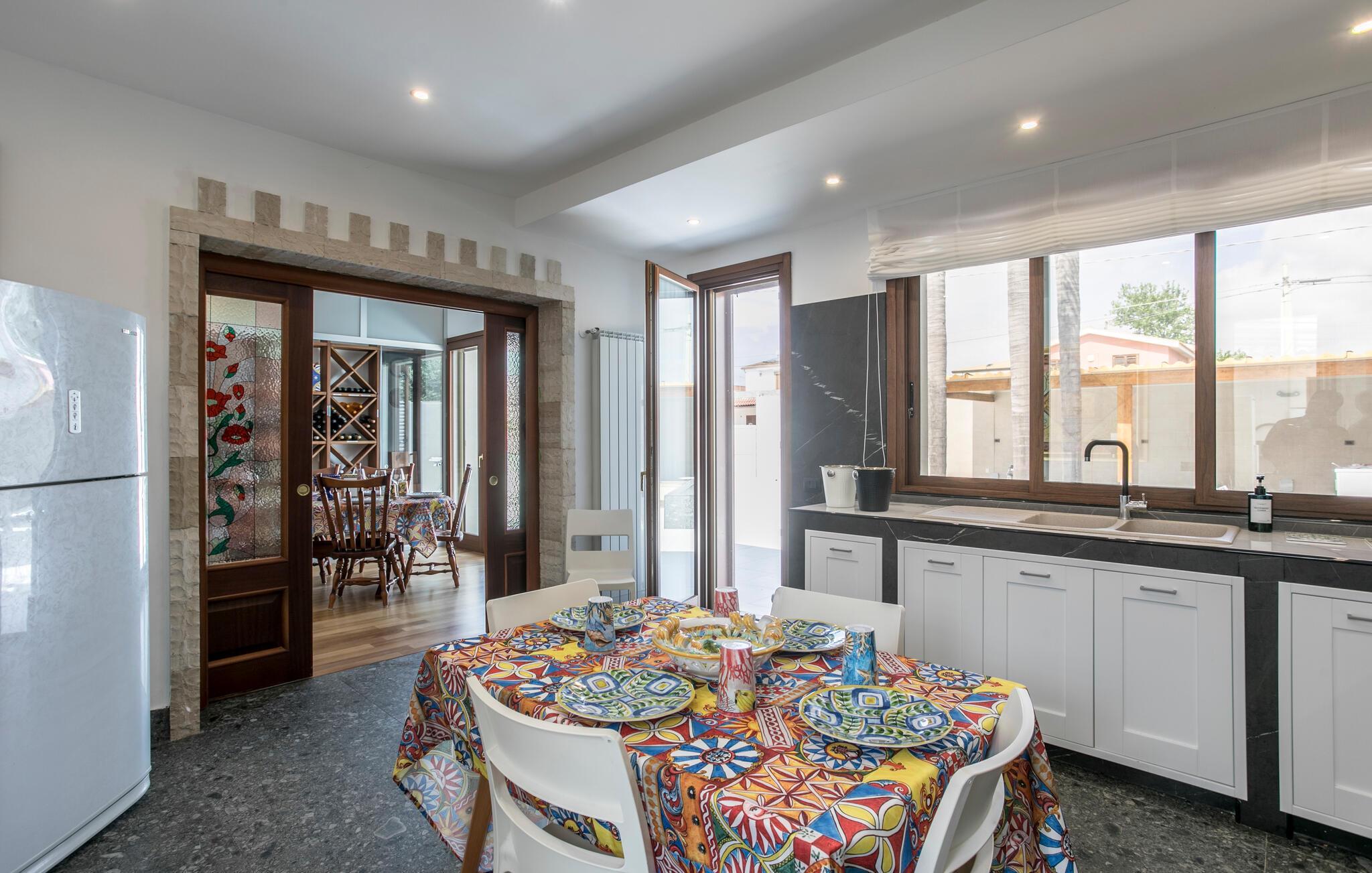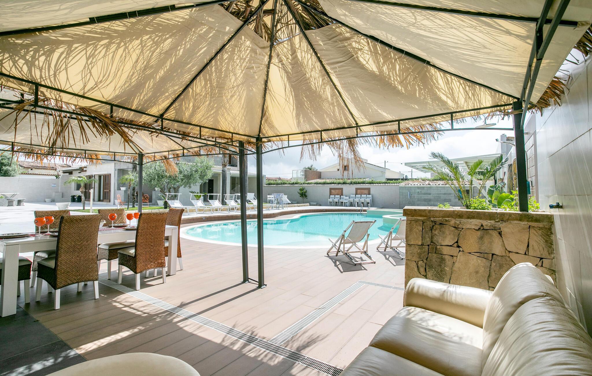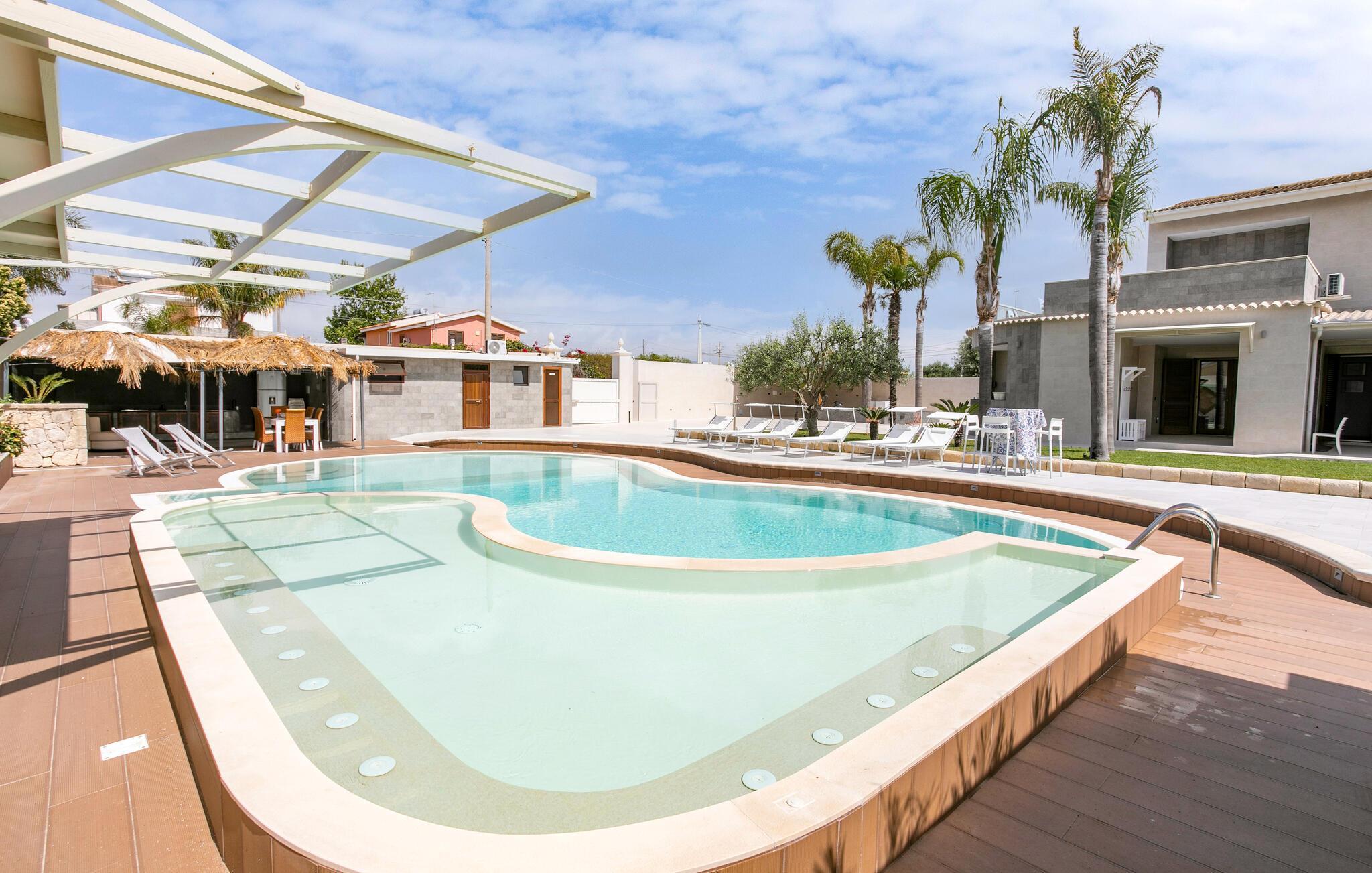 Njut av en underbar semester i detta stora semesterhus med privat utomhuspool i Punta Milocca i Plemmirio Marine Park söder om Syrakusa.