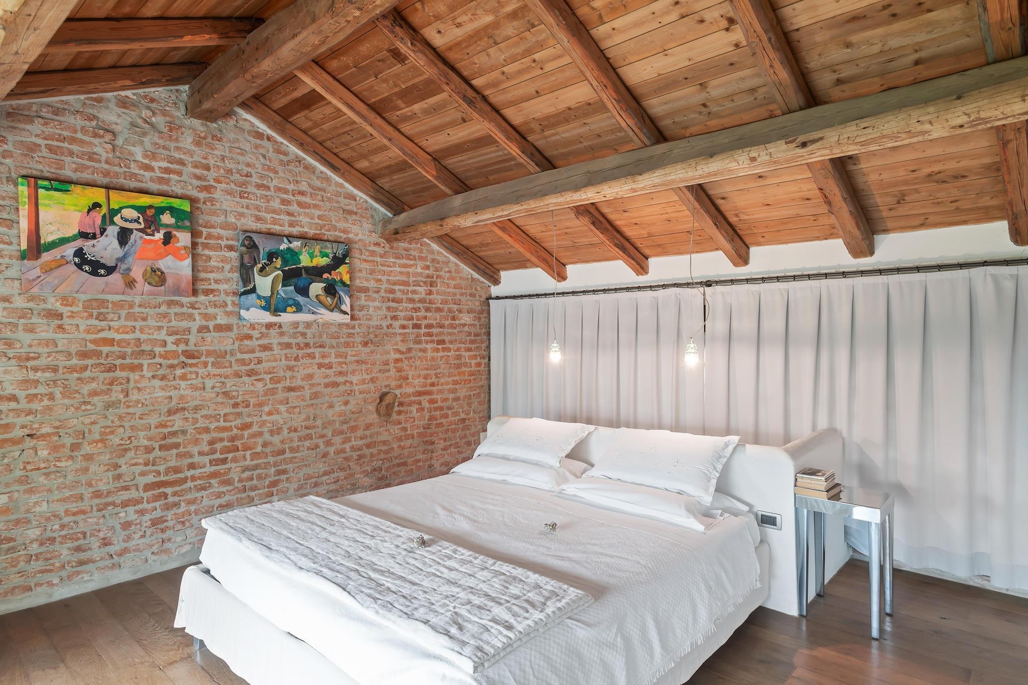 Historisk elegans på landsbygden Undangömd på de lugna slätterna i Stagno Lombardo, är denna vackert restaurerade herrgårdslägenhet en del av en klostergård från 1300-talet, en gång ett vagnshus, nu rikt på charm och karaktär. Hemmet är omgivet av 130 hektar ängar och skogar och erbjuder en förtrollande blandning av antika fresker, familjemöbler, välvda tak och majestätiska eldstäder. En privat trädgård tillåter lugna morgnar eller middagar i solnedgången, och för extra överseende kan kontinental frukost eller hemlagade middagar av värden ordnas på begäran. Kultur och natur utanför dörren Bara 13 km bort ligger Cremona - Stradivarius födelseplats och en skatt för älskare av klassisk musik. Du kan utforska violinmuseet, Torrazzo-tornet eller njuta av flodpromenader längs Po, bara 1 km från hemmet. Konst- och operafantaster bör inte missa ett besök i Busseto (35 km), Giuseppe Verdis hemstad. Området är perfekt för promenader med husdjur, cykling längs landsvägar eller enkla skogsutforskningar med din lurviga följeslagare. Regionens smaker Från gårdens bekvämlighet kan du njuta av färska gårdsmåltider som tillagas av din värd, med lokala råvaror och regionala smaker. Närliggande Cremona erbjuder läckra alternativ som "Trattoria del Tempo Perso" för traditionell italiensk mat, eller "Osteria del Melograno" för raffinerade lokala tallrikar. Ostälskare kan prova den berömda Grana Padano direkt från lokala mejerier. Oavsett om du äter ute eller inne är upplevelsen verkligen italiensk.