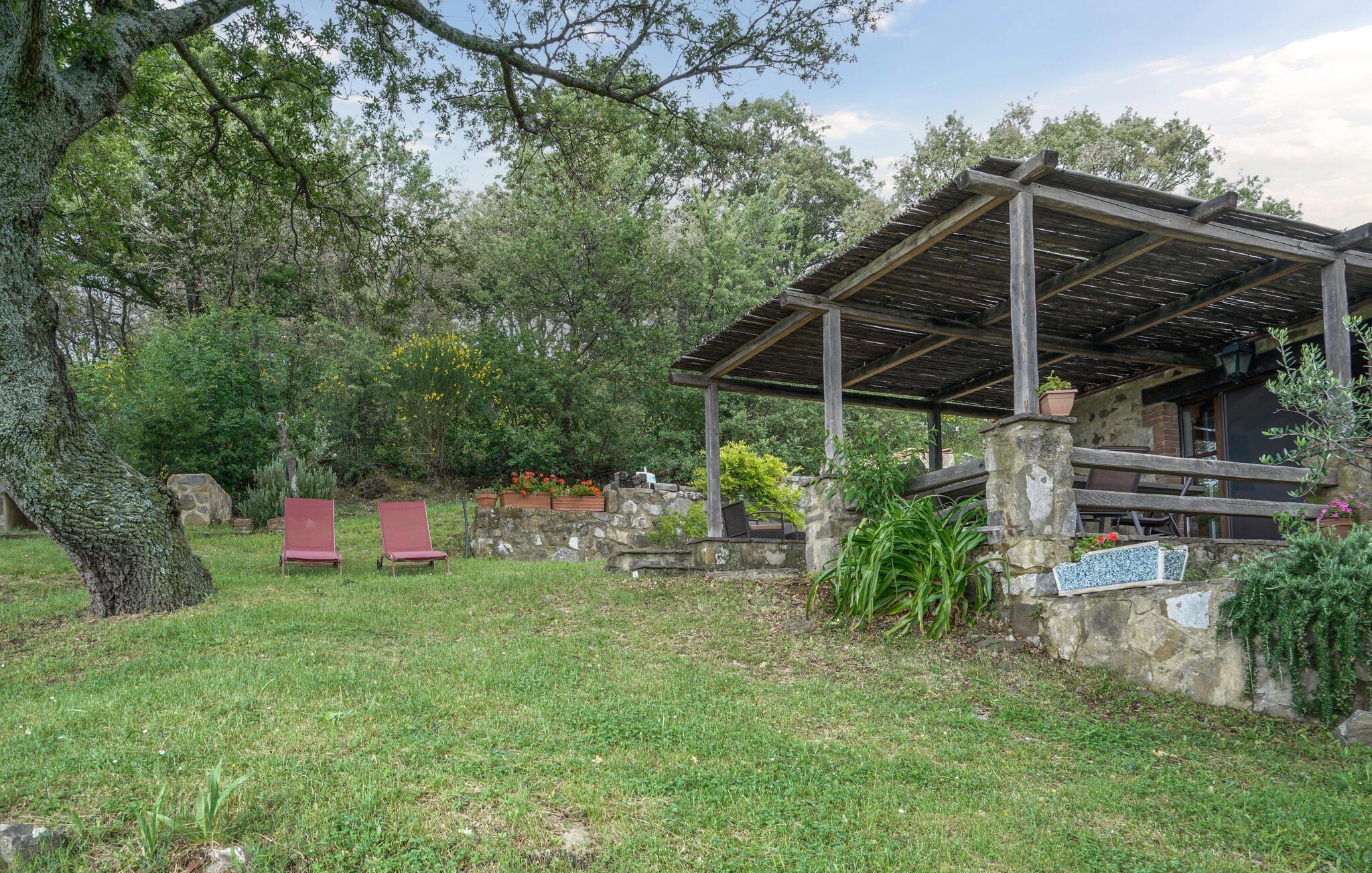Det idylliska läget mitt i den toskanska landsbygden erbjuder ren lugn och avkoppling. Stenhuset är kärleksfullt inrett och har en mysig men elegant atmosfär. Den rymliga interiören är ljus och inbjudande, perfekt för avkopplande timmar med familj och vänner. Njut av de höga, synliga trätaken och bjälkarna samt charmen med stenvalven.