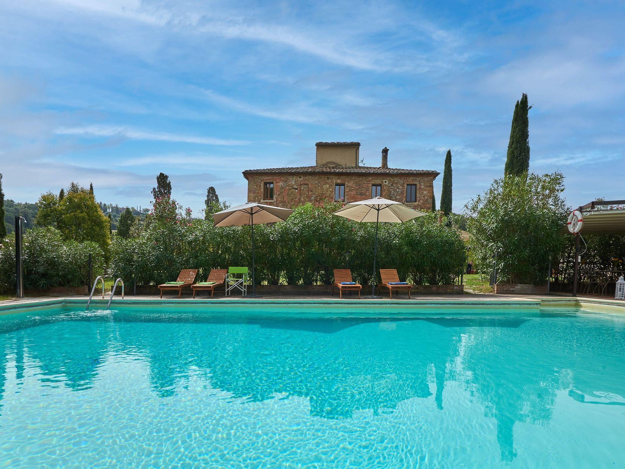 The large infinity pool, open from May to October, has a panoramic view of the village and the countryside.