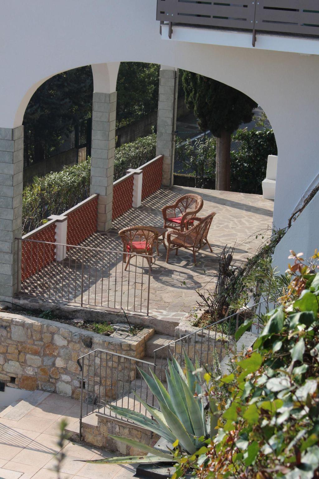 Access to the property is via a gate at street level, from which there is also access to a large two-car garage. A first flight of stairs leads up to the garden level, where there is a large covered terrace with a splendid lake view and a wonderful private swimming pool. Next to the pool is a service bathroom with shower. The pool is also equipped with an electric cover, which is very useful for keeping the water warm in the evenings and during the low season.