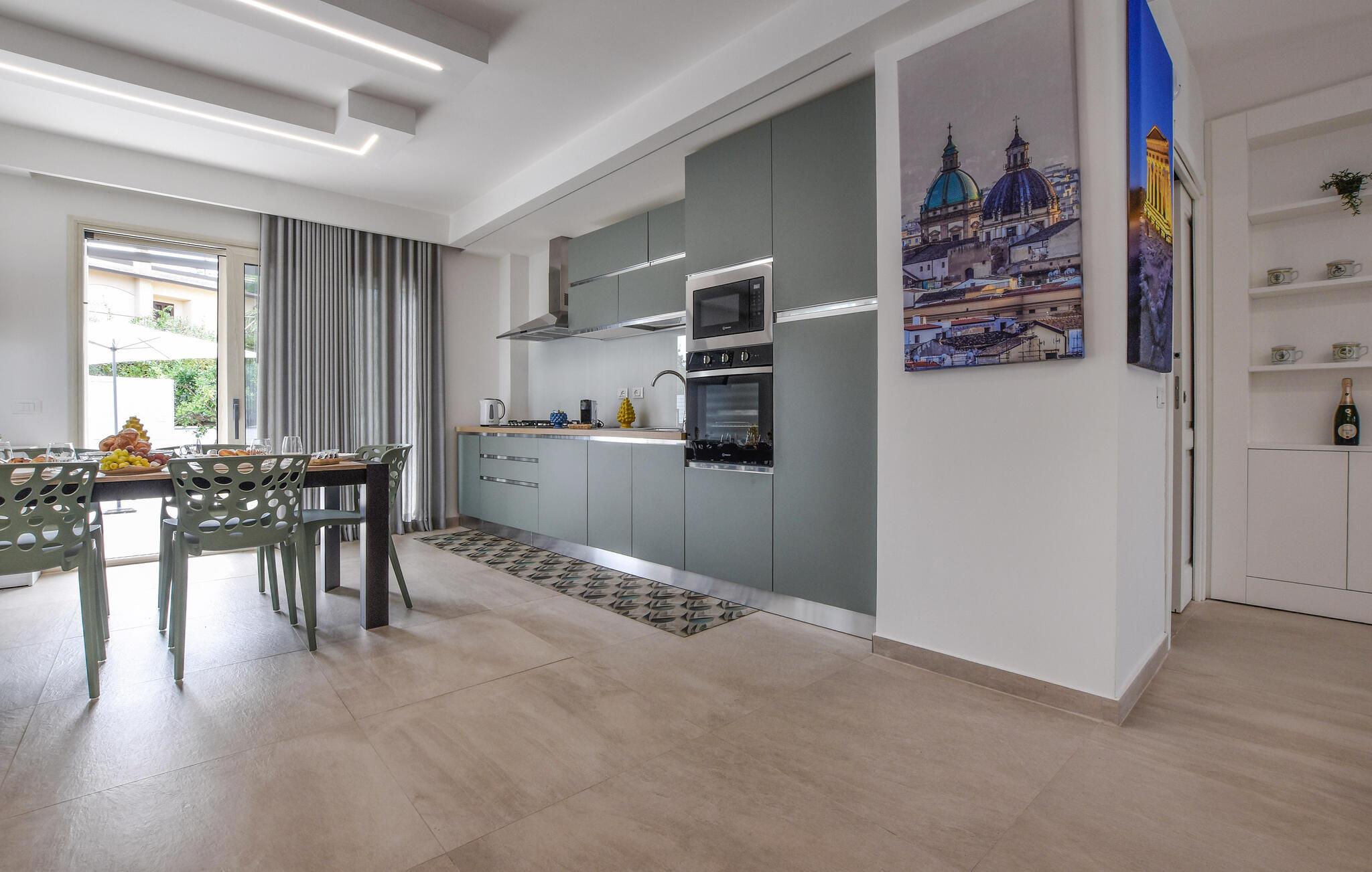 Njut av den hisnande utsikten över havet vid Trabia från balkongen. Ta ett dopp i poolen med utsikt och njut av frukosten på terrassen. Ladda batterierna på bekväma solstolar eller i den trevliga utomhuswhirlpoolen och trolla fram läckra sidorätter i sommarköket för mysiga grillkvällar, medan de unga gästerna njuter av rutschkanan och lekstugan.
