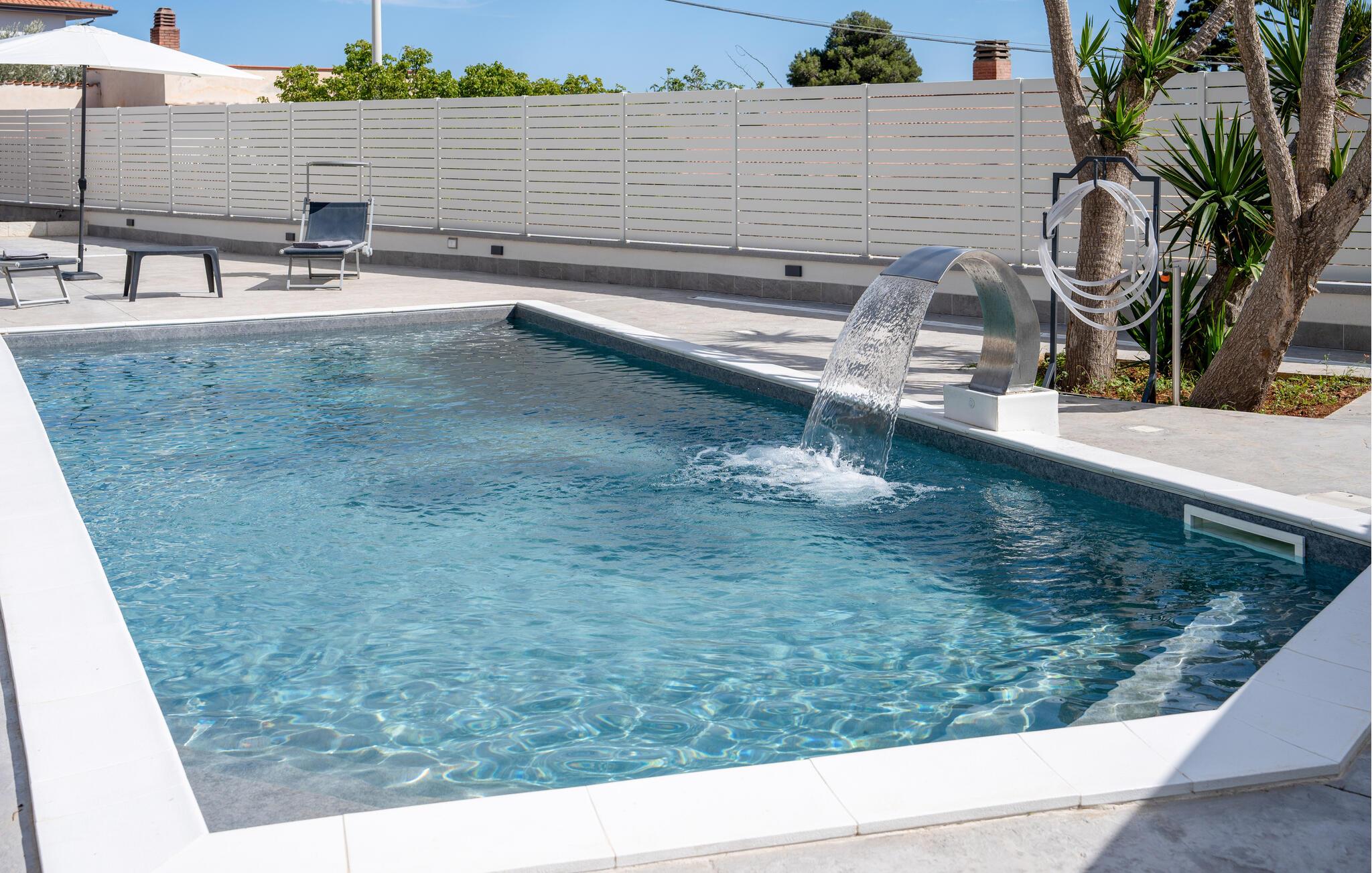 Tillbringa en bekväm semester i detta moderna semesterhus med pool och havsutsikt.