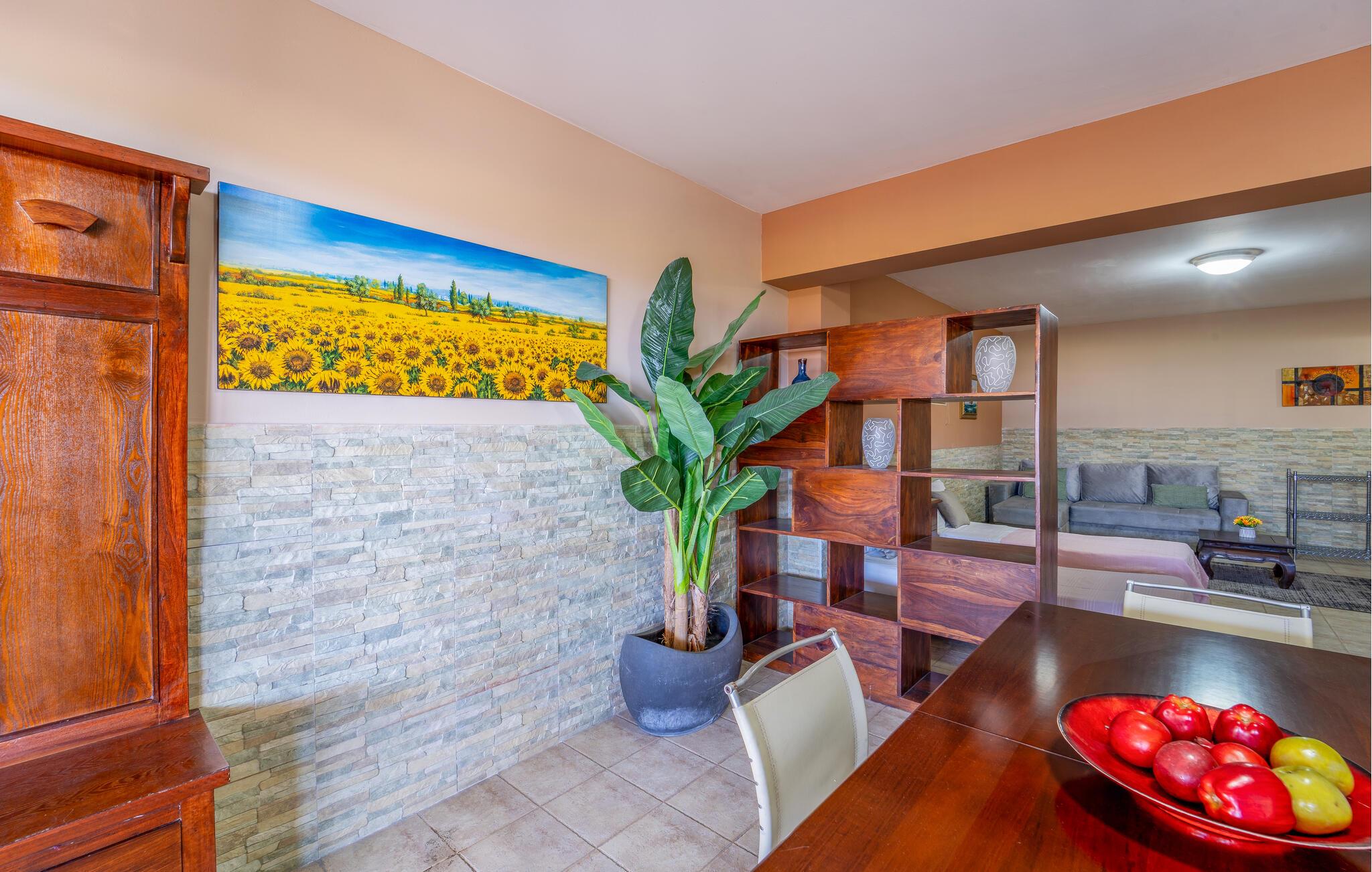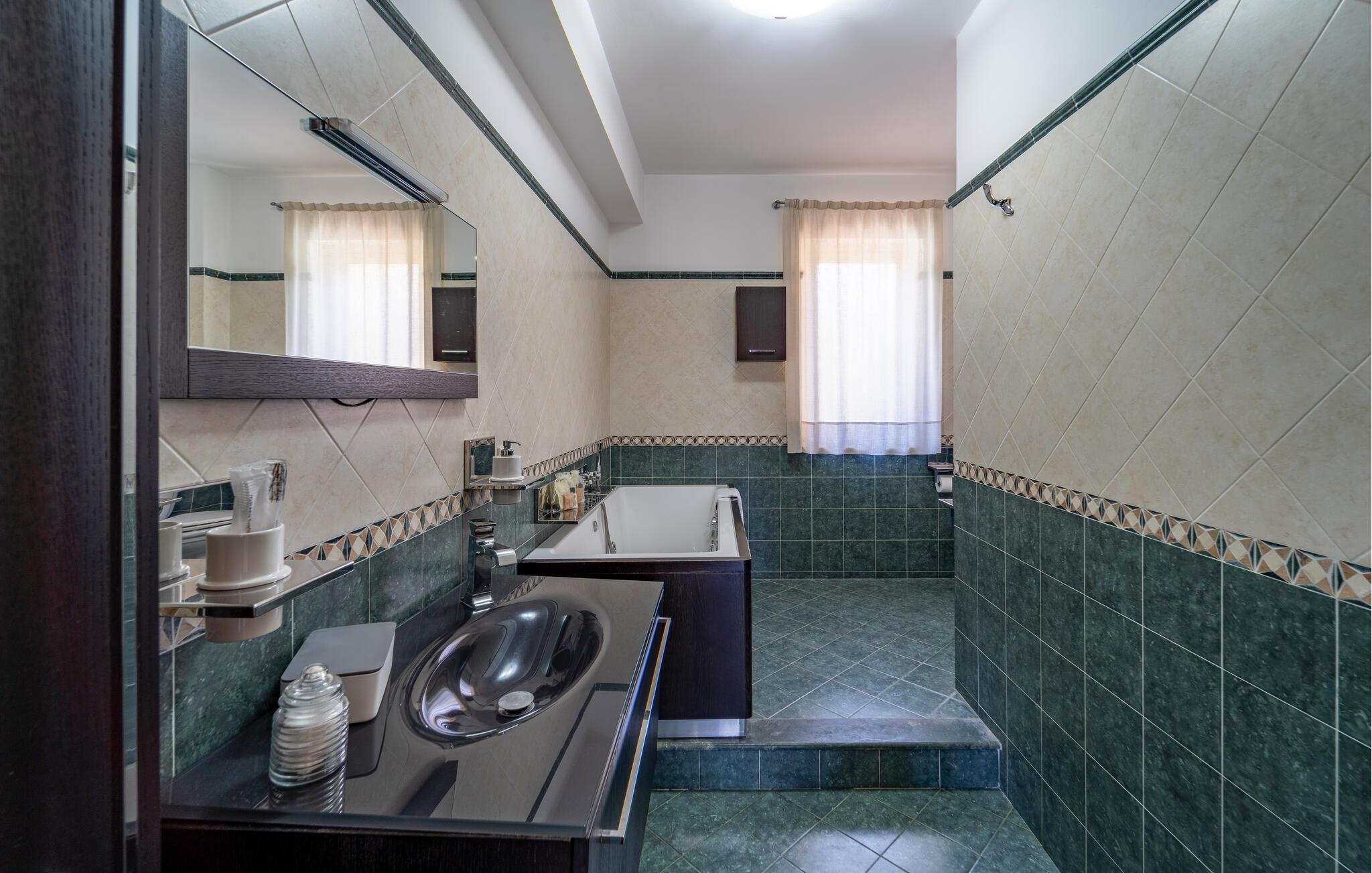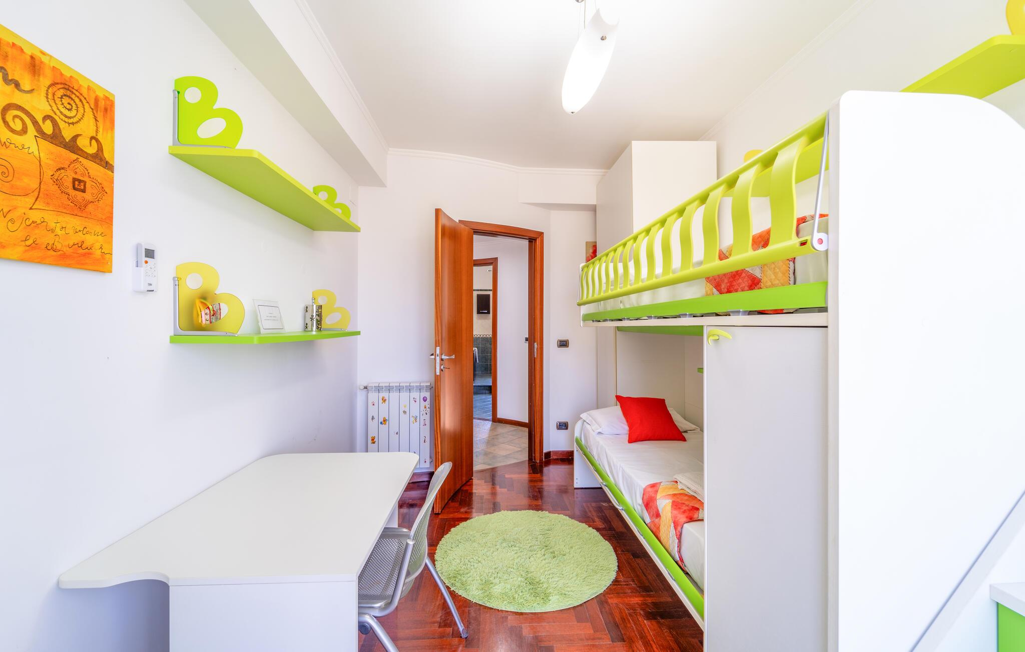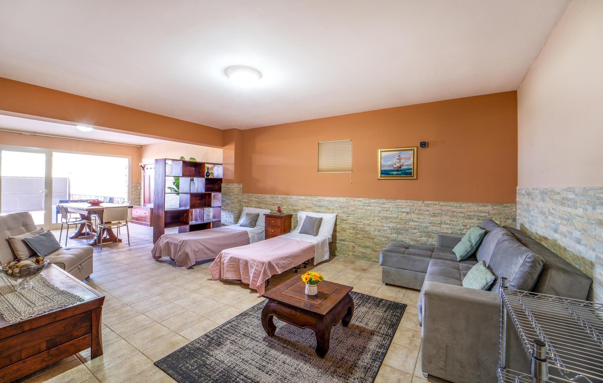 Detta rymliga semesterhus inbjuder dig att njuta av en oförglömlig semester på ett fantastiskt läge. Använd det fullt utrustade köket för att trolla fram regionala specialiteter och njut av måltiderna vid det eleganta matbordet. Koppla av i de bekväma sofforna eller njut av en god bok i ett lugnt hörn av huset - varje ögonblick här känns som ren lyx.