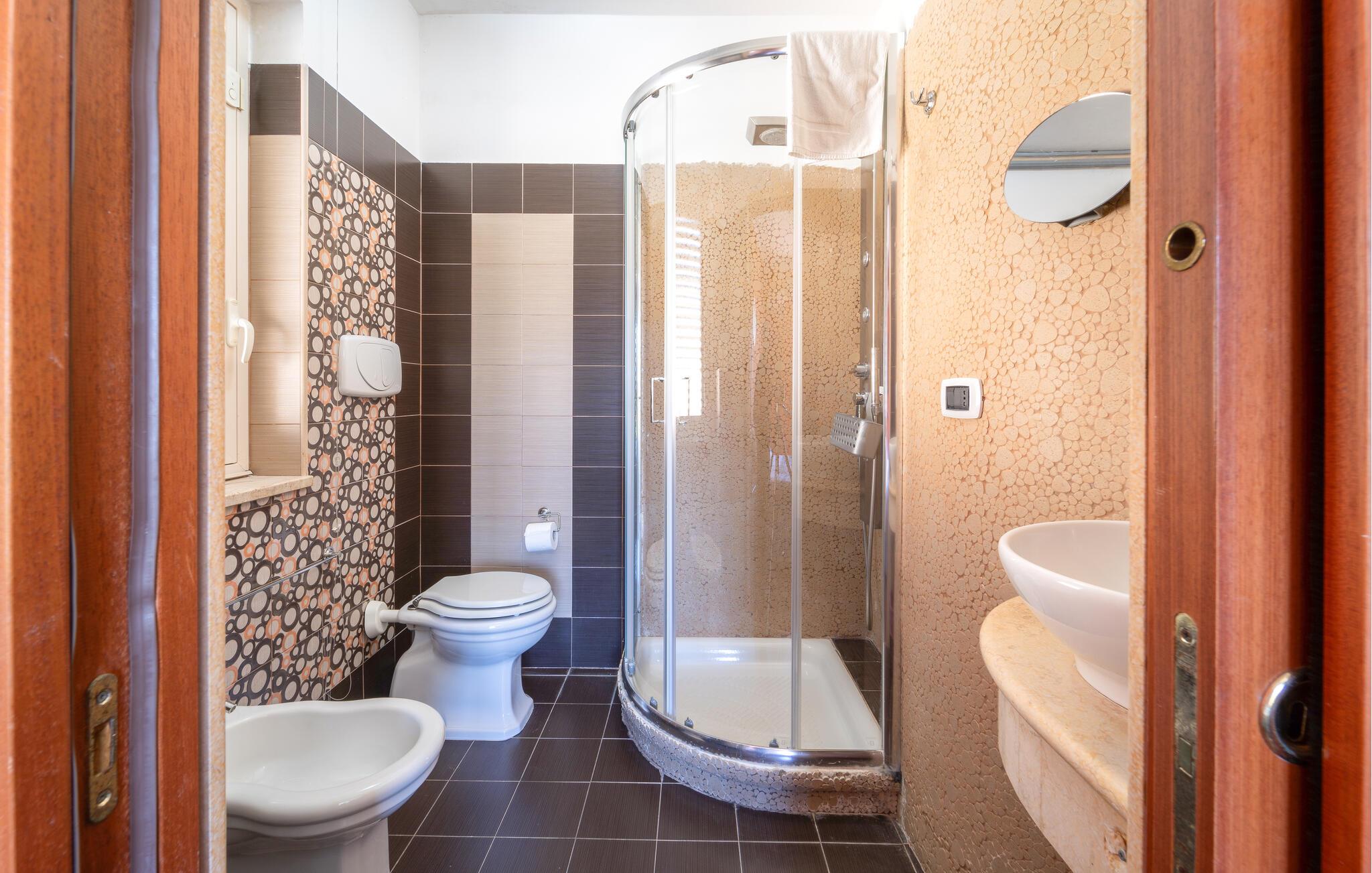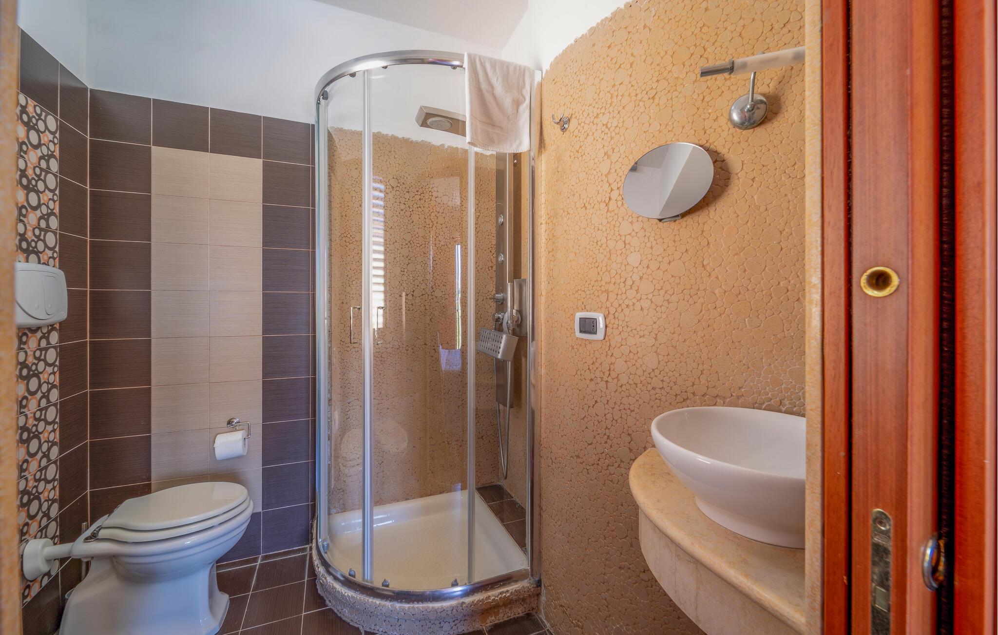 - WC med varmt och kallt vatten, Dusch och badkar