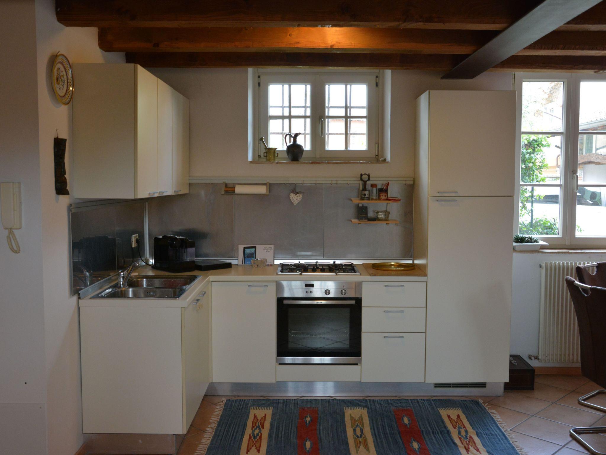 The holiday flat is located in the extreme north-eastern part of the municipality of Udine in the countryside - yet it is only 3 km from the Udine Nord motorway exit and only 7 km from Udine city centre. The flat is located on the ground floor in a small, former monastery from the 14th century, which was restored by the (South Tyrolean) owner family with much love and respect for the architectural history of Friuli. The building is surrounded by over 2 hectares of land, 3000 m² of which are gardens and meadows within the old crenellated wall. The holiday flat has a small, secluded garden with garden furniture, from which you can easily access the rest of the property with pool, sunbathing area and shower. There are 2 king poodles on the property, horses, geese and cats outside the garden and the neighbour also has peacocks, geese, ducks, chickens and a pony. So if you want to escape the smog, action and traffic noise of the big city and are looking for clean air in a natural environment, and want to decide for yourself when and if you want to have an aperitif in the lively and beautiful Piazza San Giacomo in the centre of Udine, you will feel at home here.