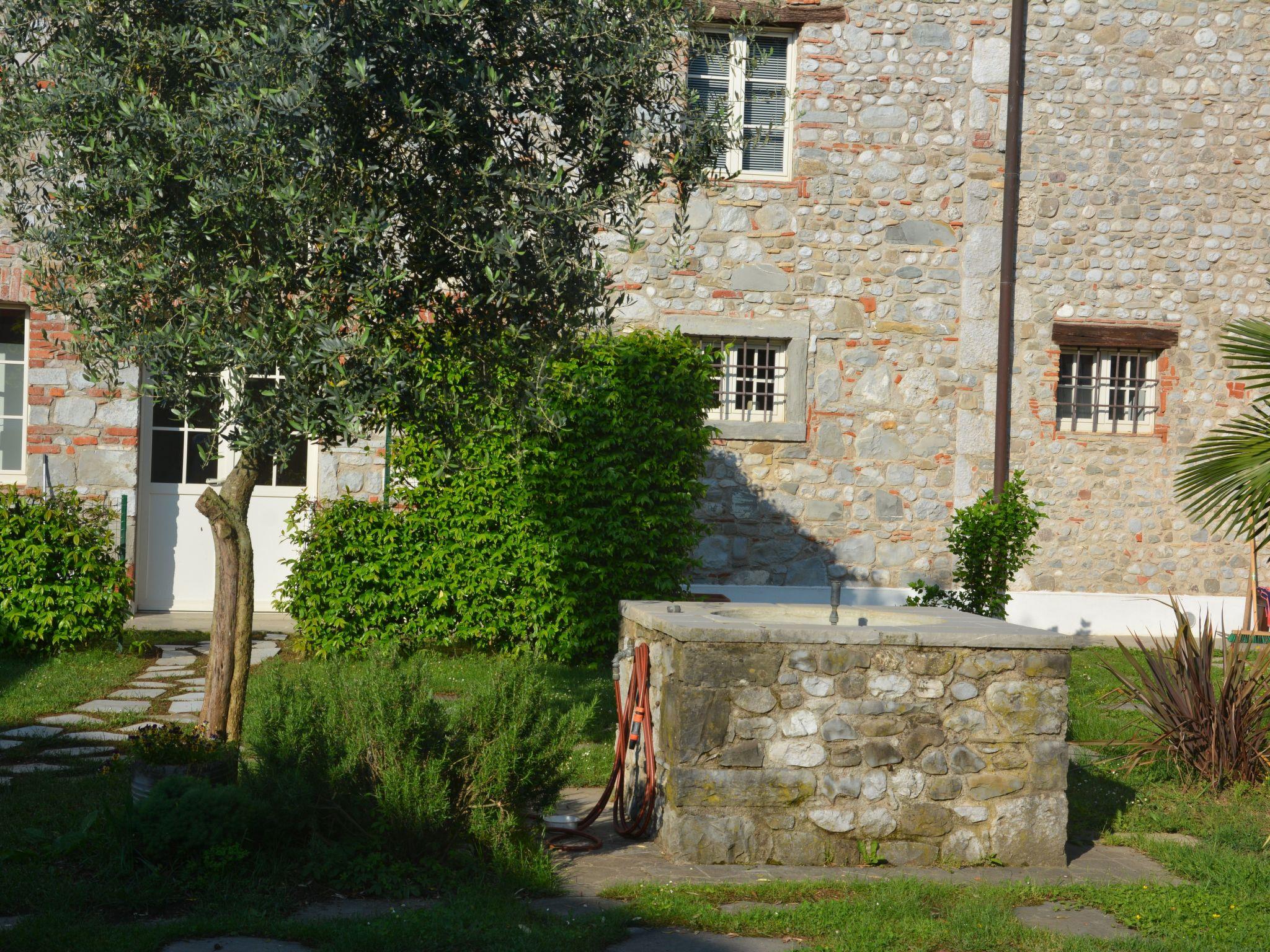 The outdoor area consists of a plot of almost 28,000 m², including a garden of around 3000 m² within the crenellated wall. There you will also find the pool for communal use and next to it 2 terraces with garden furniture and sun loungers, which you can place on the large sunbathing lawn if you wish. Your flat has a small, private and somewhat secluded garden with a dining table and garden chairs. Free and covered parking is also available in the inner courtyard, the property is fenced and therefore also ideal for children and dogs.