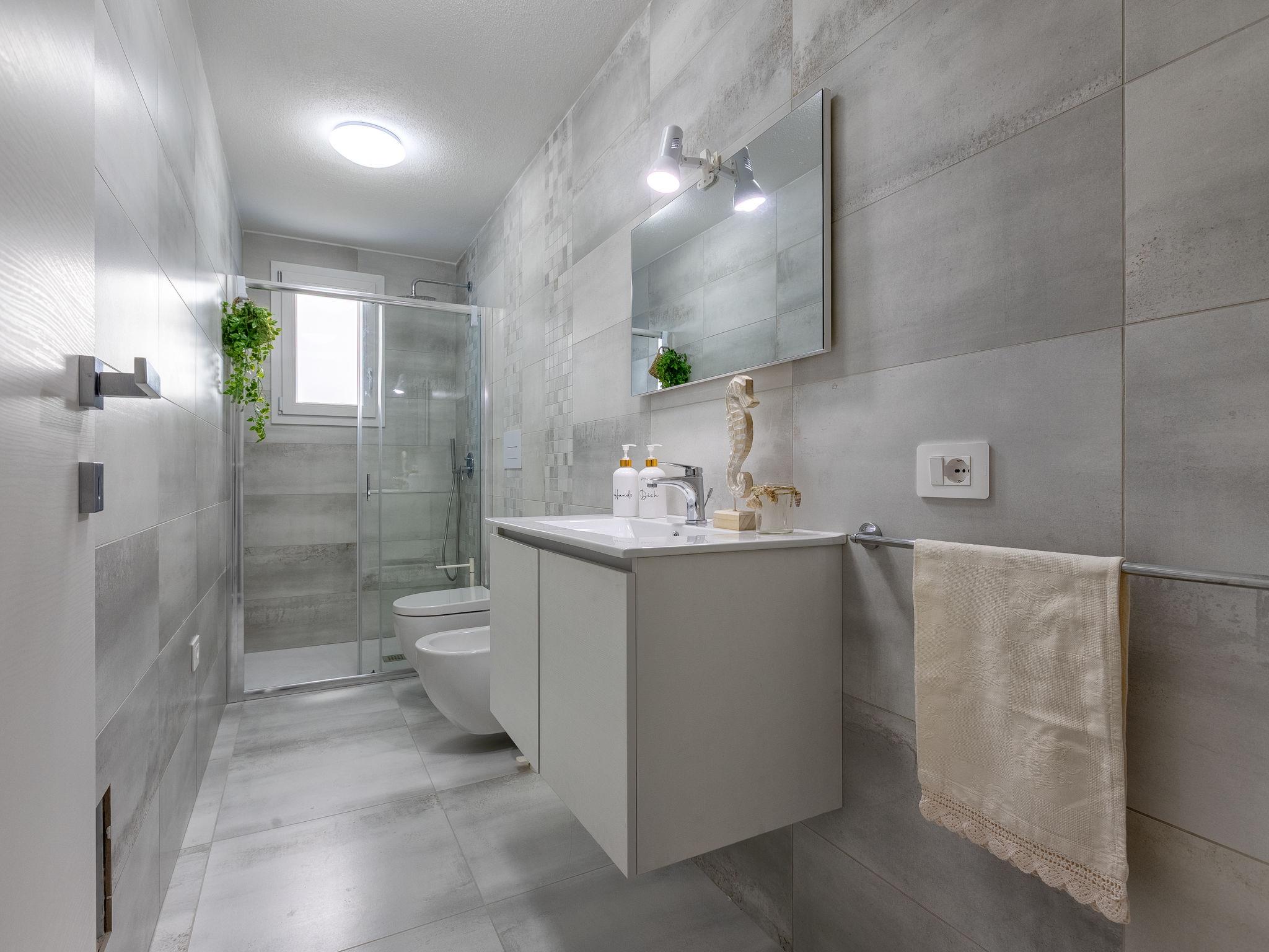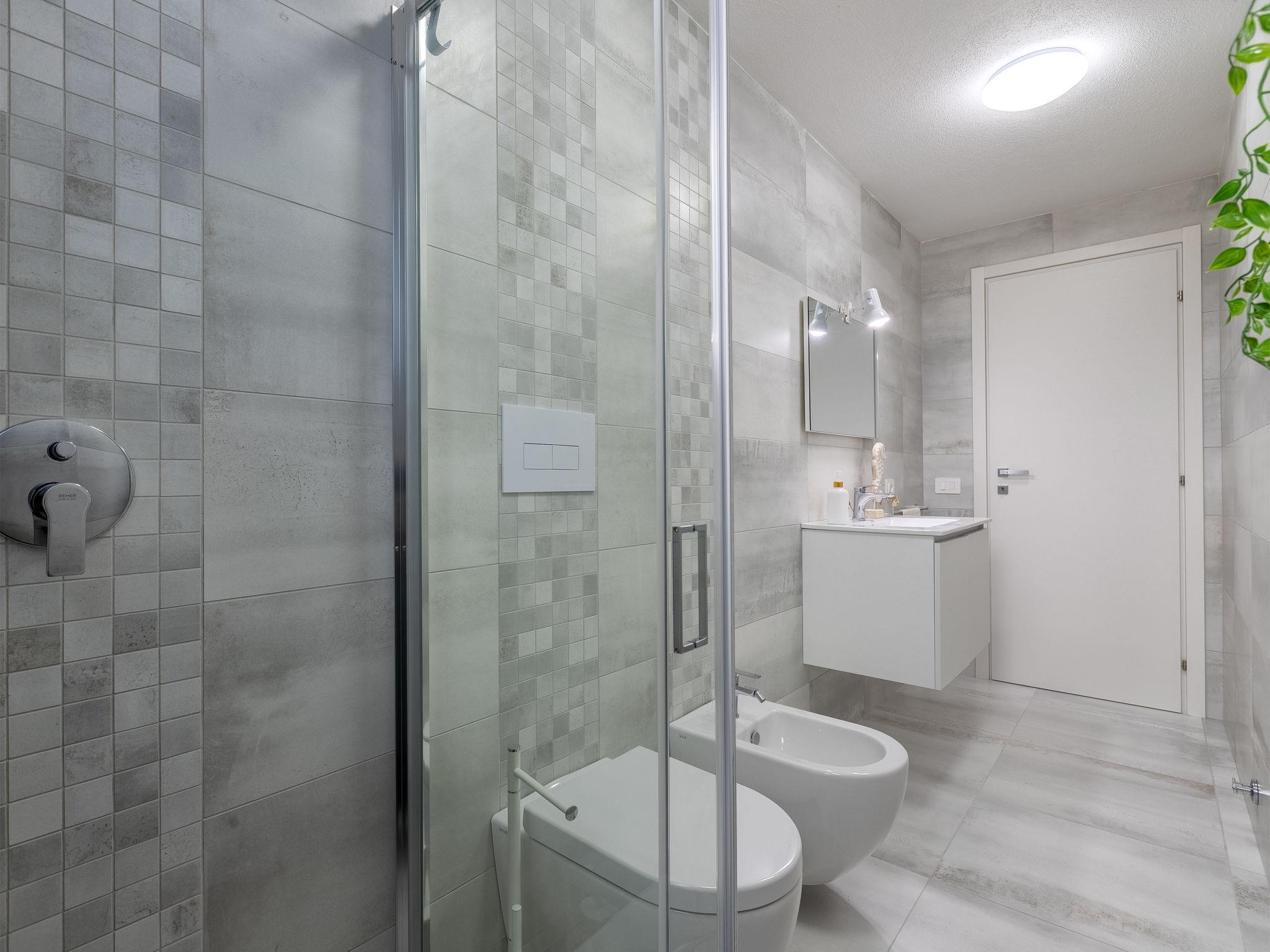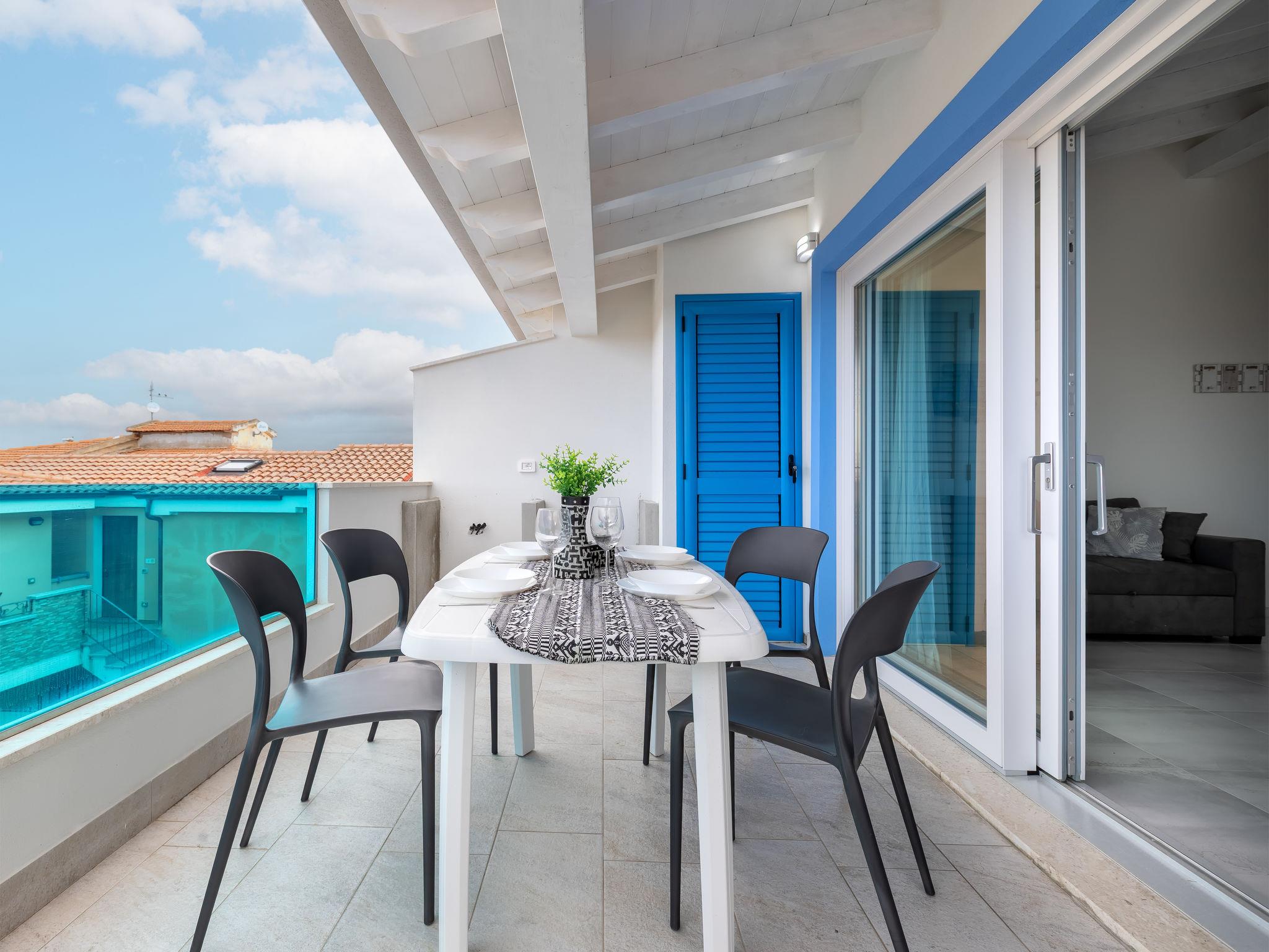 "Cristallo di mare", 3-room penthouse 64 m2 on 1st floor. Bright, modern and cosy furnishings: living/dining room with satellite TV. Exit to the terrace. 2 rooms, each room with 1 double bed and satellite TV. Kitchenette (oven, dishwasher, 4 induction hot plates, toaster, kettle, microwave). Shower/bidet/WC. Air-conditioning, forced-air heating. Partly. Terrace furniture, sitting area. Very beautiful view of the sea and the swimming pool. Facilities: iron, mosquito net, hair dryer. Internet (WiFi, free). Parking (1 car) at the house. Maximum 1 small pet/ dog allowed. IT090079C2000U1841