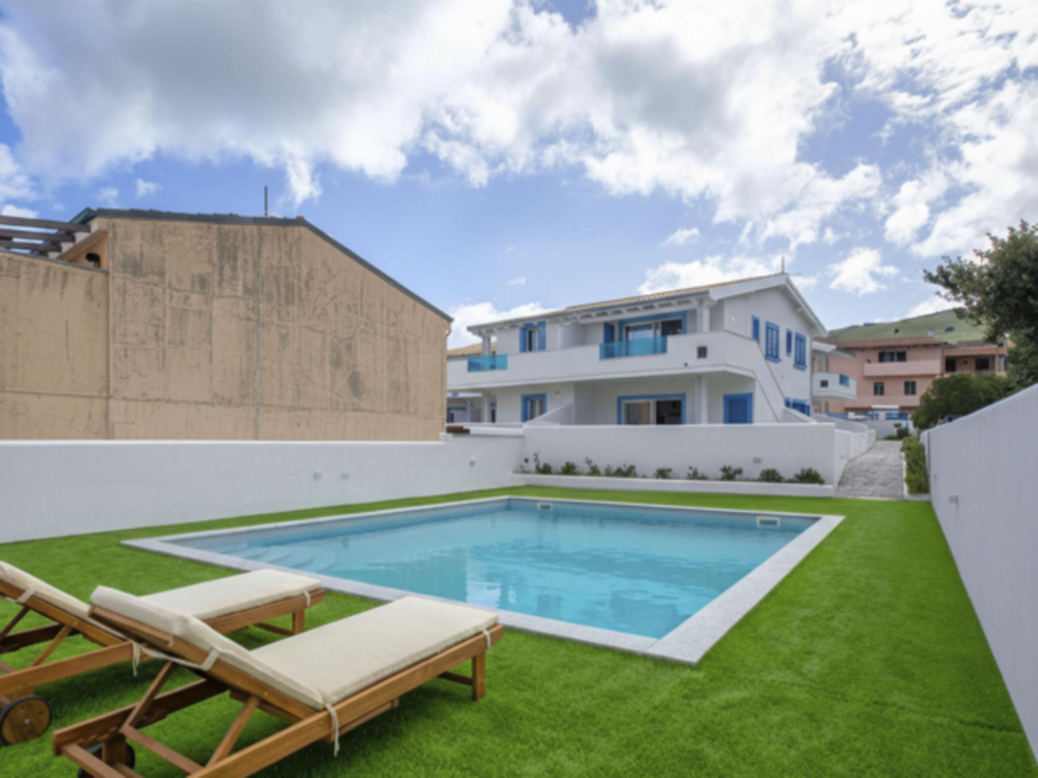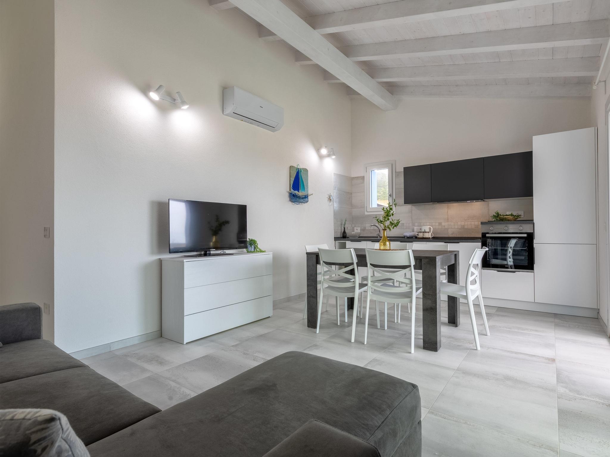 Modern residence "Azzurro", semi-detached, built in 2025. In the resort La Ciaccia, 3 km from the centre of Valledoria, in a sunny position, 250 m from the sea, 250 m from the beach. For shared use: swimming pool (8 x 10 m, depth 120 cm, seasonal availability: 15.Jun. - 15.Sep.). Outdoor shower, parking at the house, public parking. Grocery 200 m, supermarket 2 km, restaurant, bar 100 m, bus stop 3 km, sandy beach "Spiaggia la Ciaccia" 600 m pebble beach 150 m. Surf school 500 m, tennis 400 m. Nearby attractions: Castelsardo 13 km, Alghero 81 km, Costa paradiso 32 km, Olbia 89 km, Porto Cervo 86 km, Porto Rotondo 92 km. Please note: car recommended.