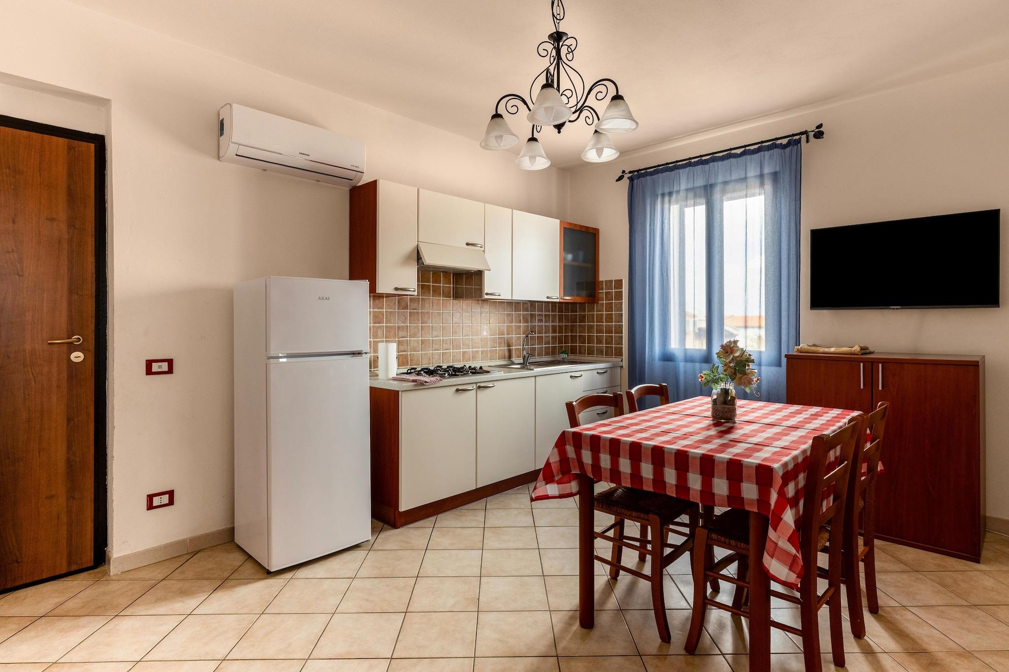 Vakna upp till havets doft och vågornas mjuka sorl – denna välkomnande sardiska lägenhet är den typ av plats där semesterminnen dröjer sig kvar långt efter att du har lämnat. Perfekt beläget bara 150 meter från stranden, erbjuder den en enkel blandning av komfort och kustnära charm. Inom residensen hittar du två uppfriskande pooler, gemensamma trädgårdar med grillmöjligheter, Wi-Fi i gemensamma utrymmen och privat parkering, vilket gör den idealisk för en avslappnad och bekymmersfri vistelse. Inuti utstrålar lägenheten en varm och hemtrevlig atmosfär, designad för upp till fyra gäster. Den har ett ljust vardagsrum med en bekväm bäddsoffa för två personer, ett välutrustat kök, ett mysigt sovrum med dubbelsäng och ett annat med två enkelsängar – perfekt för familjer eller vänner som reser tillsammans. Luftkonditioneringen håller utrymmet behagligt, medan moderna bekvämligheter som kyl-frys och gasspis gör vardagen enkel. Belägen på första våningen erbjuder den en fridfull tillflyktsort för att varva ner efter soliga dagar vid havet. Grannskapet fångar essensen av Sardinien – lugnt, vänligt och fullt av liv. Inom 50 meter hittar du en bar, restaurang och marknad för vardagliga behov, medan den närliggande byn La Ciaccia ansluter till Valledoria via en naturskön stig, perfekt för promenader eller cykelturer. Tillbringa dina dagar på gyllene stränder, prova vattensporter vid San Pietro a Mare, eller utforska charmiga kustbyar som Castelsardo och Badesi. Med natur, kultur och havet precis utanför dörren lovar denna lägenhet den perfekta balansen mellan lugn och äventyr.
