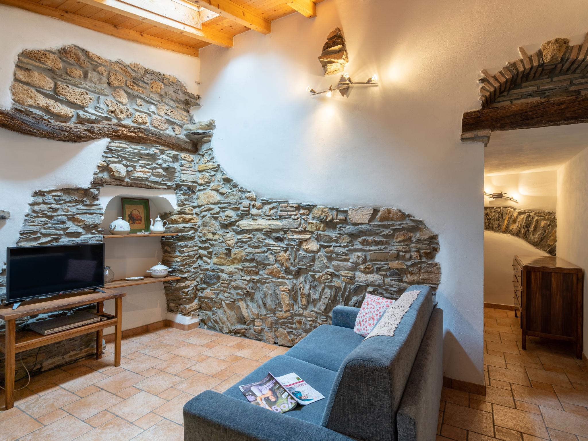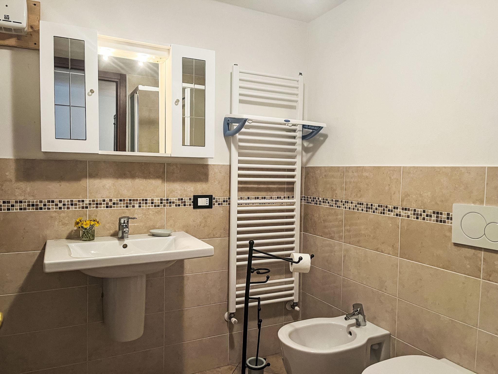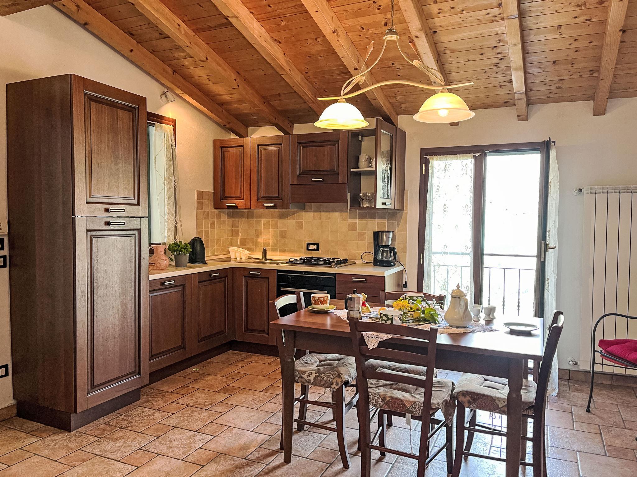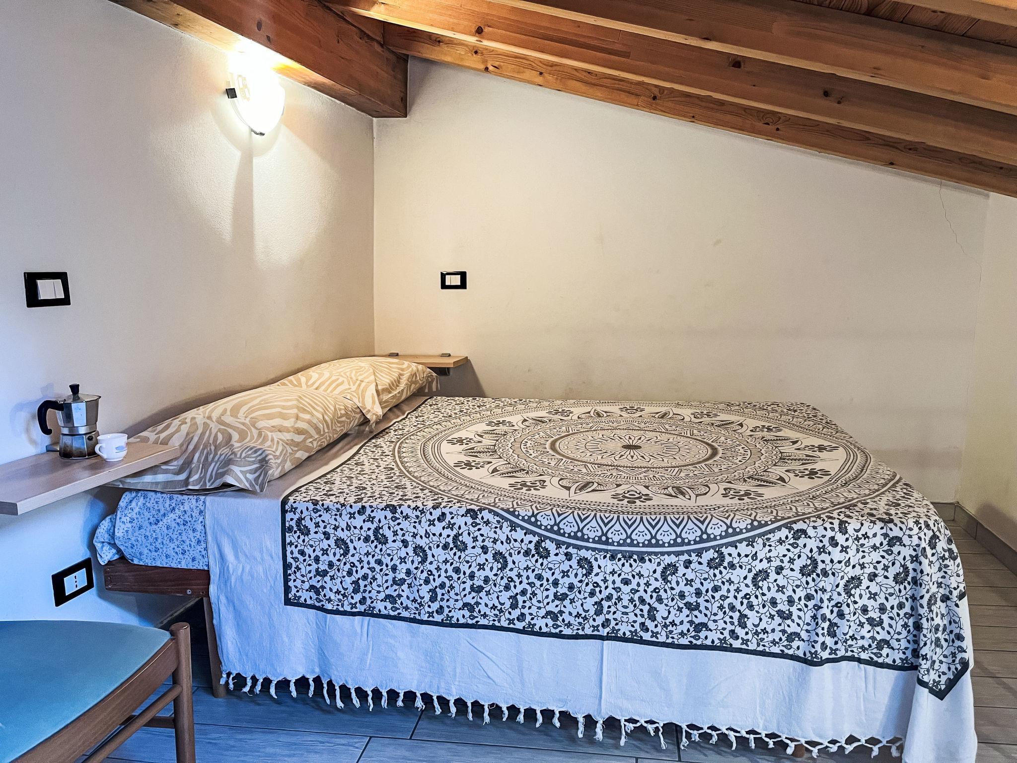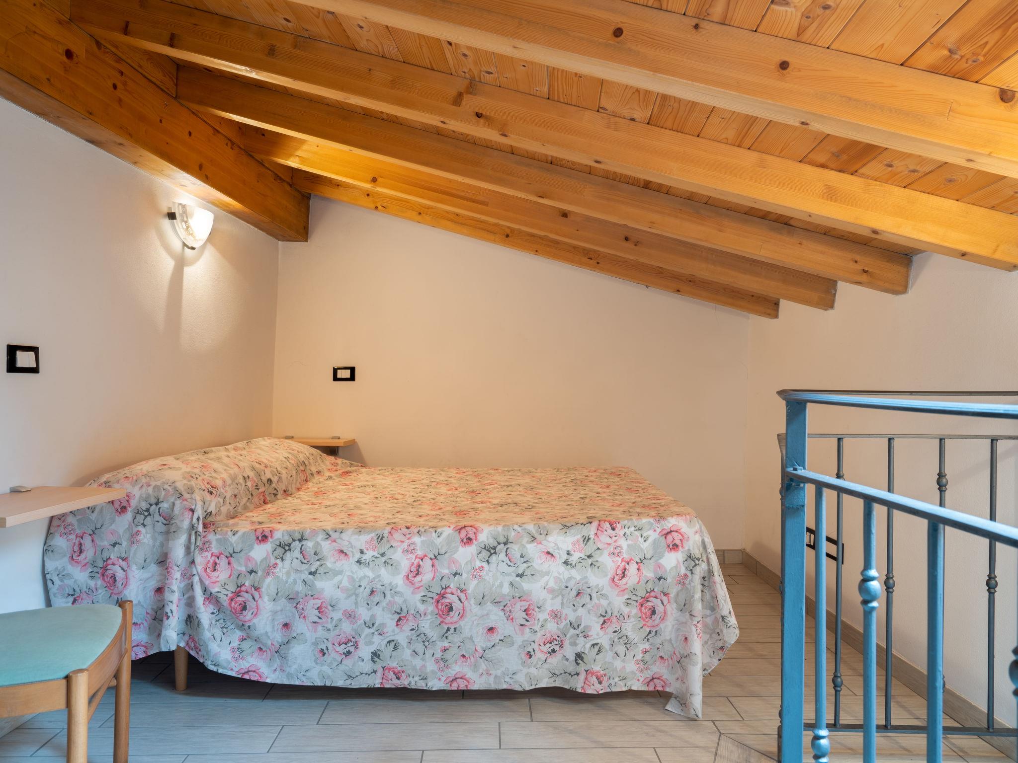 "Ca' da Prima Porta (VLO131)", 2-room house 45 m2 on 2 levels. Stylish and cosy furnishings: upper floor: (exterior staircase) living/sleeping room with 1 double sofabed (160 cm), dining table and satellite TV. Exit to the terrace. Open kitchen (oven, 4 gas rings, toaster, kettle, freezer, electric coffee machine) with dining table. Shower/WC. Heating available only from 05.10. to 02.05. Top floor: 1 open room with sloping ceilings, ceiling height 140 - 200 cm with rooflight with 1 french bed (160 cm). Gas heating. Small terrace roofed. Terrace furniture. Side view of the resort. Facilities: washing machine, baby cot for up to 2 year olds. Internet (WiFi, free). Please note: maximum 2 pets/ dogs allowed. Private entrance, smoke alarm, fire extinguisher. IT008047B588IMG3Z6