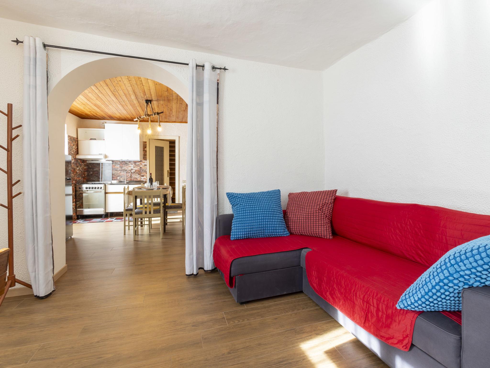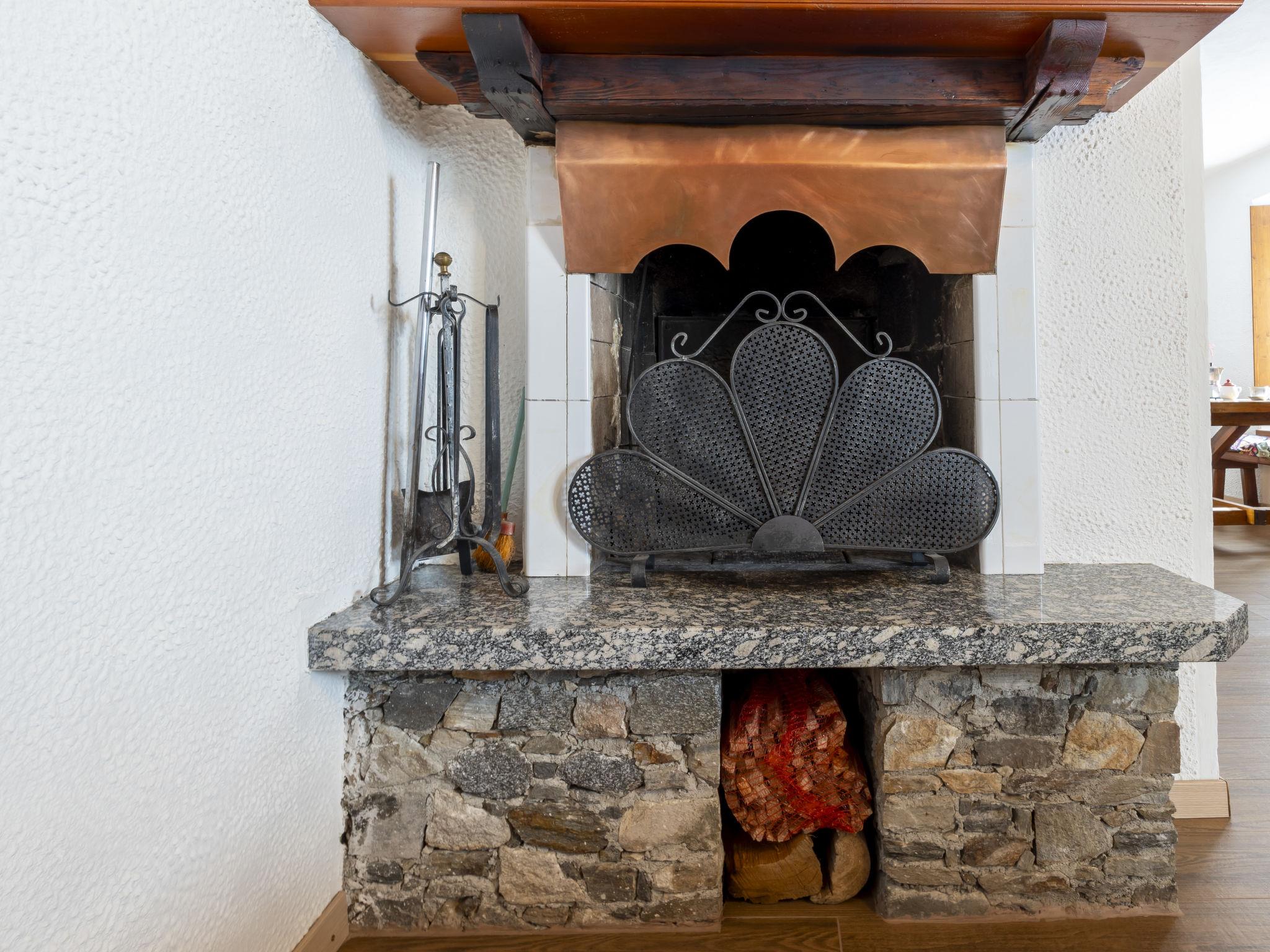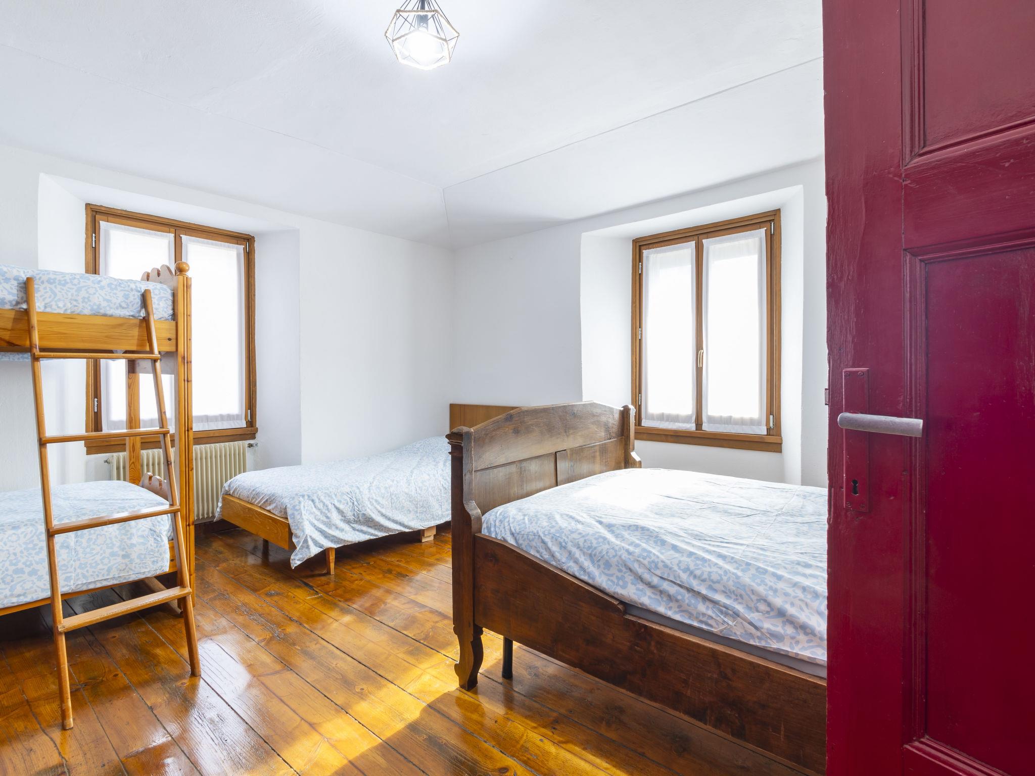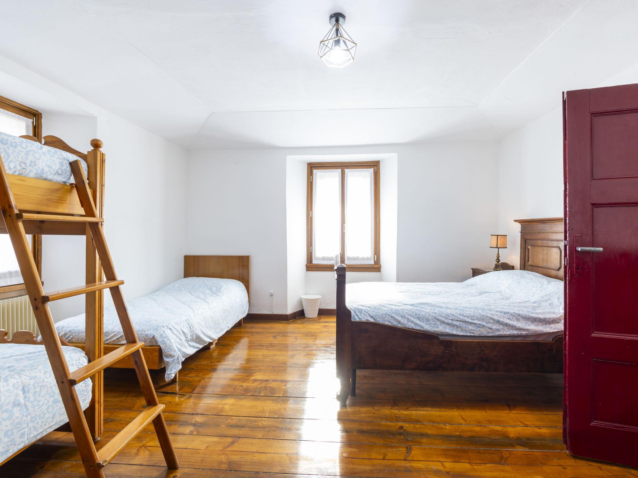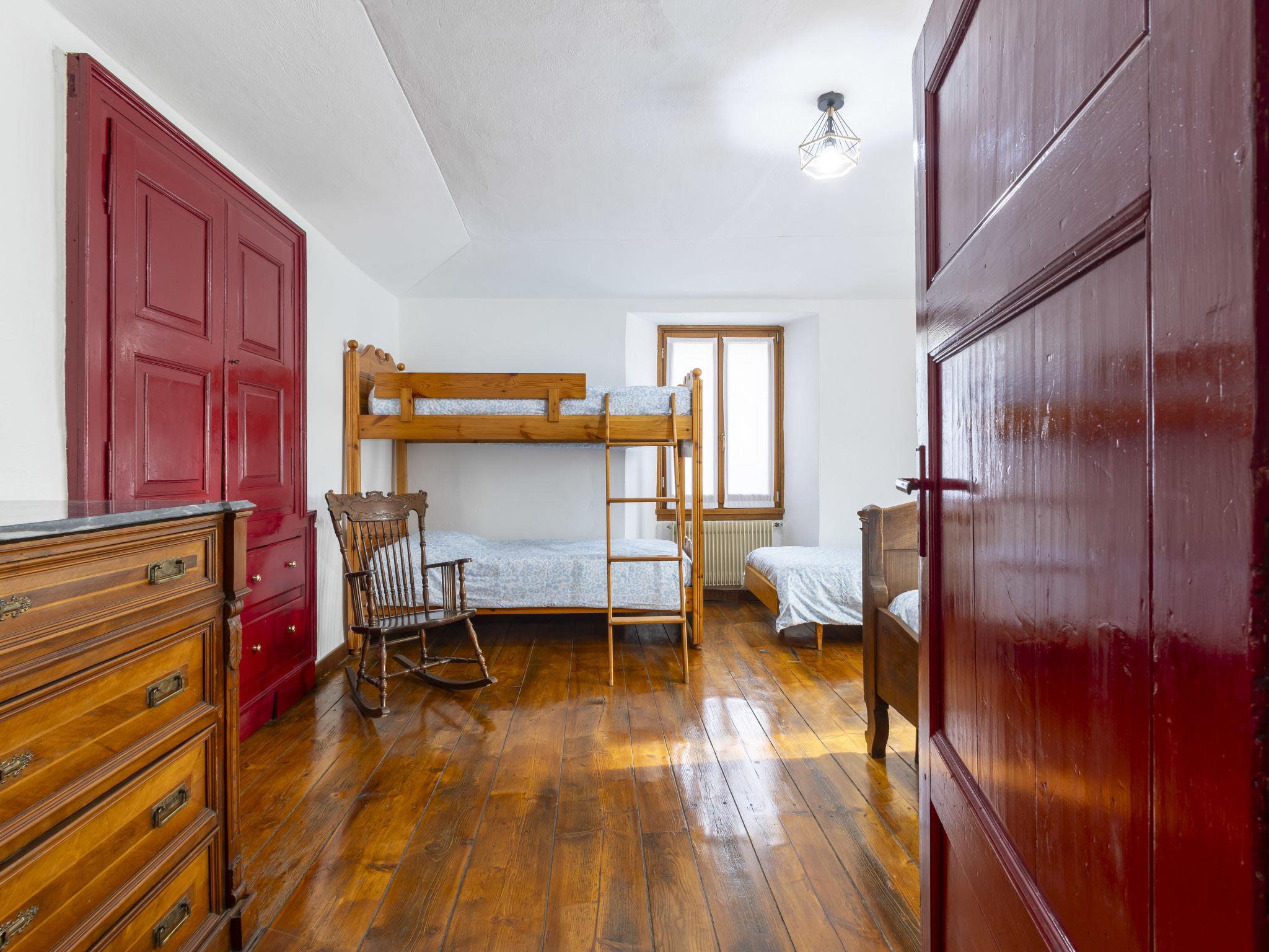 4-room house 95 m2 on 2 levels, on the upper ground floor. Spacious, practical and comfortable furnishings: open living/dining room with dining table, TV and air conditioning. Open living/dining room with open-hearth fireplace, dining table and air conditioning. Exit to the patio. Small kitchenette (oven, 4 gas rings, toaster, kettle, electric coffee machine, Capsules for coffee machine (Nespresso) free). Shower/bidet/WC. Upper floor: (steep stair) walk-through room with 1 bed and 1 double bed. 1 large room with 1 bed and 1 x 2 bunk beds, 1 french bed (120 cm, length 190 cm). Sep. WC. Heating. Parquet floors. Small patio. Barbecue. Partial view of the mountains. Facilities: washing machine, children's high chair, baby cot (extra), hair dryer, logs (free). Internet (WiFi, free). Please note: suitable for families. Non-smoking house. Maximum 1 pet/ dog allowed. IT014078C2XJJ6HP7J