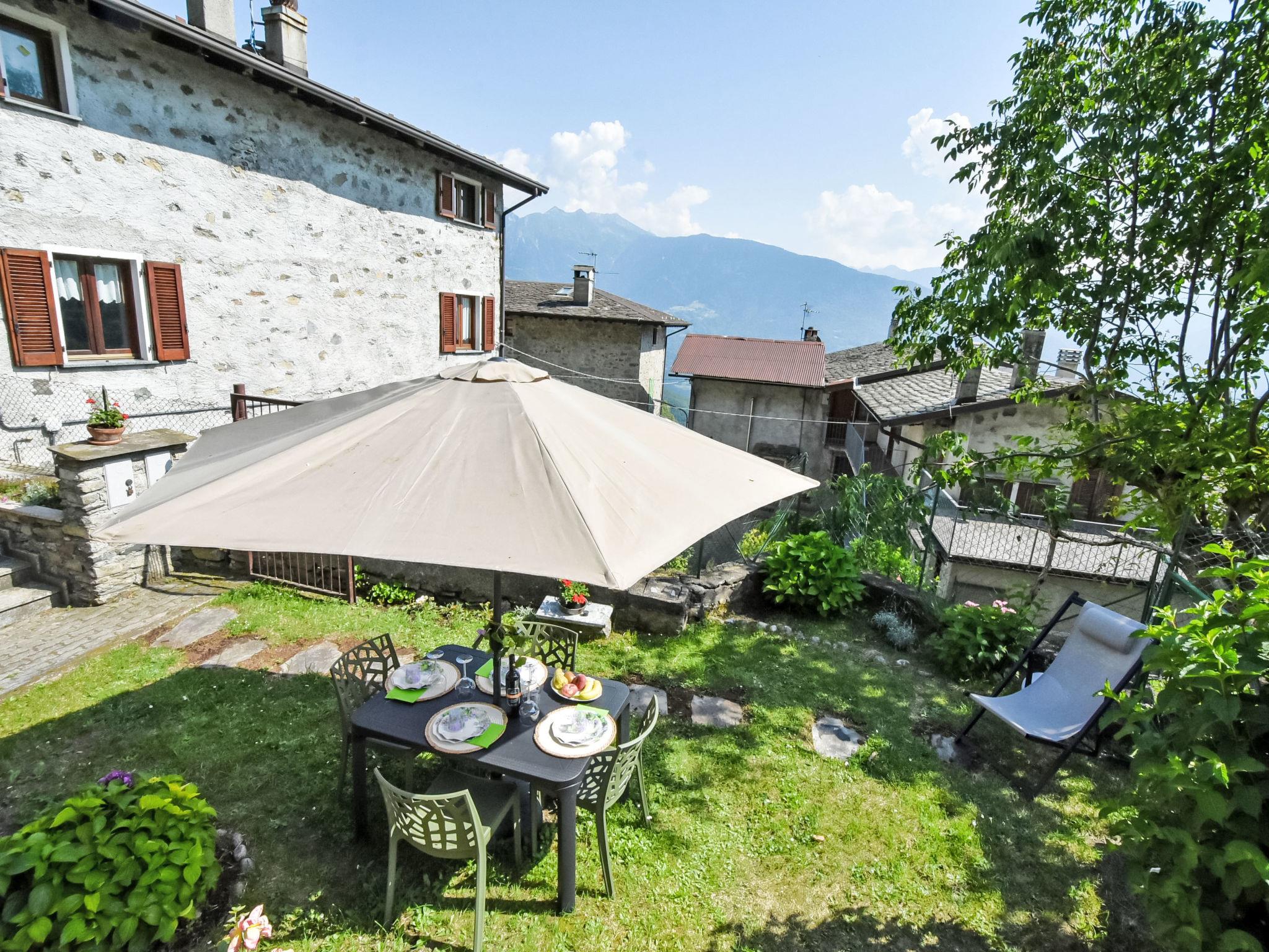 Rustic, comfortable, historical apartment house "Al Civico 29", 2 storeys. In the hamlet Caspano 3.8 km from the centre of Civo, 10 km from the centre of Morbegno, in a quiet position on a slope, in the residential district, along the wooded area. Private: garden (fenced) with lawn and flowers, lawn for sunbathing. Garden furniture. In the house: storage room for bicycles, central heating system. In Winter: please take snow chains. 100 m footpath to the house. Public parking 100 m on the road. Grocery 3 km, supermarket 9 km, restaurant, bar 200 m, bus stop 250 m. Nearby attractions: Riserva Naturale Val di Mello 13 km, Ponte Tibetano Ponte nel Cielo 23 km, Sondrio 30 km, Train Bernina Express: Tirano-St Moritz 55 km. Well-known ski regions can easily be reached: Chiesa in Valmalenco 42 km, Madesimo 55 km, Campodolcino 63 km. Well-known lakes can easily be reached: Lago di Como 26 km. Hiking paths: Bagni di Masino, Lago San Martino, Sentiero Valtellina 6 km. Please note: car recommended.