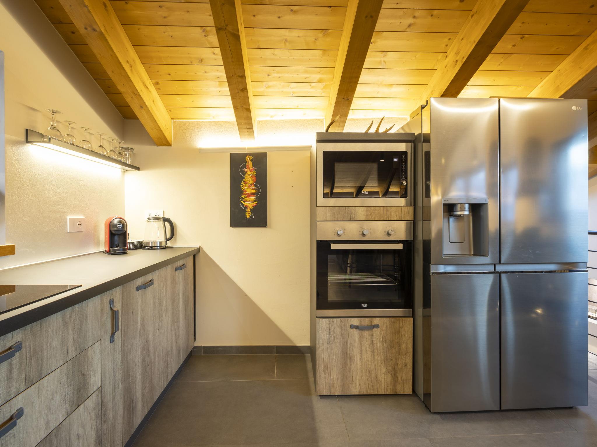 4-room villa 180 m2 on 3 levels, south facing position. Spacious and bright, partly with sloping ceilings, fully renovated in 2025, modern and stylish furnishings: entrance hall. 1 room with 1 double bed and satellite TV. 1 room with 1 x 2 bunk beds. Shower/bidet/WC. Upper floor: (open staircase), 1 room with 1 double bed and TV. Exit to the balcony. Bath/shower/bidet/WC. 2nd upper floor: (open staircase) large living/dining room with 1 sofabed and satellite TV. Exit to the balcony. Large kitchenette (oven, dishwasher, 5 induction hot plates, toaster, kettle, microwave, freezer, electric coffee machine, Capsules for coffee machine (Nespresso) free) with dining table and dining nook. Heating. Solar power. Parquet floors, natural stone floors. Barbecue, deck chairs (4). Very beautiful panoramic view of the mountains and the valley. Facilities: children's high chair, baby cot, hair dryer. Internet (WiFi, free). E-charging station. Please note: suitable for families. Non-smoking house. Maximum 3 pets/ dogs allowed. Private entrance, fire extinguisher, no lift. IT014022C22V9JRSNE
