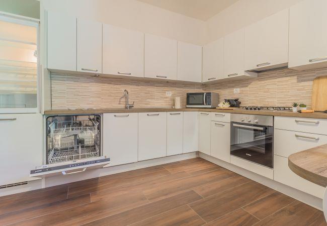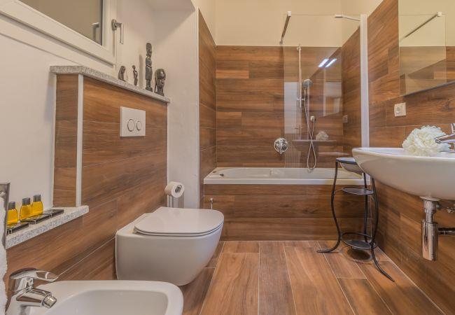 Casa Ferrari is arranged over three floors. The living area on the first floor consists of a large living room with decorative fireplace, comfortable sofa beds, a dining table where you can enjoy the excellent Italian cuisine, a small balcony overlooking the lake with a table and chairs to sip a good glass of wine at sunset, a bathroom with tub /shower, sink, bidet and toilet and fully equipped modern kitchen.