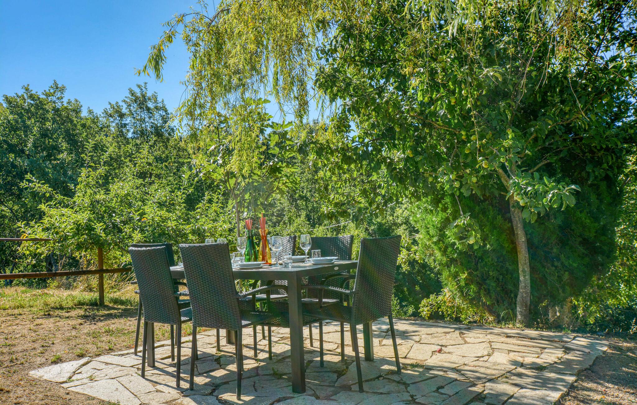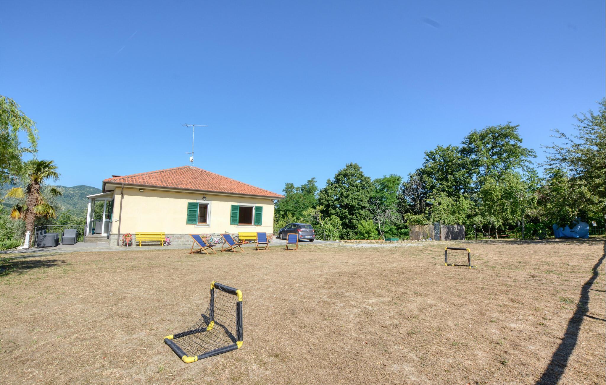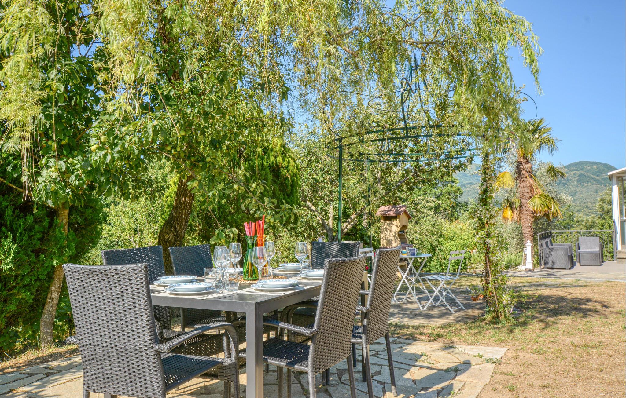 I den rymliga trädgården med skuggiga sittplatser och en traditionell pizzaugn kan du njuta av naturen till fullo. Ät frukost på den soliga terrassen, andas in den friska luften från de liguriska bergen och avrunda dagen med en grillfest under stjärnorna.