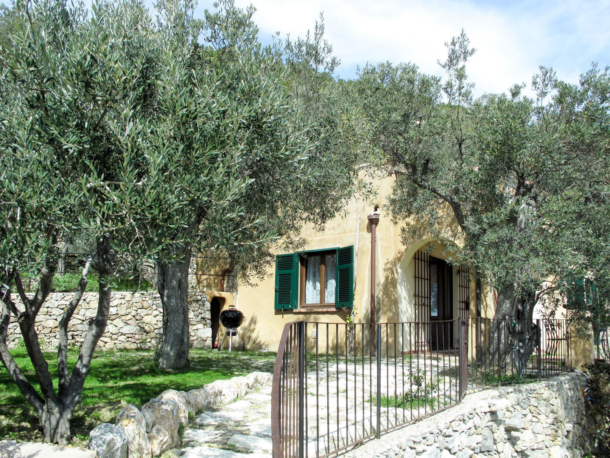 Beautiful cottage "Francesca", detached, surrounded by trees. 4 km from the centre of Varigotti, 8.5 km from the centre of Finale Ligure, 21 km from the centre of Savona, in an elevated position on a slope, 4 km from the sea, in the countryside. Private: large, beautiful terraced garden, 1'000 m2 with lawn and trees. In the house: air conditioning. 1 km long bumpy, steep, narrow motor access to the house. 10 m footpath to the house. Parking (for 2 cars) on the premises. Shop 4 km, restaurant 4 km, bar 4 km, bus stop 1.2 km, railway station "Finale Ligure" 8.5 km, sandy beach "Spiaggia del Malpasso" 5.5 km pebble beach "Spiaggia di Varigotti" 4 km. Marina 6 km.