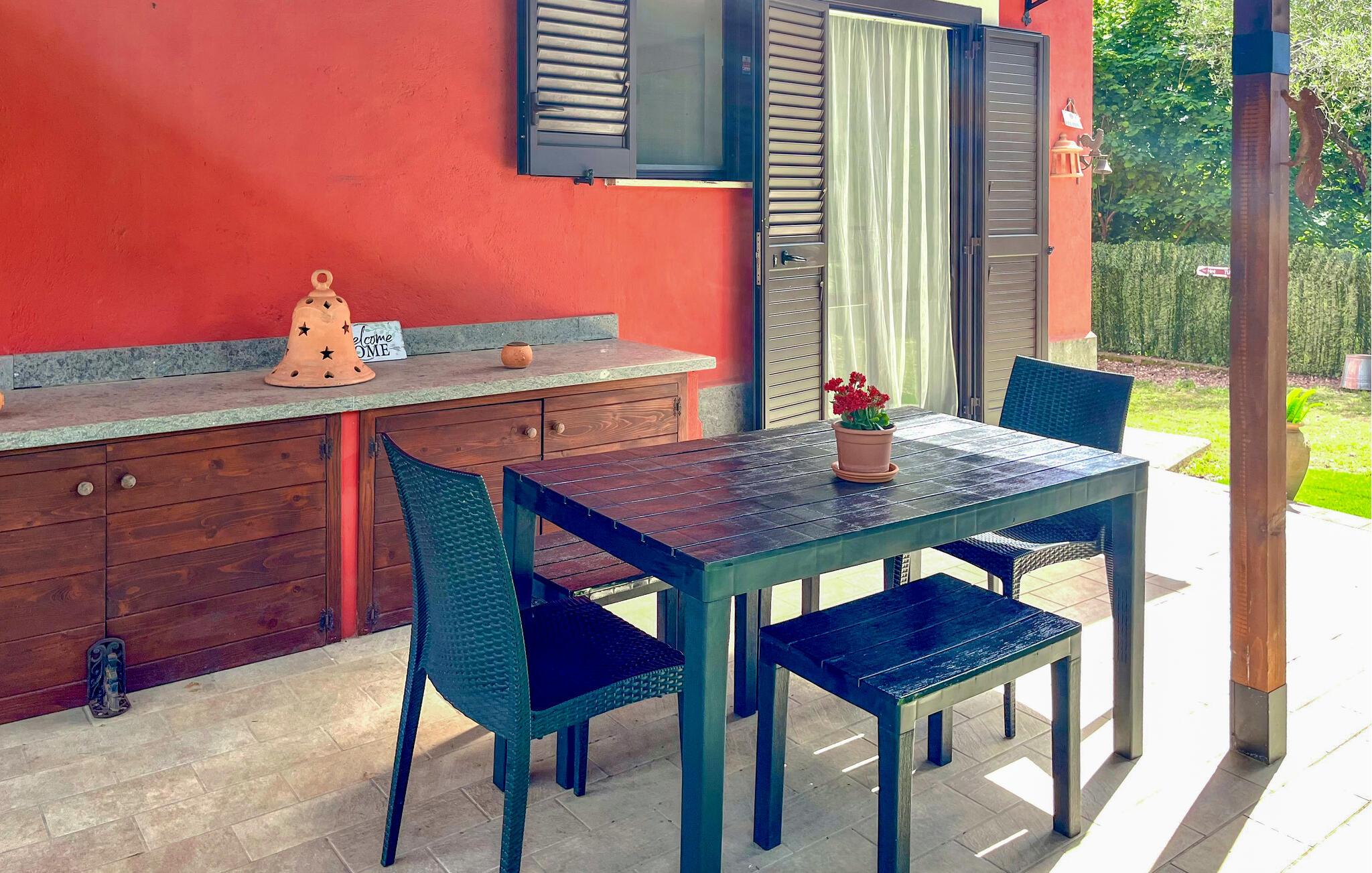 Fly från den hektiska vardagen och koppla av i detta mysiga semesterhus. Här finns allt du behöver för en lyckad semester med dina nära och kära. Den centrala mötesplatsen i huset är det bekväma köket-vardagsrummet med öppen spis och ljusa färger. Men även trädgården med en täckt terrass, murad grill och en solskyddad bubbelpool lovar dig avkopplande och underbara timmar utomhus.