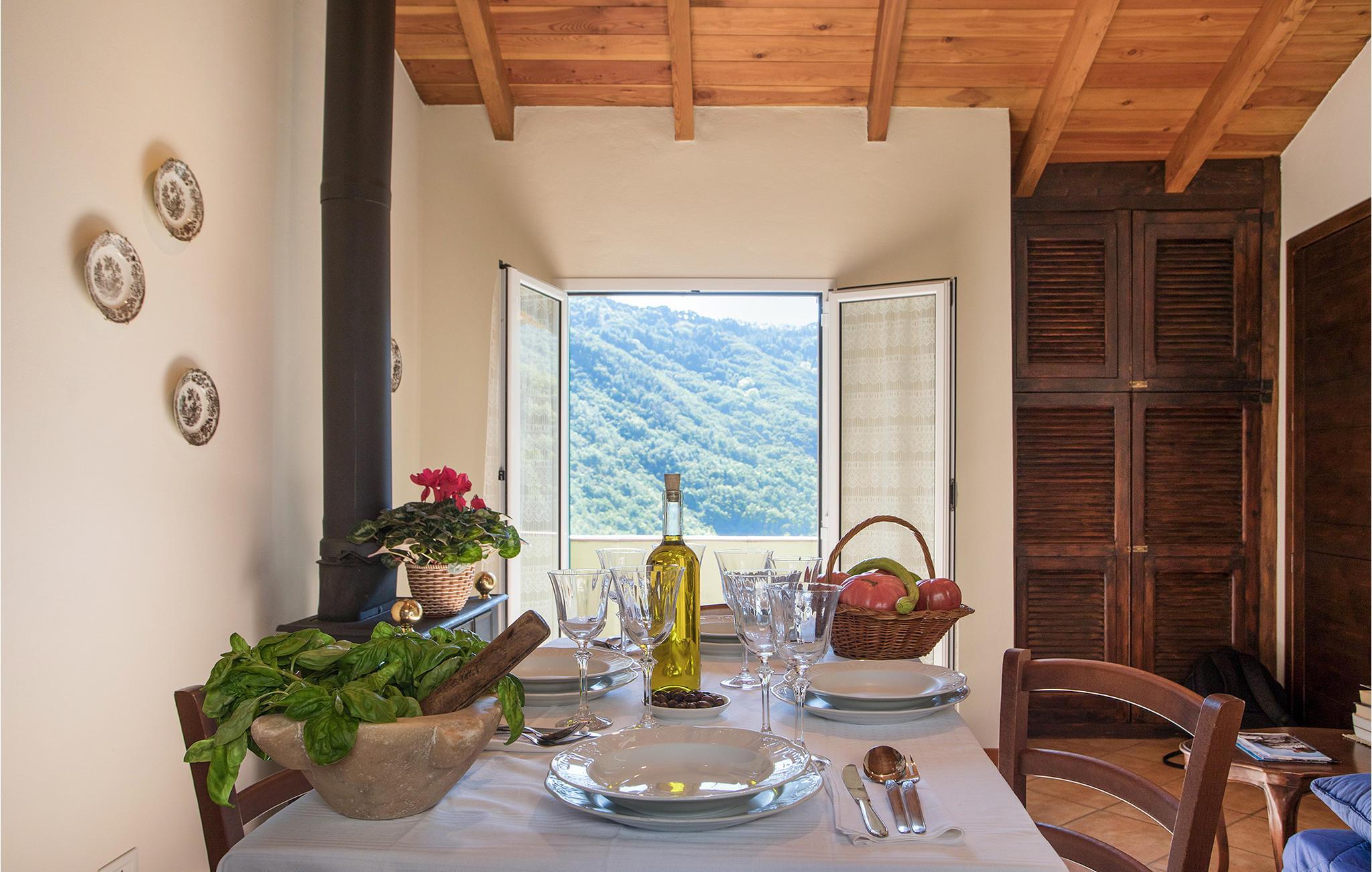 Denna semesterbostad ligger 450 meter över havet, på en lugn plats i den pittoreska byn Vellago. Du befinner dig här 25 km norr om den livliga kuststaden Imperia och 90 minuter från Nice. Den gamla kyrkan är centrum för den här lugna byn. På huvudtorget hittar du en typisk restaurang där du kan njuta av lokala liguriska rätter. Endast en halvtimmes bilresa bort ligger badorterna Alassio, Albenga, Cervo och en timme bort den livliga kuststaden Ventimiglia. Men även furstendömet Monaco och kuststaden Nice är lätta att nå. I den privata trädgården (tillgänglig via en trappa) kan du ostört njuta av den överväldigande utsikten och tystnaden i de omgivande, orörda skogarna och olivträden.